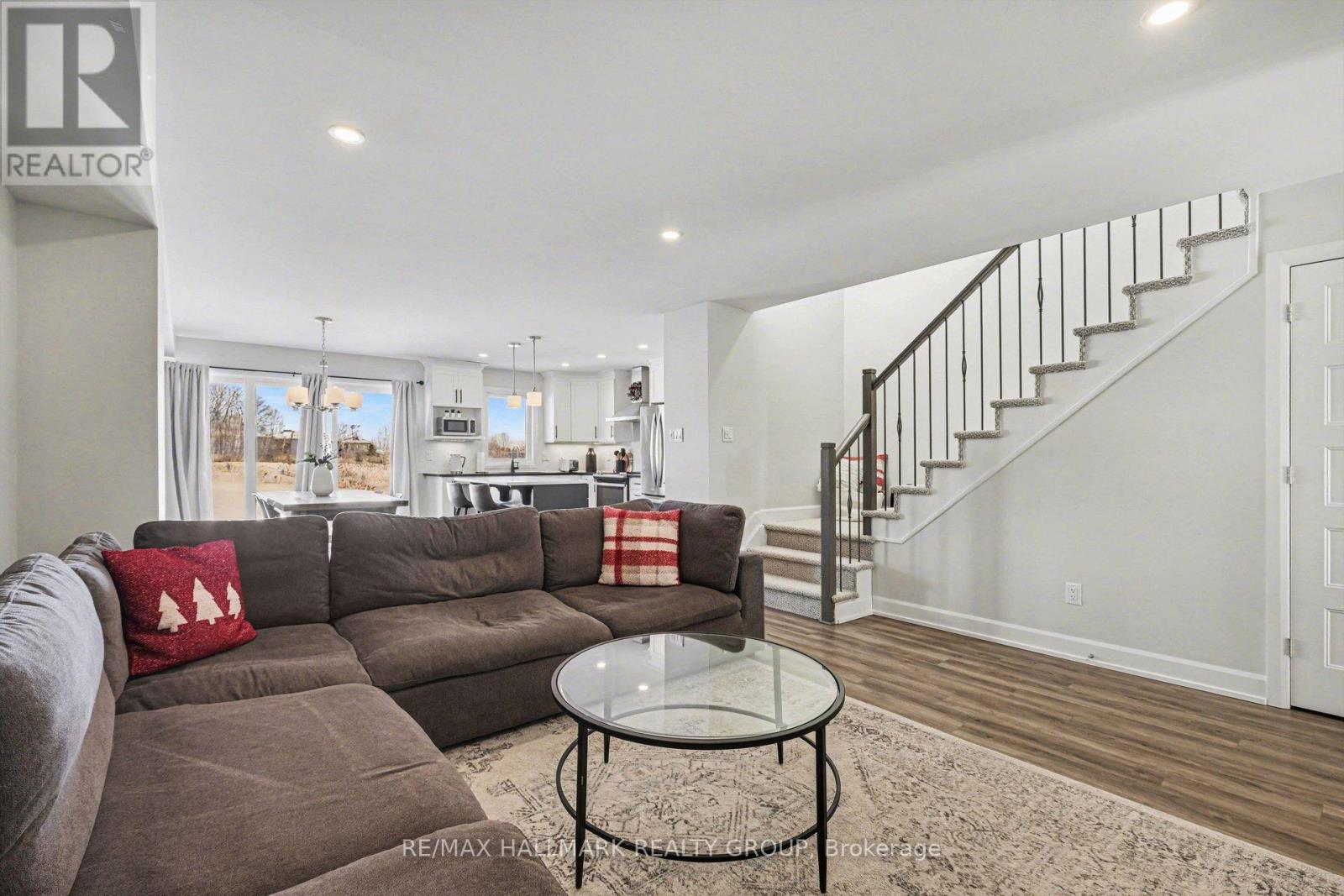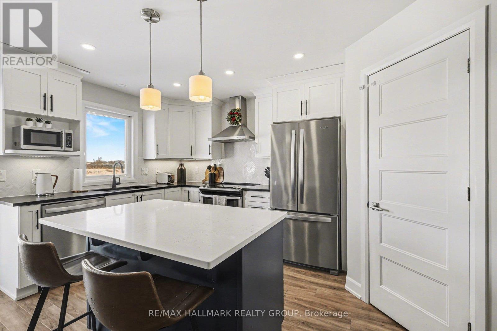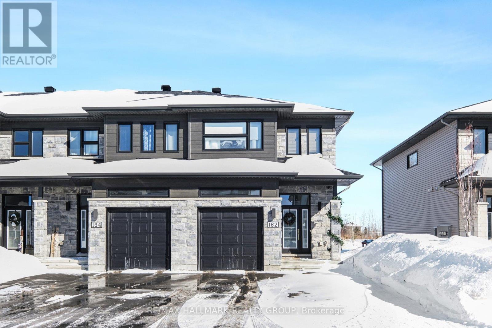 END UNIT - Parallel side-by-side parking great for two car household+ garage! Welcome to 182 Argile Street-a rare opportunity to own a beautifully upgraded end-unit townhome, newly built in 2020 (still covered under Tarion Warranty), located in the sought-after Domaine de la Rivière Nation community of Casselman. This bright and modern 3-bedroom, 2.5-bath home sits on a premium lot with no rear neighbours, backing near a pond and offering exceptional privacy rarely found in townhome living. The main floor features a spacious open-concept layout with gleaming hardwood and ceramic floors, seamlessly connecting the living and dining areas to a highly upgraded kitchen complete with quartz countertops, large island, stainless steel appliances, generous pantry space, and patio doors leading to a fully fenced backyard with deck and BBQ gas connection. A convenient powder room completes the main level. Upstairs, you'll find three well-sized bedrooms, including a stunning primary suite with walk-in closet and spa-like ensuite featuring heated floors, glass shower, and wide vanity. Two additional bedrooms (two with walk-in closets), a full family bath, and upper-level laundry provide comfort and convenience for everyday living. A wide-grand staircase adds an elegant touch throughout the home. The partially finished basement offers flexible space for a family room, rec room, or home office, plus ample storage. Additional highlights include upgraded lighting, top-of-the-line finishes throughout, parking for up to four vehicles, and easy access to parks, shopping, restaurants, and the highway-just 30 minutes to downtown Ottawa. This move-in-ready home combines modern design, premium upgrades, and rare privacy-an exceptional opportunity not to be missed. Book your showing today! **Overnight notice preferred for showings** (id:31145)