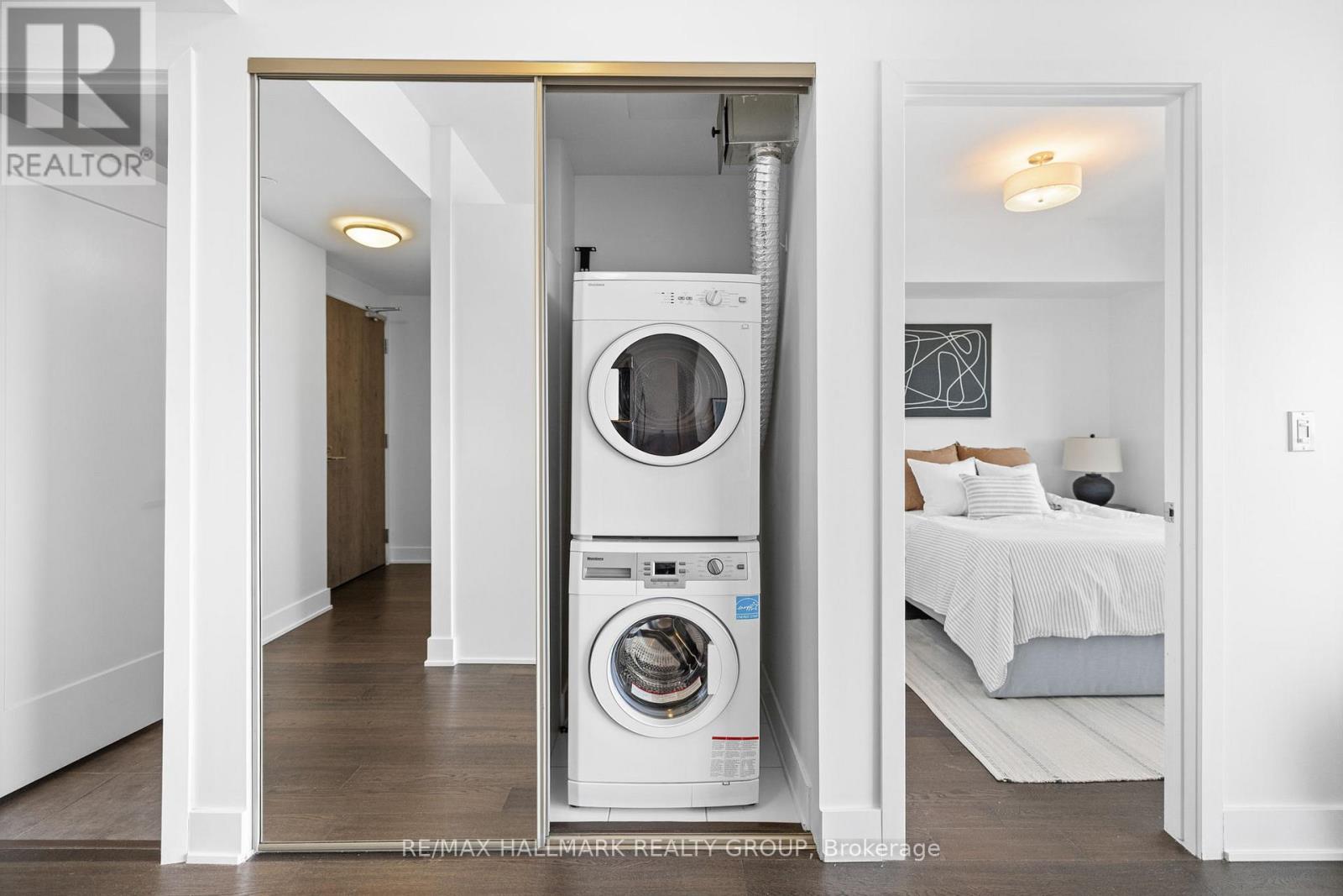 Welcome to unit 1906 at 485 Richmond Road - a beautiful 1-bedroom, 1-bathroom condo in the vibrant heart of Westboro, one of Ottawa's most soughtafter neighbourhoods. This bright, contemporary home features hardwood floors throughout and stunning floor-to-ceiling windows that fill the space with natural light. Recent upgrades add style and comfort, including a chic kitchen backsplash, upgraded countertops, modern cabinet hardware, new flooring, and elegant Zen mirror sliding doors. Window fixtures are also included for your convenience. The spacious bedroom offers a large closet, providing plenty of storage. The unit also features a modern 3-piece bathroom finished with elegant quartz countertops. The kitchen is thoughtfully designed with stainless steel appliances and sleek quartz surfaces, perfect for cooking and entertaining. Additional highlights include insuite laundry and a generous southfacing balcony that offers stunning views and abundant sunshine. Residents enjoy excellent building amenities, including a fully equipped fitness center and two stylish party rooms, one complete with a full kitchen for gatherings. Just steps away, explore Westboro's best cafes and restaurants like Fratelli and Pure Kitchen, boutique shops, grocery stores, and scenic walking and biking trails along the Ottawa River. This condo perfectly combines modern comfort with an unbeatable location in one of Ottawa's most desirable communities. (id:31145)