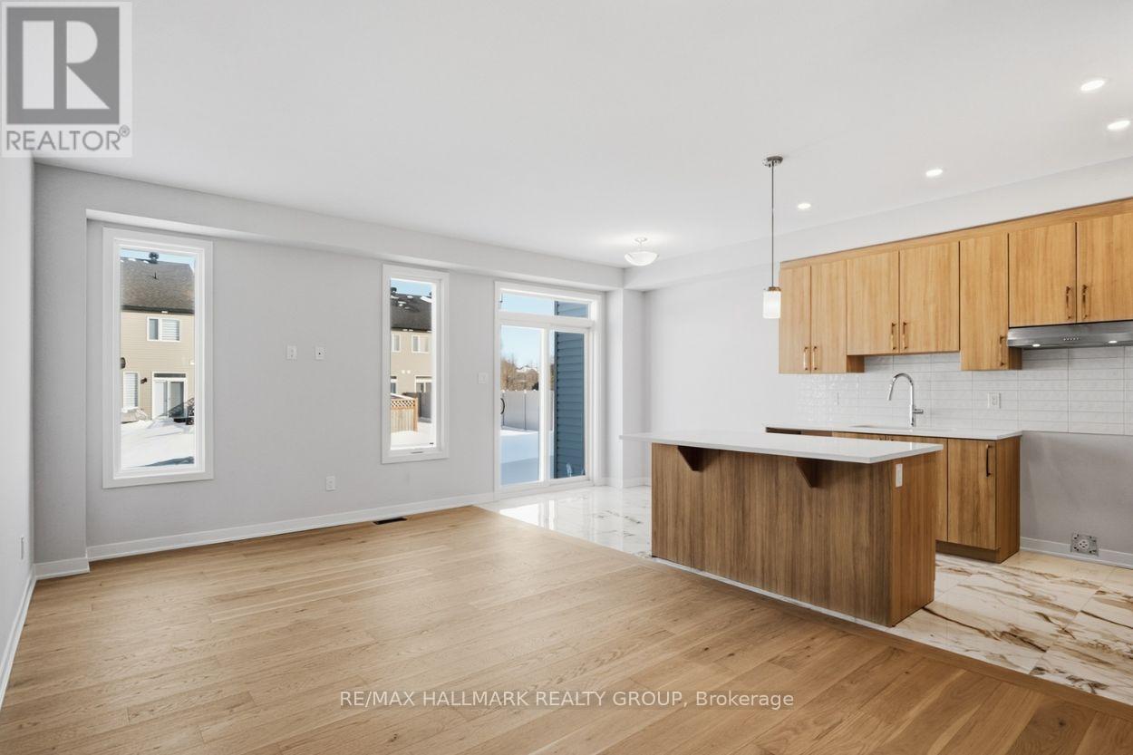 Experience exceptional value and elevated design in this brand-new townhome by Mattino Developments, a boutique Ottawa builder known for thoughtful layouts and refined, Italian-inspired finishes. Located in a peaceful country setting in Stittsville North, this 1,816 sq. ft. home offers modern living just a short drive from the city and approximately 10 minutes to the Canadian Tire Centre.The main level features a bright, open-concept layout with impressive 9-foot smooth ceilings that enhance the sense of space and light. Wide plank contemporary engineered flooring flows throughout the principal living areas, complemented by oversized marble-look ceramic tile for a polished, upscale finish. The premium kitchen is designed to both function and impress, with extended 42-inch upper cabinetry, elegant backsplash detailing, pot lighting, and seamless sightlines to the living and dining areas, ideal for everyday living and entertaining.Upstairs, family-sized bedrooms provide comfort and flexibility, with laundry conveniently located on the bedroom level. The primary suite is complete with a luxurious ensuite featuring a standalone Roman tub and a separate oversized shower, creating a spa-like retreat at the end of the day.The finished lower level adds valuable additional living space, perfect for a recreation room, home office, gym, or media area. Outside, the rare extra-deep 125-foot lot offers generous outdoor space and added privacy.This home includes a full builder's warranty for peace of mind, with quick closing available. A strong option for buyers seeking a brand-new townhome with premium finishes, modern design, and the balance of quiet surroundings with easy access to Ottawa's west end. (id:31145)
