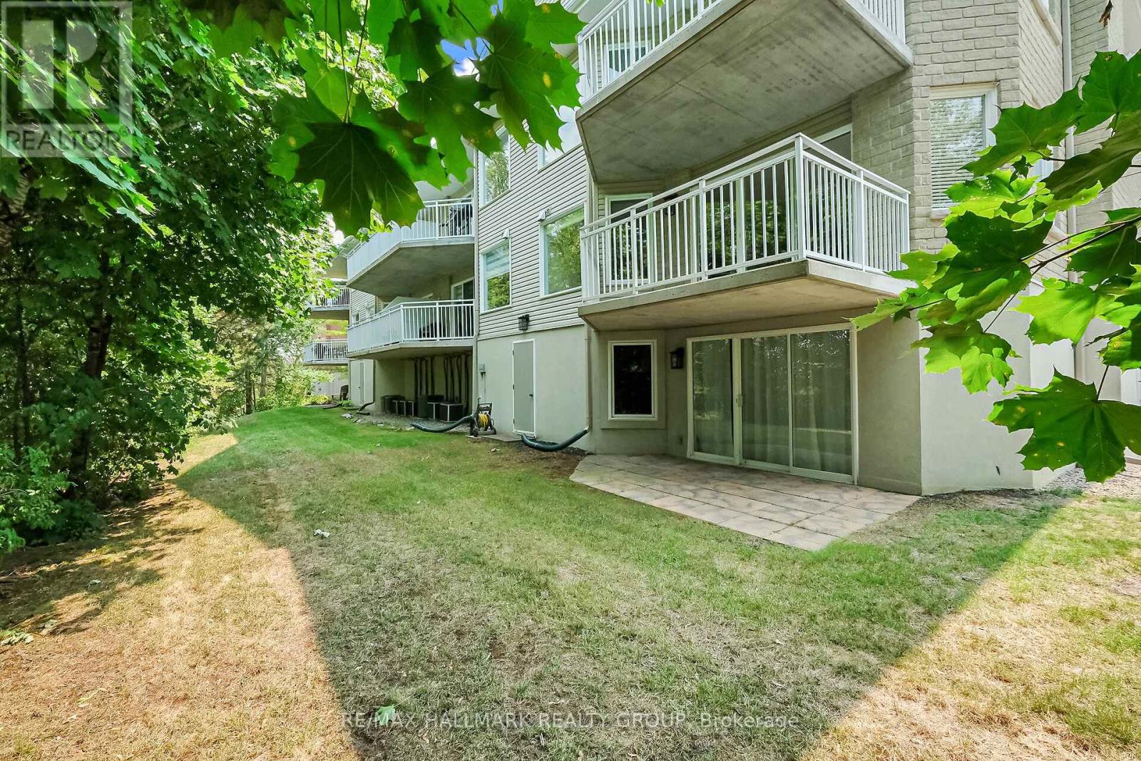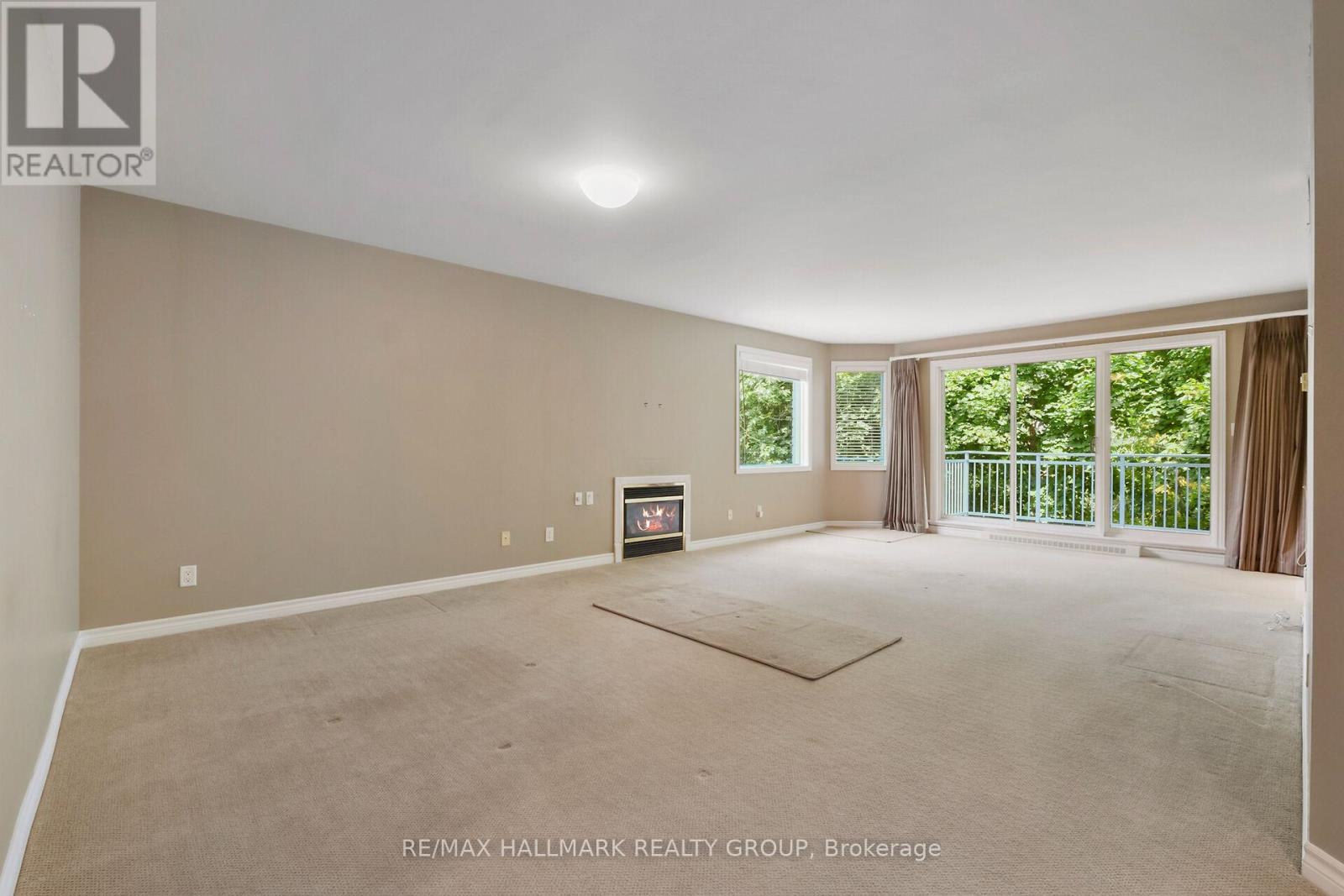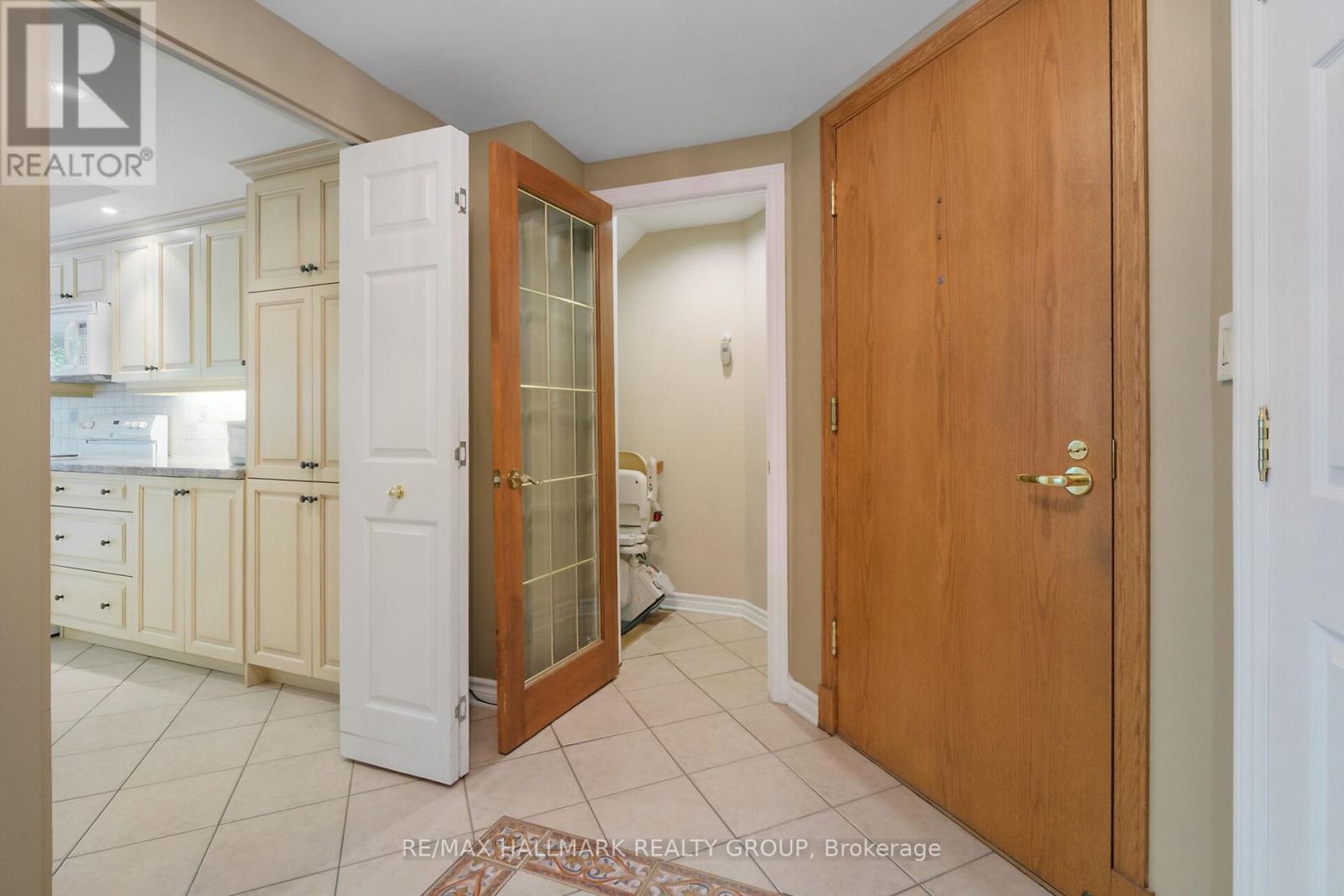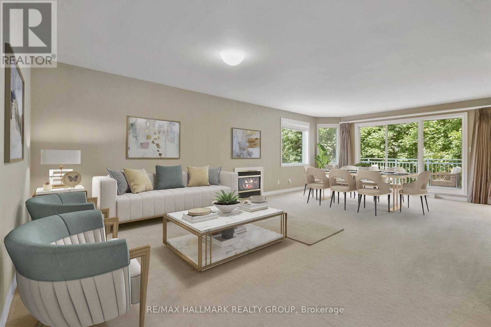 Peaceful Golf Course Living in Kanata Lakes. Located in the sought-after golf course community of KanataLakes, this spacious, end-unit, two-storey condo home offers a rare combination of elegance, comfort, and privacy. Perfectly situated on a quiet cul-de-sac and backing onto mature trees, it provides serene, forested views year-round. With over 2,088 sq. ft. and a walk-out family room with your own private patio, this home is ideal for both everyday living and entertaining. The bright and inviting main level features a generous living and dining area with direct access to a large balcony, perfect for morning coffee or evening sunsets. The updated kitchen is designed for both style and function, while modernized bathrooms add a touch of luxury. The primary suite is a true retreat, complete with a walk-in closet and a spacious ensuite showcasing custom cabinetry. The walk-out lower level expands your living space, offering a large family room, patio access, and peaceful woodland views. Convenience and comfort continue with underground parking providing direct interior access to your home. A handicap-accessible elevator to the condo level and an optional in-unit stair lift make the property accessible for all stages of life. Enjoy an unparalleled lifestyle just steps from shopping, restaurants, parks, and miles of scenic trails. With its prime location, thoughtful updates, and tranquil setting, this home offers the best of both worlds: quiet, nature-filled living with urban amenities at your doorstep. (id:31145)