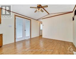 Enjoy the best of country living in Ashton Pines, a sought-after 55+ adult community located just 8 minutes from both Stittsville and Carleton Place. This well-cared-for, move-in ready mobile home offers the perfect blend of comfort and low-maintenance living in a welcoming retirement setting. The spacious living room opens through double doors to a large deck - a perfect spot for morning coffee or hosting friends. The bright eat-in kitchen features generous cabinetry, a gas stove, double sink with a corner window, and a cozy dining nook with a bay-window feel framed by three tall windows. A bonus corner counter with cupboard and display cabinet above adds both style and storage, with easy-care laminate flooring flowing throughout the home. The bedroom includes two closets with built-in shelving and drawers, along with windows on either side that bring in plenty of natural light. A full bathroom completes the layout. Sunlight filters through every room, creating an inviting, cheerful atmosphere. Outdoors, the private yard offers mature trees, lawn space, and a storage shed for convenience. Community amenities include an inground pool, and the pet-friendly environment makes it an ideal place to relax and enjoy a peaceful lifestyle. Key Details: Monthly Lot Fee Approx. $675; Water Testing & Sewer Approx. $41/Month; Annual Property Taxes Approx. $798. Park management approval required. Don't miss your chance to enjoy affordable, peaceful living in a friendly community - schedule your viewing today! (id:31145)