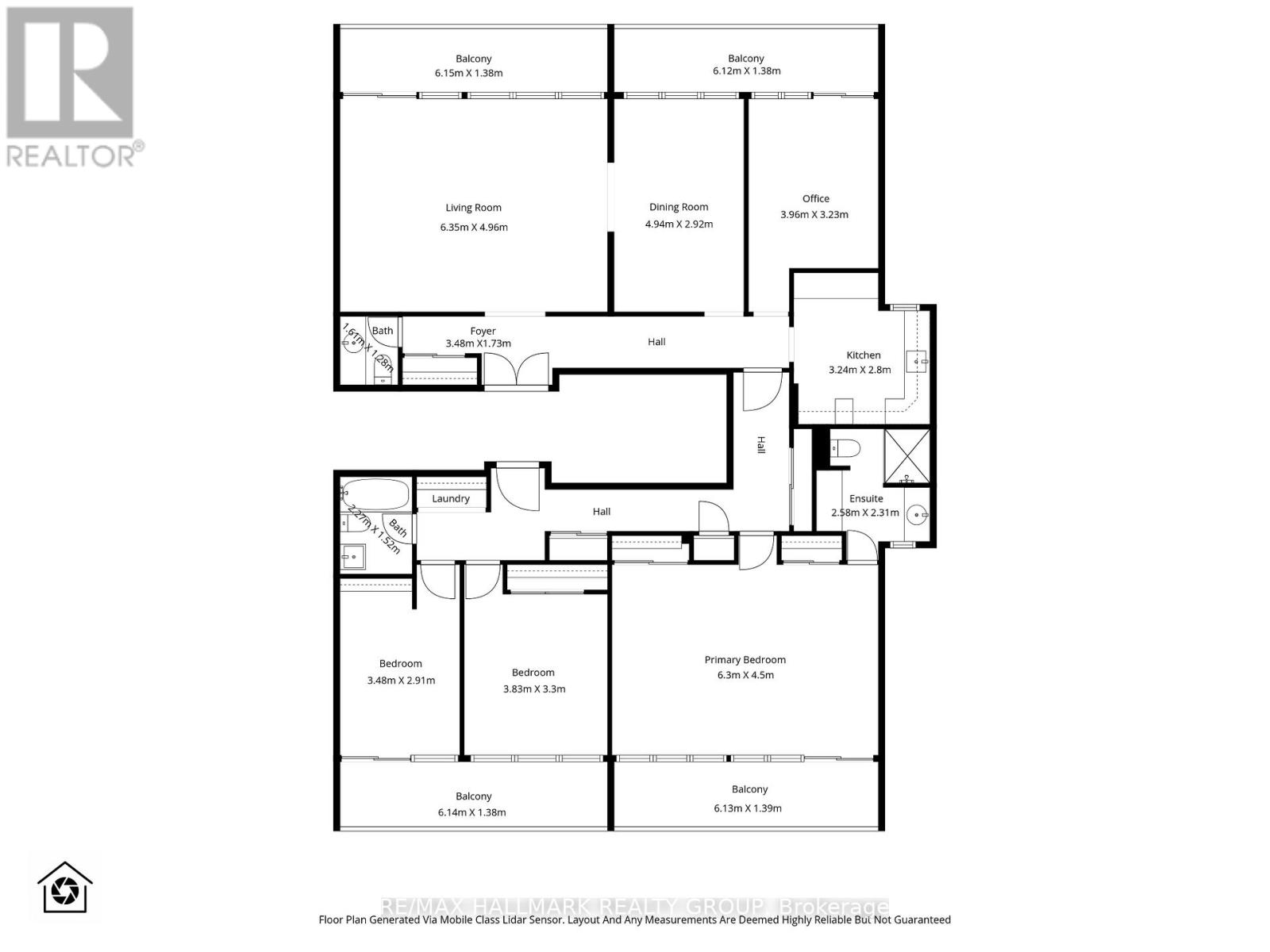 | Main Level | Primary Bedroom | 6.3 m | 4.5 m | 6.3 m x 4.5 m |