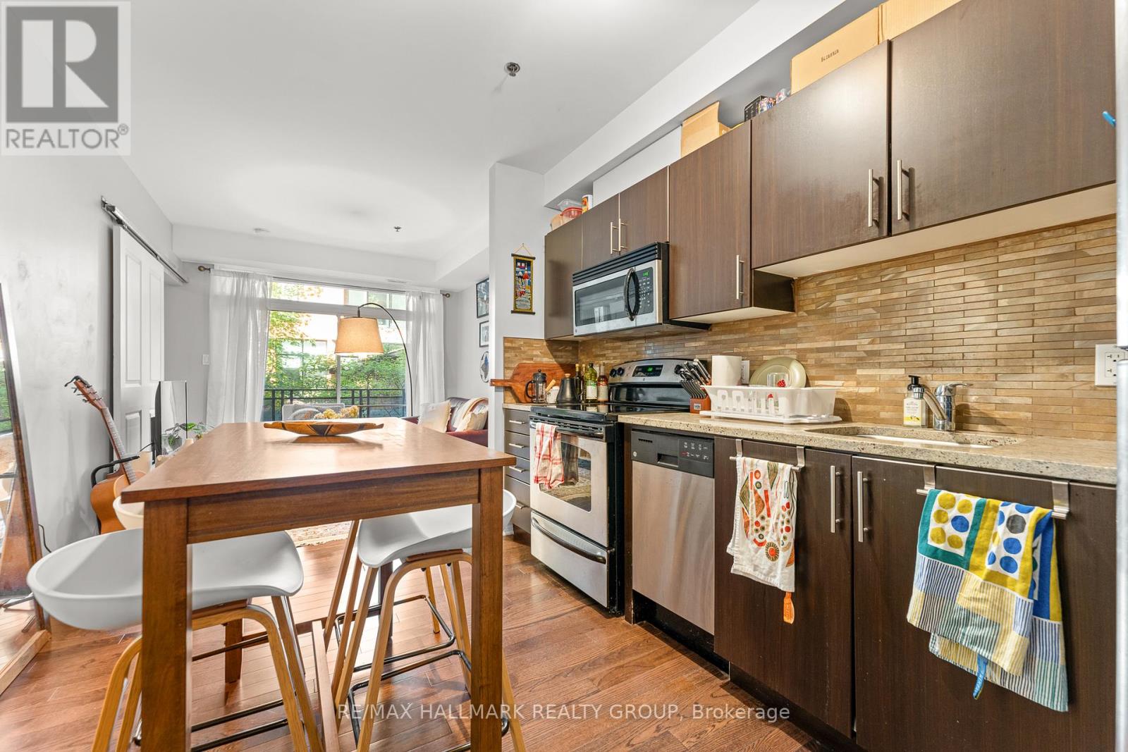 $529.33 MonthlyWelcome to 429 Kent Street Unit 202 - an elegant one bedroom + den residence in the sought after Centropolis building, where contemporary style meets the convenience of downtown living! Thoughtfully designed with a bright and functional layout, this home offers the perfect balance of sophistication and comfort. Step inside to discover gleaming hardwood floors, expansive floor-to-ceiling windows, and an inviting open-concept living and dining area that creates a seamless flow throughout the space. The modern kitchen is equipped with stainless steel appliances, sleek cabinetry, and quartz countertops, making it as stylish as it is practical. The spacious Primary Bedroom provides a serene retreat with generous closet space and cheater access to the modern bathroom, while the separate den offers endless possibilities as a home office, study, or guest room! Enjoy the convenience of in-suite laundry, your own private balcony for morning coffee or evening unwinding, and the luxury + security of underground heated parking. Building amenities include indoor bike storage and an impressive rooftop terrace complete with BBQs, lounge areas, and sweeping city views - the perfect extension of your living space! Nestled in the heart of Centretown, this location places you just steps away from Ottawas most vibrant offerings. Indulge in some of the city's finest dining, cafés, boutiques, and entertainment on nearby Bank and Elgin Streets, or enjoy a leisurely stroll to cultural landmarks and the scenic paths along the Ottawa River. This exceptional condo with affordable condo fees truly delivers the best of urban living with a touch of luxury. Don't miss your chance to call Centropolis home! Come fall in love today! (id:31145)