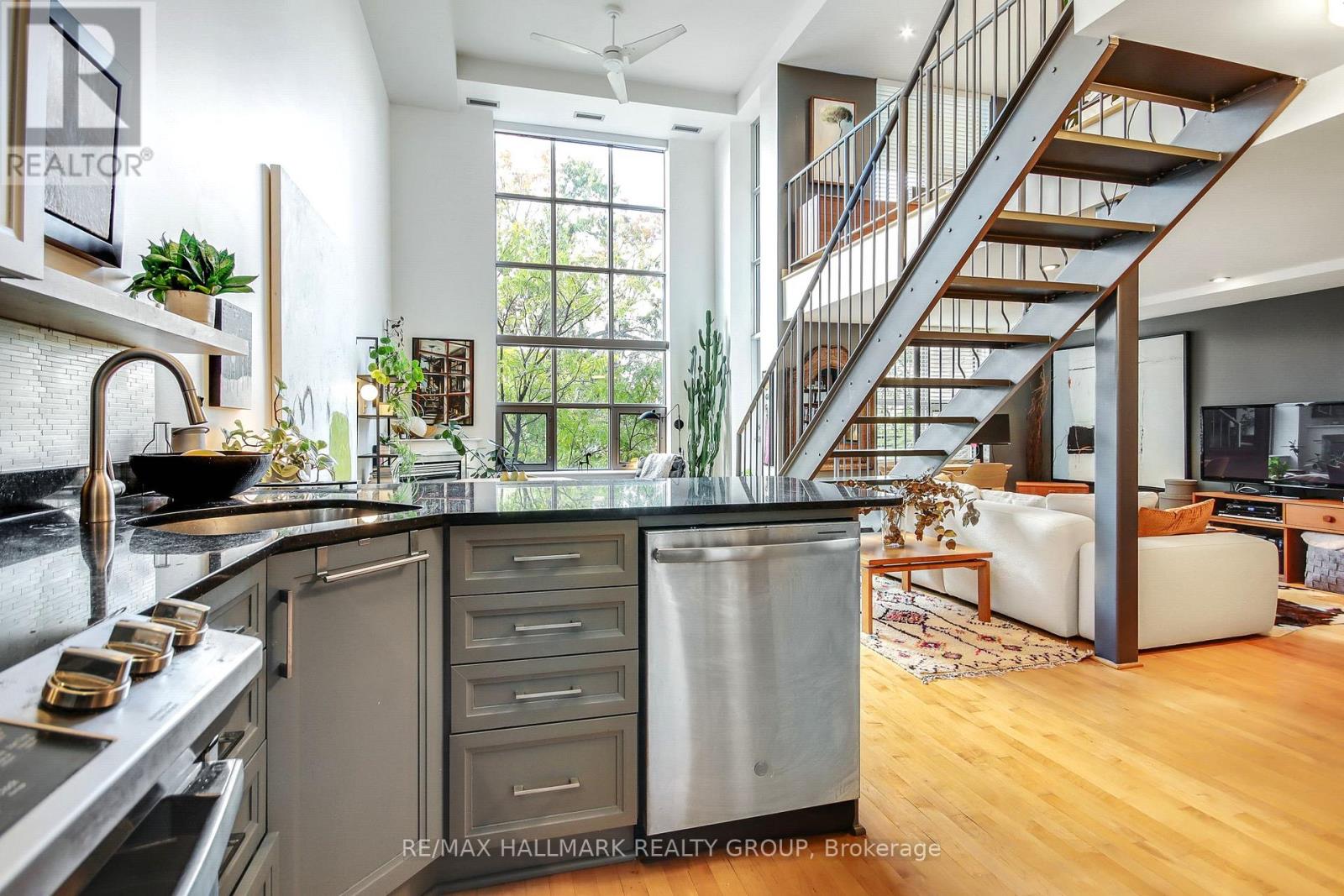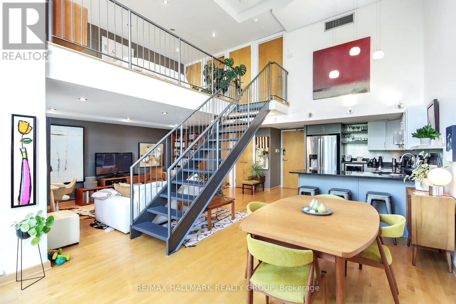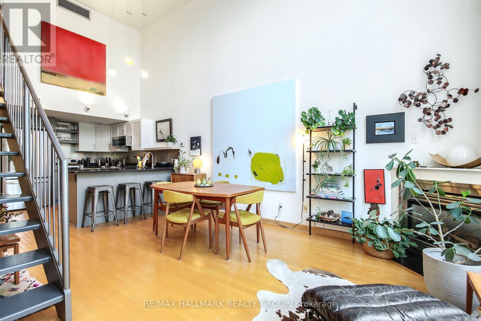 $1,037.21 MonthlyStunning loft living in this beautifully built Charlesfort boutique condo building, designed by Barry Hobin in Old Ottawa East. The main level hosts open concept living and dining with remarkable windows, 17-foot ceilings, and a cozy living room area. With the high ceilings you can enjoy ample wall space for your art display! The master chef kitchen includes 5 stainless steel appliances; fitting for dinner parties and entertaining day and night. The upper level features a loft bedroom space overlooking the main level living spaces, laundry and a full bath. One parking spot and access to roof-top balcony with community BBQs. 24 hours notice for Showings and 48 hours irrevocable on offers. (id:31145)