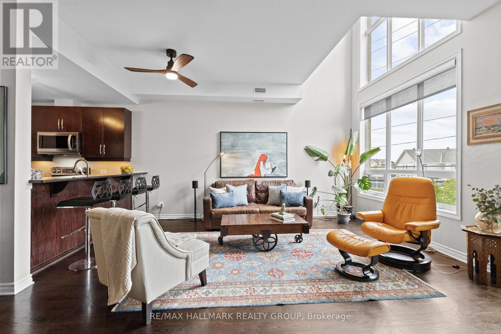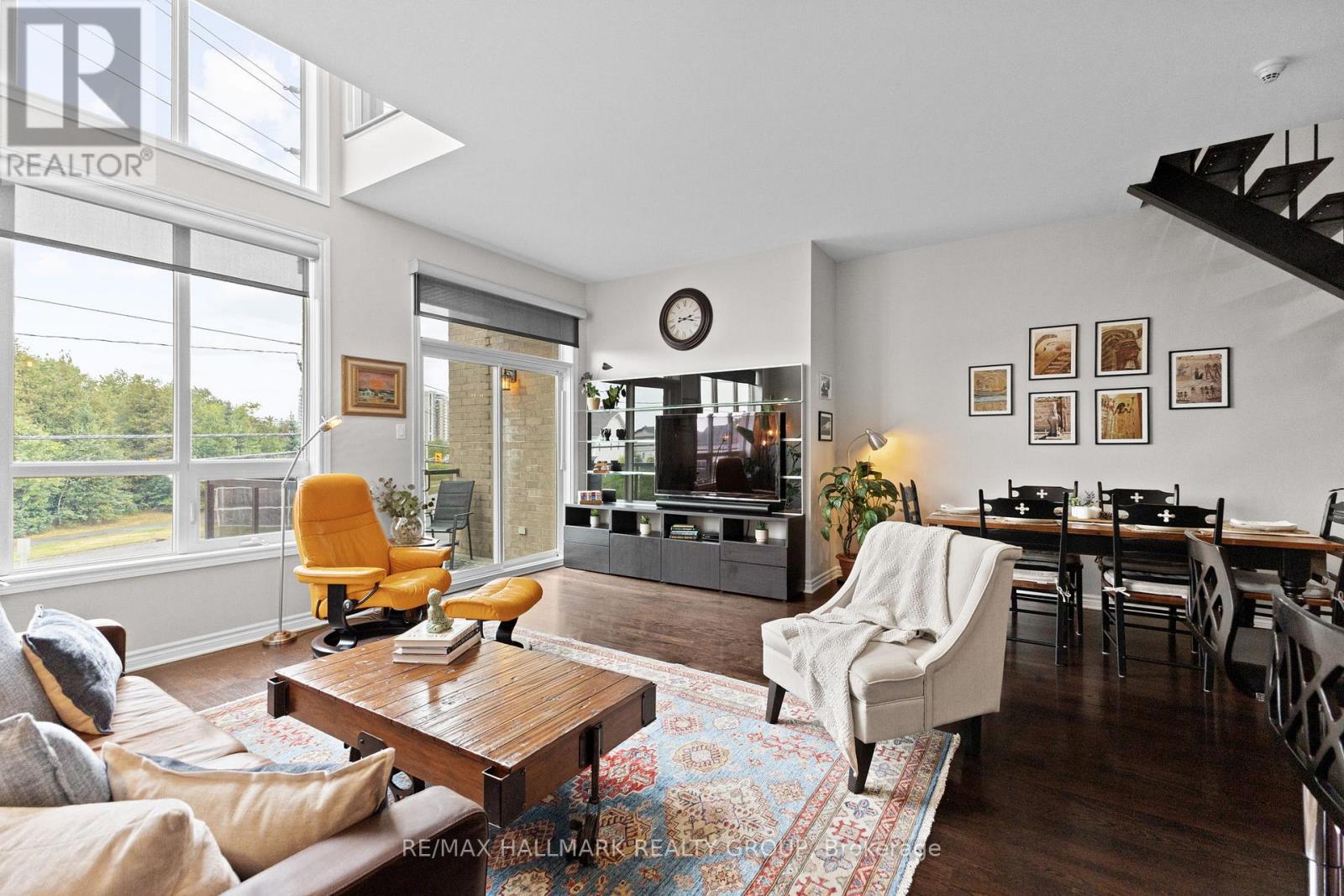 Welcome to 500 Claridge Drive, Unit #206 - stunning two-storey condo built by Tega Homes, combining modern design, thoughtful upgrades, and an unbeatable location. With over 9-foot ceilings on both levels, two bedrooms, three bathrooms, two parking spaces, and an open, light-filled layout, this home offers the perfect balance of comfort, style, and function. Step inside to a sleek tiled foyer where a convenient powder room sits to your left, ideal for guests. Just a few steps forward, the kitchen opens up to your left, featuring all stainless steel appliances, plenty of storage, and your in-suite laundry tucked neatly inside. Matching tiled floors throughout the foyer, kitchen, and bathrooms add a sense of cohesion and elevate the sleek, modern design. The kitchens countertop bar flows naturally into the living area, offering space for up to four bar stools, making it a perfect spot for casual dining or entertaining friends. Beyond the kitchen, the home opens into a bright, airy living and dining space with tall ceilings and floor-to-ceiling windows that flood the area with natural light. From here, step out onto your private balcony with no front neighbours, where you can enjoy your morning coffee, unwind after a long day, or simply soak in the treetop surroundings. You'll notice hardwood flooring flows throughout. The second level leads to a spacious primary bedroom with a three-piece ensuite and a generous walk-in closet, large enough to accommodate a small desk or vanity. The second bedroom is equally inviting, featuring a beautiful skylight window that fills the space with warmth and brightness. Recent upgrades include a new A/C (2024) and fresh paint throughout (2023), making this home truly move-in ready. Perfectly situated in Barrhaven's Claridge community, you're just steps from shops, restaurants, parks, schools, and transit, with quick access to major roadways for an easy commute. 24 hour irrevocable on all offers. (id:31145)
