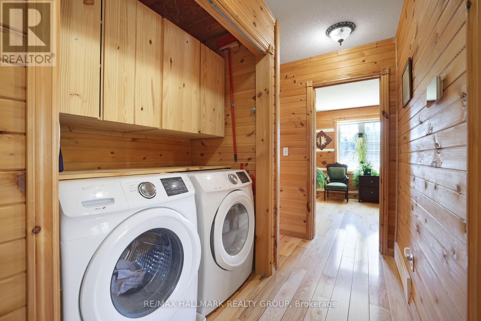 Charming Log Home Retreat on the Ottawa Snye - Fitzroy Harbour! Escape to the tranquility of this stunning log home, nestled on a peaceful dead-end road in the heart of Fitzroy Harbour. Crafted from majestic first-growth logs, this home blends rustic elegance with serene natural beauty. Enjoy complete privacy while the Ottawa Snye River flows gracefully past your backyard - perfect for morning coffees on the deck or evening relaxing under the sunset. Inside, the open-concept main floor offers approximately 1,400 sq ft of warm, inviting living space with two bedrooms, a full bath, and panoramic views of the surrounding landscape. The finished lower level provides a versatile space for relaxation, hobbies, guests, or a home office complete with an additional full bath. Step outside to you spacious back deck - ideal for entertaining or simply unwinding in nature. This is more than a home - it's a lifestyle. Enjoy a vibrant rural community with a local store (with LCBO outlet), churches, St. Michael's Elementary School, and a active community centre just a short stroll away. Fitzroy Provincial Park is also nearby for even more outdoor adventure. Weather you seeking a peaceful year-round residence or a weekend escape, this rare offering combines character, comfort, and connection to nature. Welcome to Fitzroy Harbour - where riverfront living meets community charm. (id:31145)