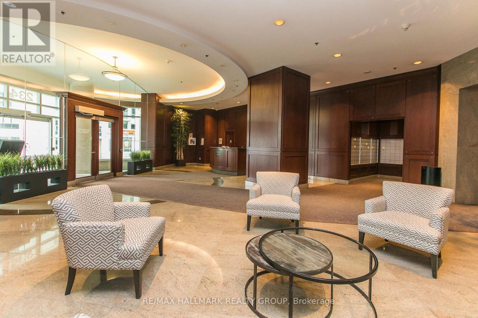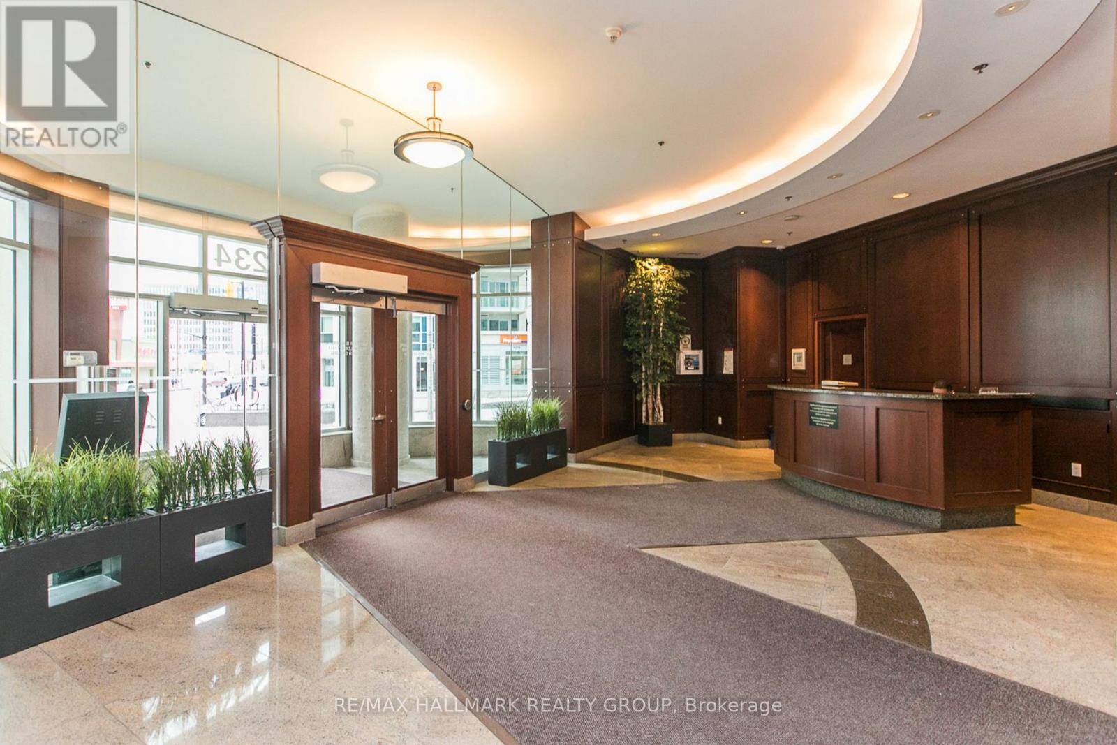 Modern 1-bedroom + den condo with underground parking, private balcony, and sweeping views of Parliament, the ByWard Market, and the Gatineau Hills in Claridge Plaza 2, ideally located in the heart of downtown Ottawa.This well-designed 701 sq ft unit offers a functional layout with gleaming hardwood floors, large windows, and a bright open-concept living and dining space that takes full advantage of the elevated views. The kitchen features granite countertops, stainless steel appliances, and ample cabinetry, while the spacious primary bedroom and separate den provide flexibility for a home office or additional living space.Enjoy the convenience of in-unit laundry, central air, and a private balcony perfect for taking in city views. Includes one underground parking space.Residents have access to the Plaza Club amenities including an indoor pool, sauna, fitness centre, and private lounge.Unbeatable location just steps to the Rideau Centre, University of Ottawa, ByWard Market, Parliament Hill, LRT, restaurants, and everyday essentials. Heat included, hydro extra. (id:31145)