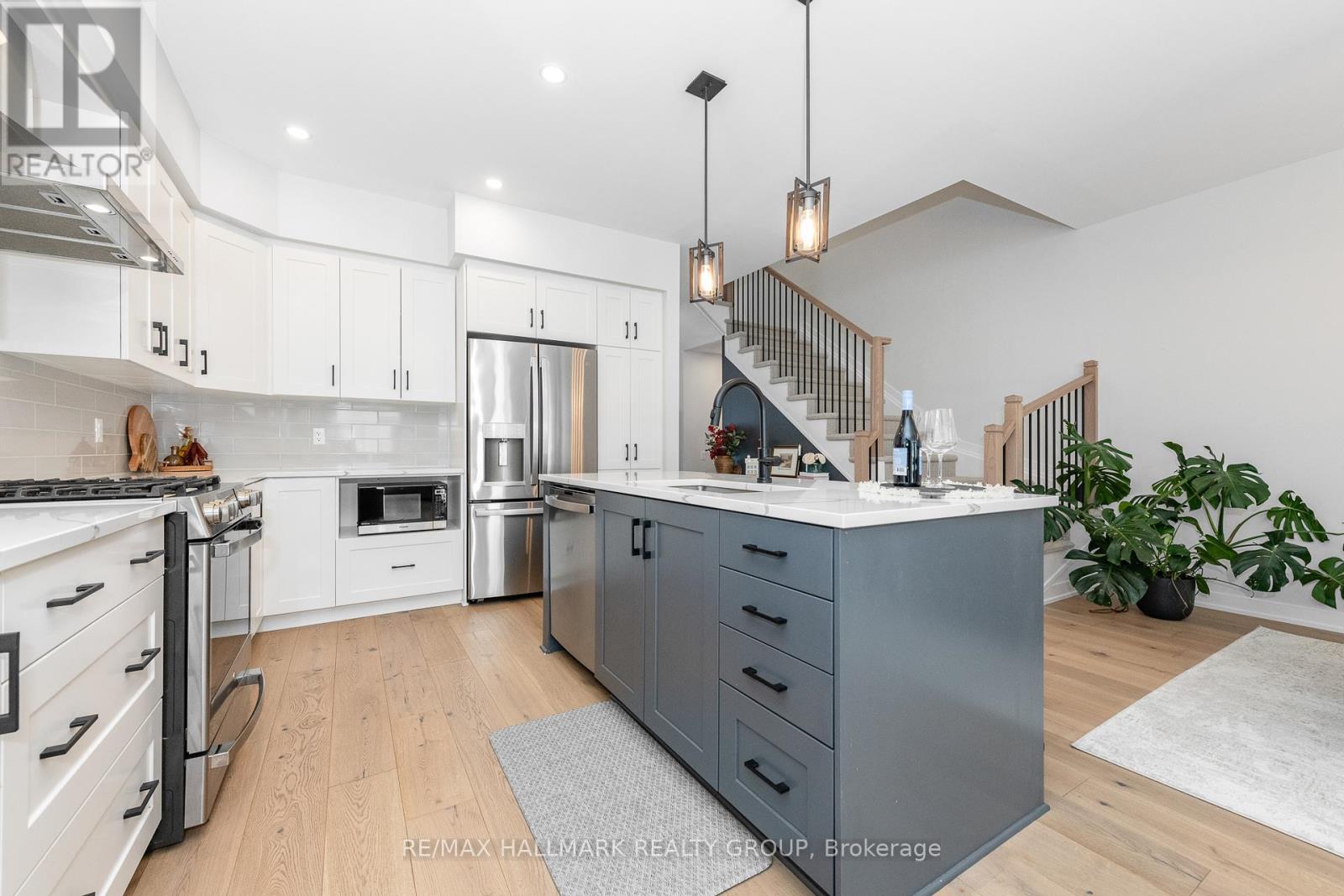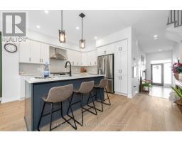 This move-in ready townhome features all-brick & -stone front elevation. A bright & spacious front entry features tile floor, which is extended to the powder room. Inside entry to the oversized garage is also found here. The open concept layout sets the tone for this upscale townhome. Attractive wide-plank wood floors & flat ceilings emphasize spaciousness. The kitchen has been efficiently designed to include sleek quartz counters, an island with breakfast bar, tiled backsplash, microwave sling, pot drawers and pantry. The eating area is currently furnished as media nook and is open to the dining room. The open concept offers flexibility for furniture arrangement. The generous living room is highlighted with an impressive fireplace, recessed lighting, large window and patio door, which offers an abundance of natural light and easy access to the back yard. Comfort characterizes the second level, featuring quality broadloom and ceramic tile flooring throughout. Primary bedroom boasts a walk-in closet, a large window and private luxury ensuite bath with soaker tub, large shower stall and a two-sink vanity. Two additional bedrooms are well-proportioned, offering ample closet space. A multi-use loft is ideal for those who require a home office, and the four-piece main bath and laundry room complete this level. Built with the growing family in mind, the expansive lower level significantly increases the living space of this home. The recreation room with quality carpeting, large window and recessed lighting is the ideal space for informal gatherings. Ample storage and future bathroom rough-in will be welcome features. Separate utility room accommodates the furnace, HRV and hot-water-on-demand system. Plenty of storage space remains in the large unfinished area. Last but not least, a generous back yard provides unlimited opportunity to personalize. This home is beautifully maintained, upgraded and decorated, better than new. Come back to stay! 24 hrs for offers. (id:31145)