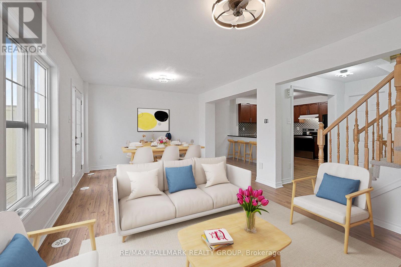 Welcome to 2325 Blue Aster, beautifully updated 2 bedroom townhome in sought after Half Moon Bay! This bright and spacious move in ready FREEHOLD townhome blends with comfort and convenience. The main floor has convenient access to the attached garage and closet. On the 2nd floor you step inside to a sun filled living/dining room adjacent to a large kitchen with granite counter and abundance of cabinetry. The living/dining has direct access to the spacious deck ideal for entertaining or enjoying some fresh air. The third floor has 2 spacious bedrooms with oversized closets that share access to a full bath. Great location close to Schools, Parks, Minto Rec Centre and Shopping. NEW FLOORING, NEW BERBER CARPETS, NEW STOVE, NEW FRIDGE, WASHER AND DRYER (2024), FRESHLY PAINTED WALLS, ALL NEW LIGHT FIXTURES AND FANS, DUCTS CLEANED JULY 24, 2025, FURNACE (2019). Don't miss your chance to own this move in ready beautiful home. Standout choice for first-time buyers, downsizers, or investors. Virtual staging in living, dining and bedroom. (id:31145)