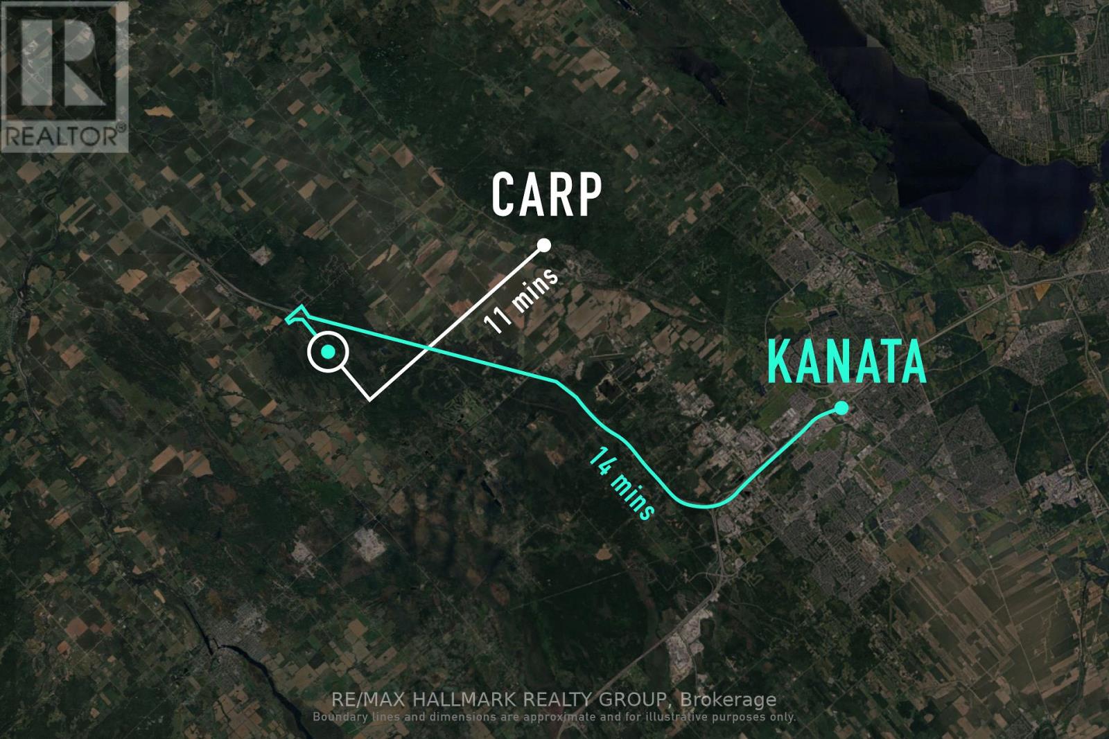 Located just 3 minutes from Highway 417 and 14 minutes from Kanata, this expansive 161-acre parcel on Marshwood Rd in Carp offers a rare blend of seclusion, natural character, and long-term potential. The property features mature forest, established UTV trails, marshland, and open clearings, making it well-suited for the development of a private country residence, recreational use, and hunting. An old log home on site now gutted presents an opportunity to rebuild as a hunt camp or off-grid retreat. Zoned RU (Rural Countryside), the land supports a variety of rural uses and is surrounded by the rugged terrain and ecological richness of the Carp Hills, just minutes from trails, local amenities, and the charm of Carp Village. This is a rare opportunity to secure large-scale rural land with excellent access, privacy, and flexibility in one of Ottawa's most naturally beautiful corridors. Brochure link can be found under Property Summary. (id:31145)