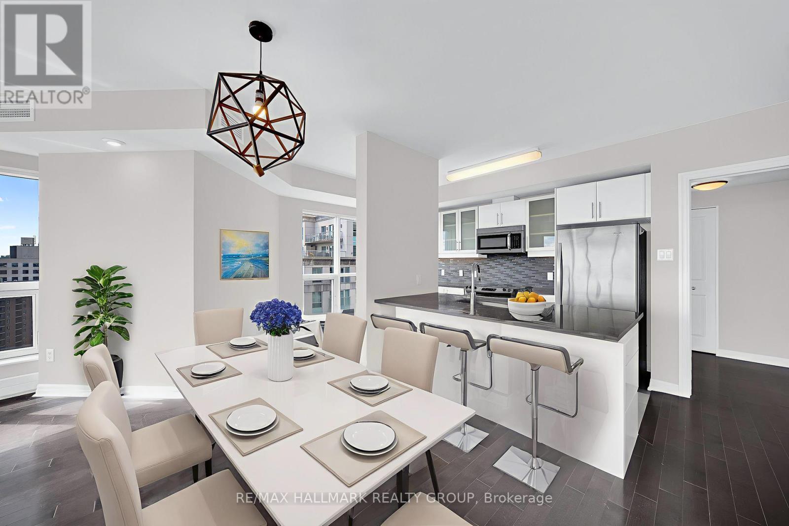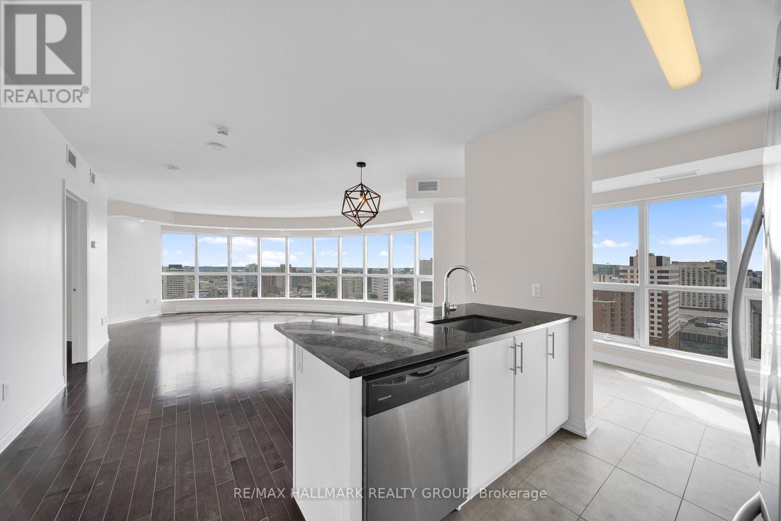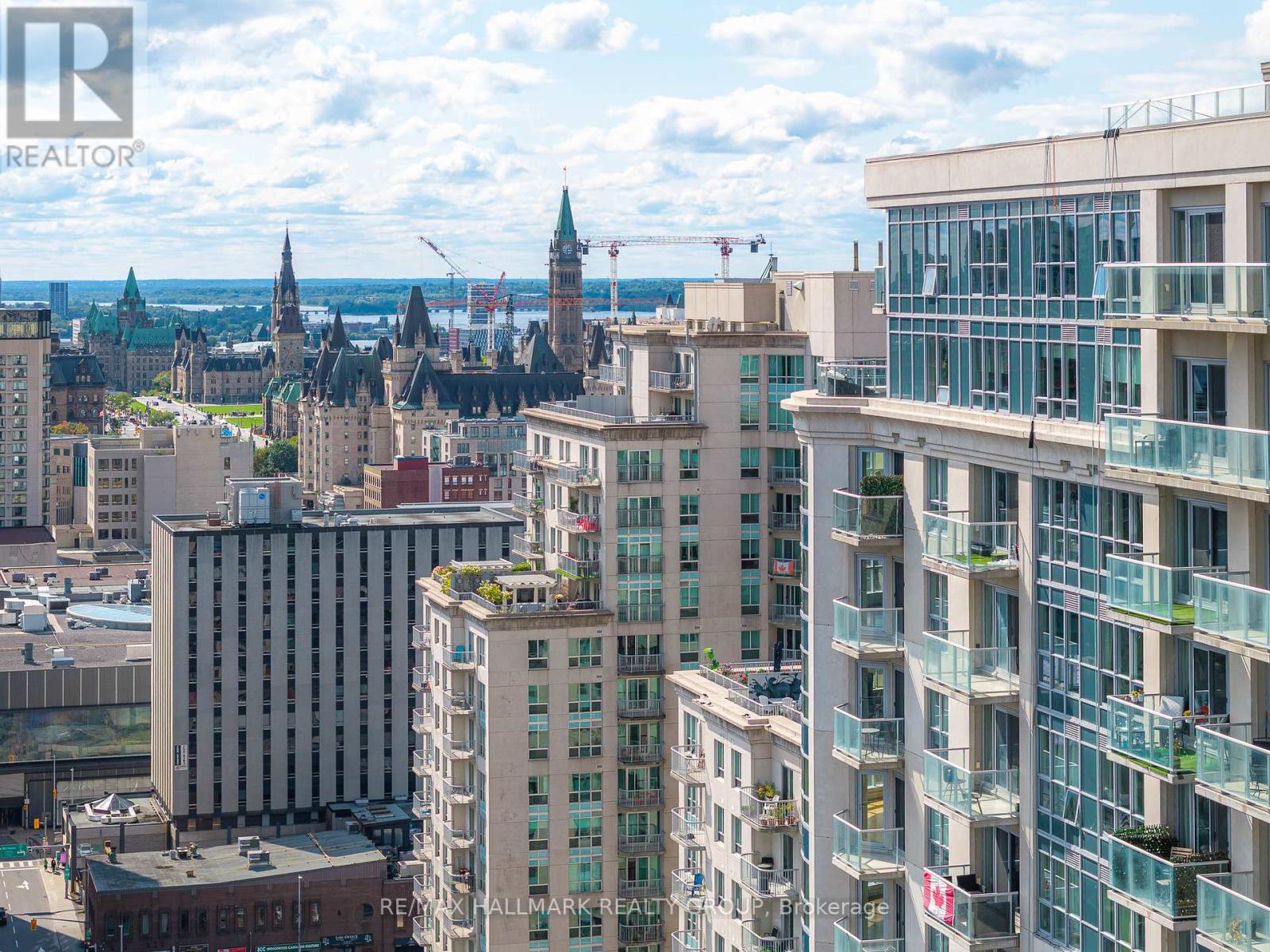 Luxury TWO bedrooms condo, South & West Exposure with non-obstruct panorama view in the heart of Downtown with sufficient sunlight! This 2 bedroom & 2 bathrooms plus den unit offers 1280sf, in this Luxury 28 storey tinted glass tower Prestigious Claridge Plaza(4). Private Balcony, Granite Counter tops & Appliances with In-Unit Laundry, Huge Floor-to-ceiling Curved window, two separate bedrooms all with its own bathroom, Spacious living space makes the difference. Breakfast beside kitchen with views of Parliament hill. One premium heated underground parking with large locker behind included, Heat and A/C are also included. Indoor salt water pool, sauna, fitness facilities, lounge, large landscaped terrace, party room grand lobby with 24-hour concierge & Security service! Walk to Parliament, Byward Market, University of Ottawa, Rideau Centre, NAC, Art Galleries, Fine Dinning, Canal & specialty shops, and good schools for kids! Pictures are from the previous listing. (id:31145)