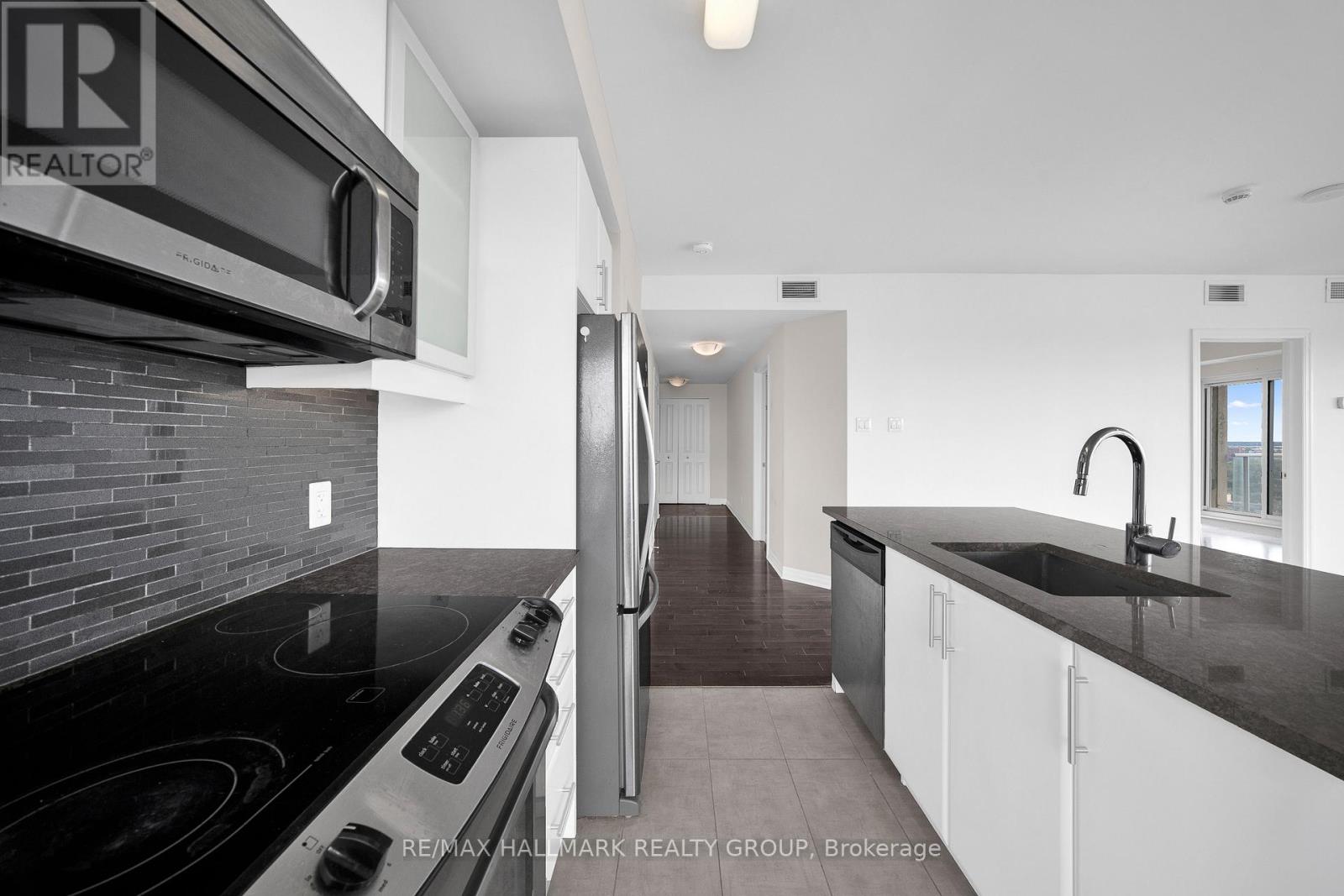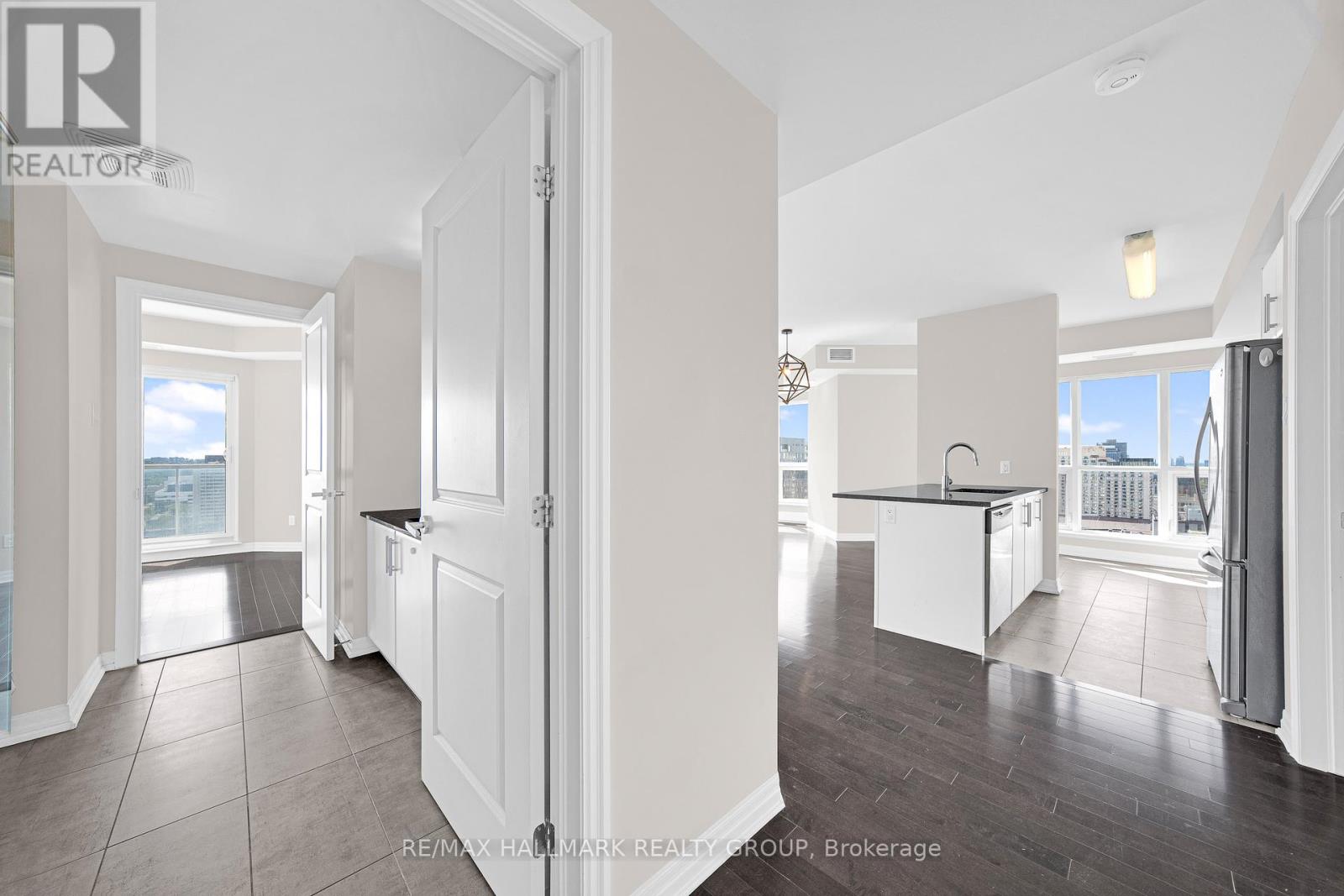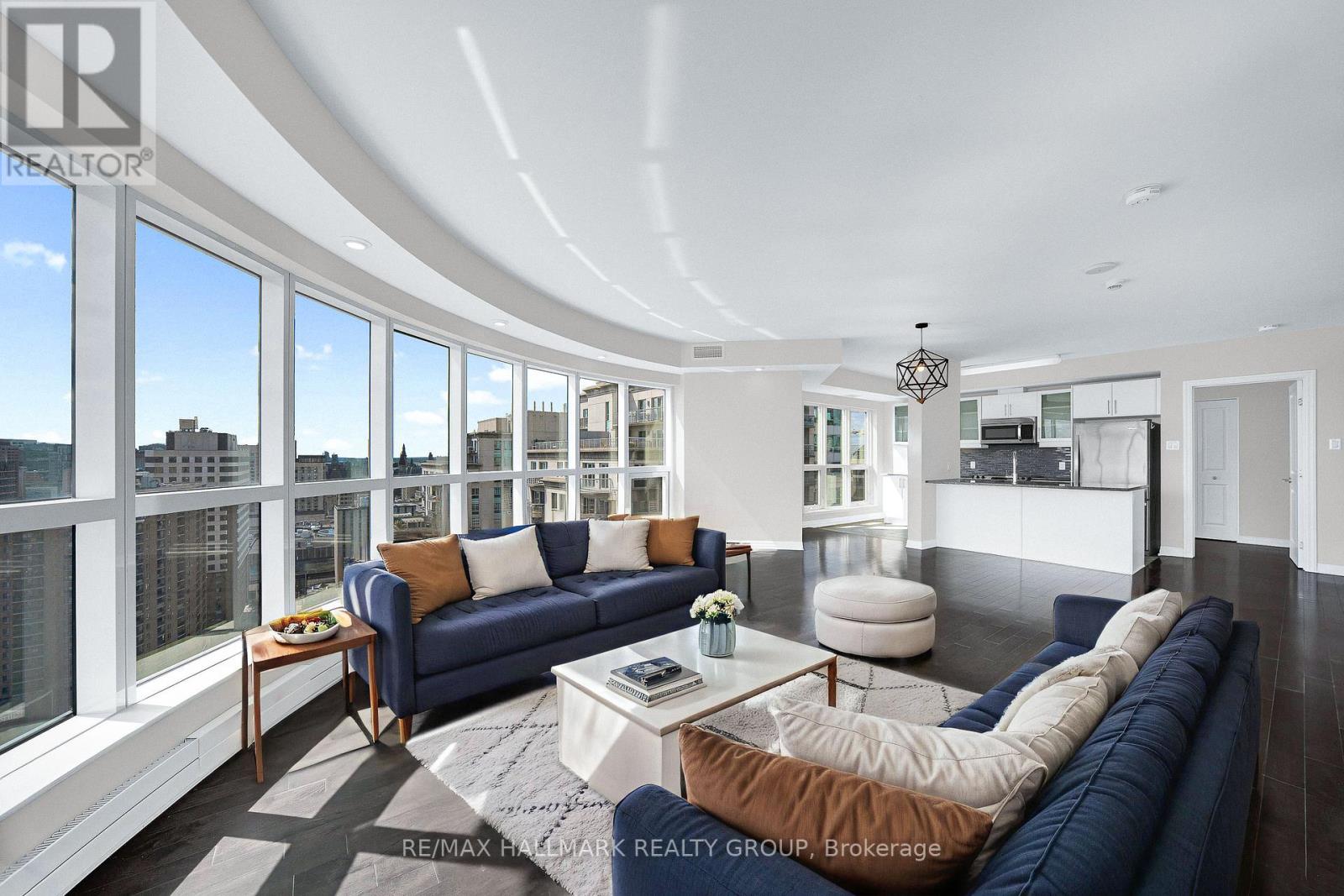 Luxury TWO bedrooms condo, South & West Exposure with non-obstruct panorama view in the heart of Downtown with sufficient sunlight! This 2 bedroom & 2 bathrooms plus den unit offers 1280sf, in this Luxury 28 storey tinted glass tower Prestigious Claridge Plaza(4). Private Balcony, Granite Counter tops & Appliances with In-Unit Laundry, Huge Floor-to-ceiling Curved window, two separate bedrooms all with its own bathroom, Spacious living space makes the difference. Breakfast beside kitchen with views of Parliament hill. One premium heated underground parking with large locker behind included, Heat and A/C are also included. Indoor salt water pool, sauna, fitness facilities, lounge, large landscaped terrace, party room grand lobby with 24-hour concierge & Security service! Walk to Parliament, Byward Market, University of Ottawa, Rideau Centre, NAC, Art Galleries, Fine Dinning, Canal & specialty shops, and good schools for kids! Pictures are from the previous listing. (id:31145)