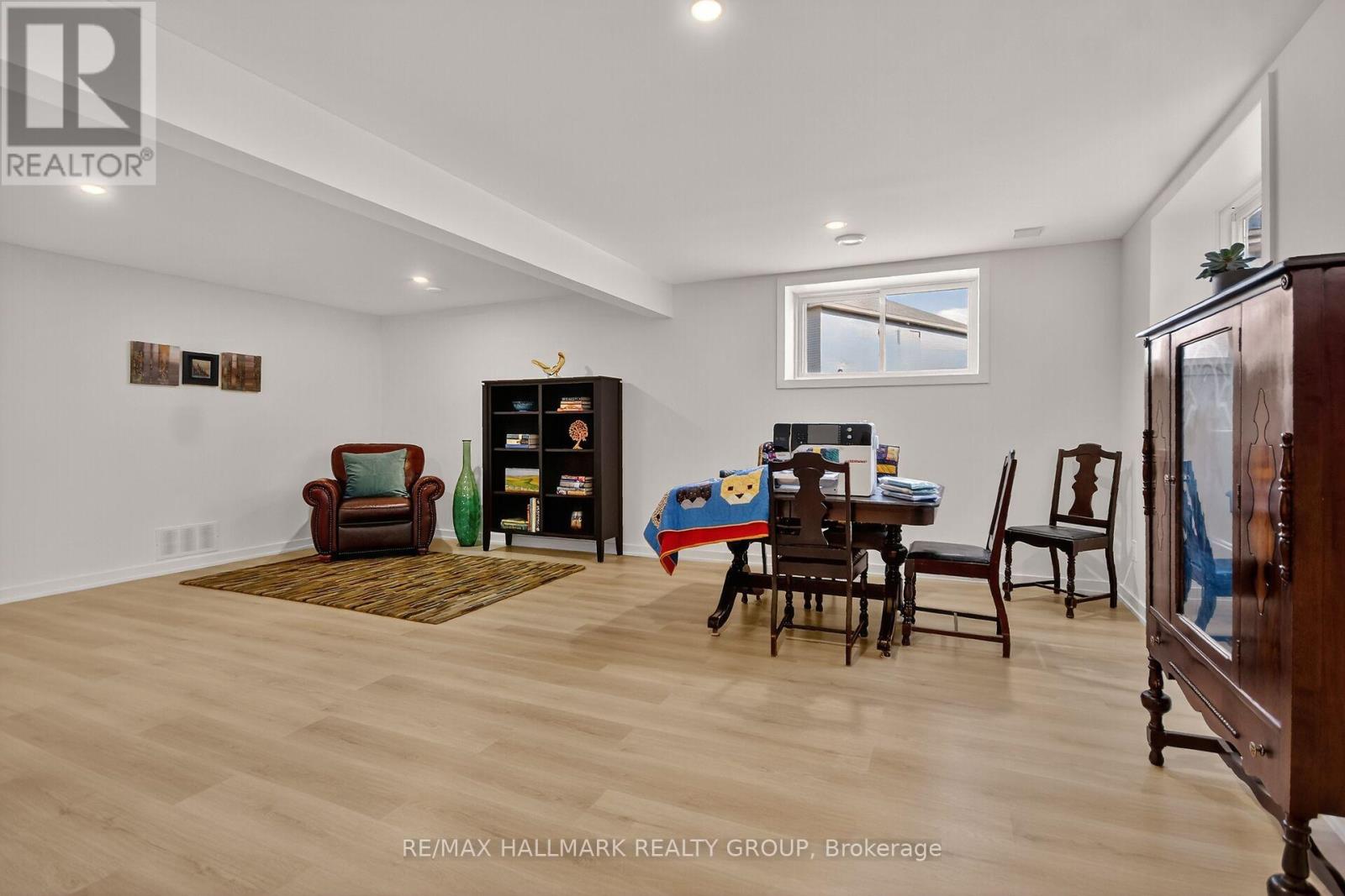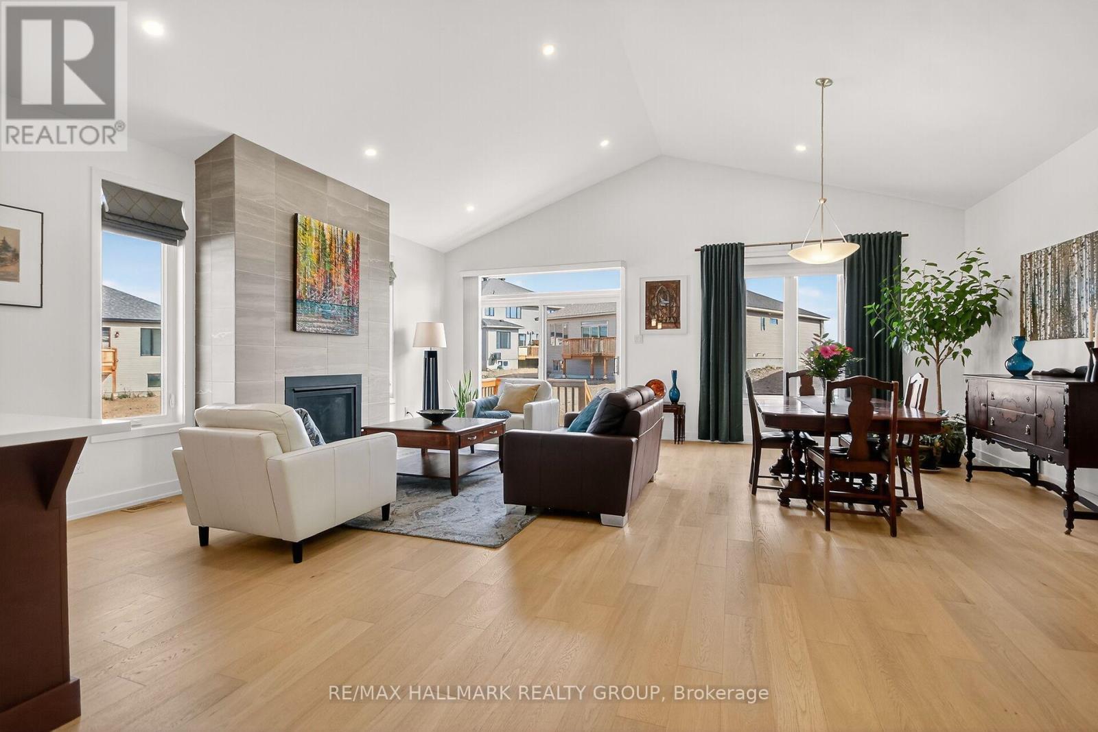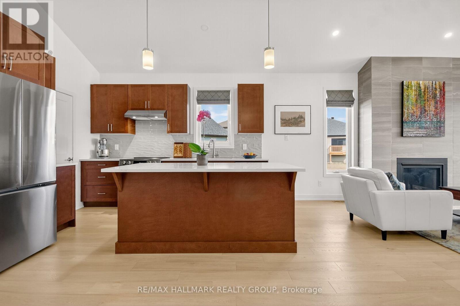 Welcome to this beautifully crafted bungalow, ideally situated just minutes from downtown Carleton Place and a short stroll to the serene Mississippi River. Thoughtfully designed and impeccably maintained, this 2+1 bedroom, 3 full bathroom home blends style, comfort, and quality upgrades throughout.The open-concept main level is bright and inviting, featuring hardwood flooring, pot lights, and a welcoming den - perfect for a home office or cozy reading nook. The kitchen showcases quartz countertops, a large pantry with a convenient electrical outlet, and a water line to the fridge for everyday ease. The spacious living and dining areas flow effortlessly, creating an ideal space for hosting family and friends.Both main floor bathrooms feature quartz counters, adding a cohesive and upscale touch. The main floor laundry room is designed for everyday function, complete with upper cabinets for added storage. Built with attention to detail inside and out, this home includes R60 attic insulation and a fully insulated garage for year-round comfort and efficiency. Set on a premium lot, the property offers plenty of outdoor space to relax and enjoy the peaceful surroundings. The finished lower level expands your living area with a warm family room for movie nights a hobby area perfect for crafting, games or creative projects. A third bedroom, a brand-new full bathroom (completed in 2025), and a generous storage space that can easily adapt to your needs.Backed by a Tarion warranty for peace of mind, this exceptional bungalow combines modern finishes, smart design, and a prime location - ready to welcome you home. (id:31145)