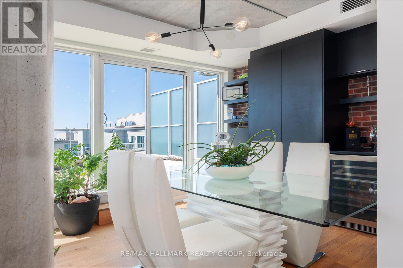 Claridge Plaza Phase 4 The Tribeca Penthouse Welcome to elevated living in the heart of downtown Ottawa. This stunning 2 bed + den, 2 bath penthouse offers an exceptional blend of luxury, comfort, and functionality with 1,415 sq ft of thoughtfully designed interior space and an impressive 480 sq ft private terrace showcasing panoramic views of the city skyline.Step inside to discover a bright, open-concept layout highlighted by floor-to-ceiling windows that flood the space with natural light. Rich hardwood flooring flows seamlessly throughout, adding warmth and sophistication to the contemporary design. The sleek, modern kitchen is a chefs dream complete with quartz countertops, stainless steel appliances, custom cabinetry, and an oversized island ideal for meal prep, casual dining, or entertaining guests.The spacious primary bedroom features generous closet space and a spa-inspired ensuite, while the second bedroom offers flexibility for family or guests. A separate den adds even more versatility, making it perfect for a home office, or a reading nook. Two beautifully appointed bathrooms round out the interior with premium finishes and timeless appeal. Located in the highly sought-after Claridge Plaza Phase 4, residents benefit from access to top-tier amenities including a fitness centre, rooftop terrace, party room, and 24/7 concierge service. For added convenience, this penthouse includes one underground parking space and a private storage locker. Don't miss this rare opportunity to own the prestigious Tribeca floor plan a perfect blend of style, space, and low-maintenance luxury living in the vibrant core of the city. CONDO FEES INCLUDE: Water , A/C, Heat, Building Insurance, Building Maintenance, Garbage Removal, Snow Removal, Common Areas Maintenance, Reserve Fund Allocation. Parking spot: P1 5, Storage Locker: Door behind the parking spot (id:31145)