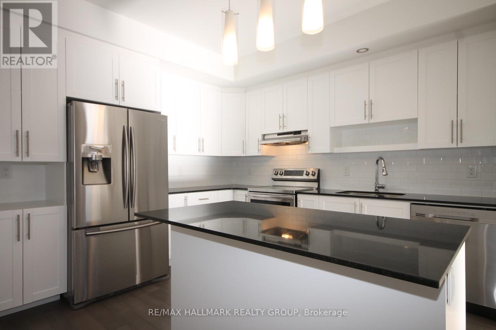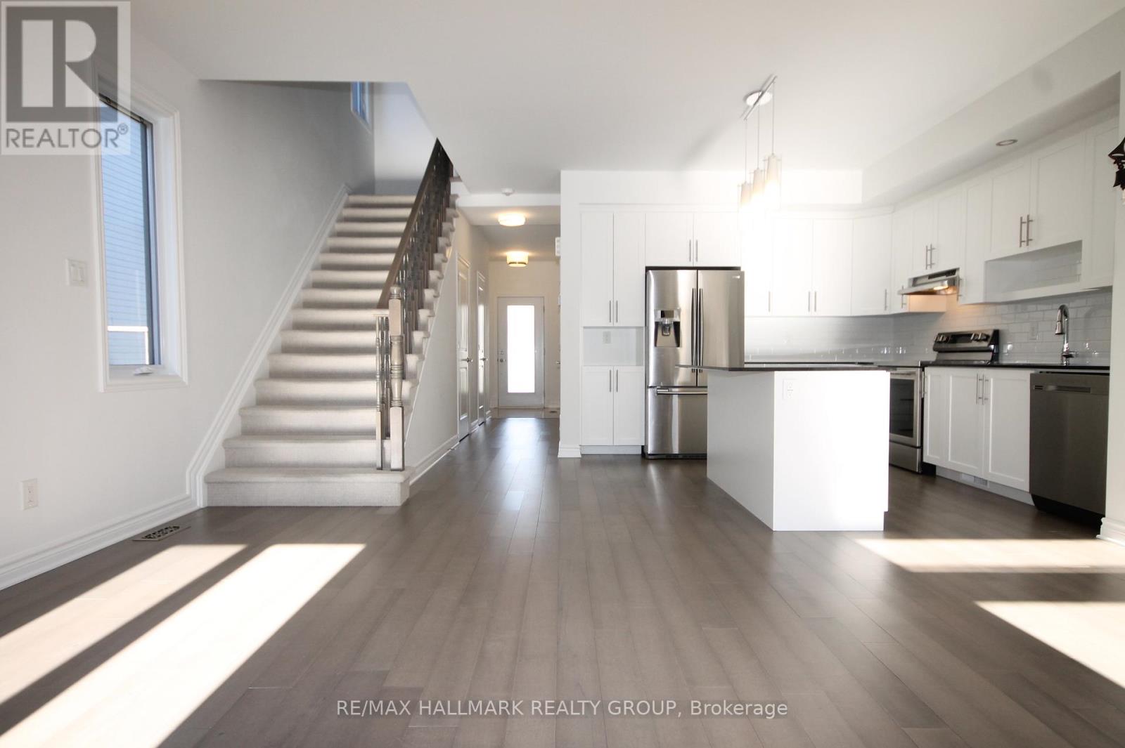 Nestled in a quiet, family-friendly neighbourhood, this bright and modern 3-bedroom, 3-bathroom end-unit townhouse offers style and convenience. The spacious open-concept main floor features a modern kitchen with a centre island, subway tile backsplash, and stainless steel appliances. The dining and family room, highlighted by a cozy gas fireplace, opens to a private rear yard-perfect for entertaining or relaxing. Upstairs, the primary bedroom includes a walk-in closet and ensuite bath, while bedrooms two and three each feature their own walk-in closets. Convenient second-floor laundry adds everyday ease. The lower level awaits your finishing touches, offering great potential for added living space. With an oversized laneway and close proximity to parks, schools, and local amenities, this home delivers the best of small-town living - just minutes from Ottawa. (id:31145)