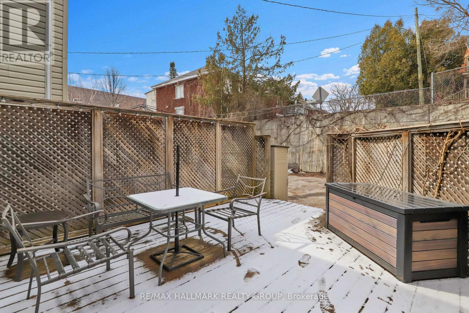 OPEN HOUSE SATURDAY APR 11 AND SUNDAY APR 12 2PM-4PM Welcome to a unique opportunity to enter the highly sought-after Glebe - one of Ottawa's most desirable neighbourhoods. This charming, updated end-unit row home offers 2 bedrooms and 2 bathrooms, combining comfort, style, and convenience.Ideally located just minutes from the Rideau Canal, Lansdowne Park, TD Place (OSEG Park), and the vibrant shops, restaurants, and amenities along Bank Street, this home places you in the heart of it all.This carpet-free, two-storey property features a bright and spacious eat-in kitchen with ample storage, pot lights, and a tiled backsplash. The rear door leads to a generously sized deck, perfect for entertaining, with access to two-car parking. The inviting living room boasts a cozy gas fireplace and built-in shelving, creating a warm and functional living space.The second floor features two generously sized bedrooms and an updated bathroom with direct access from the primary bedroom. The dry basement provides excellent storage options. Recent updates include washer and dryer (2026), parging and back door (2025), and siding (2023), offering peace of mind for years to come.Exceptional opportunity for first time buyers looking to get into the Glebe market. Offers will be reviewed Monday April 13th at 2pm (id:31145)