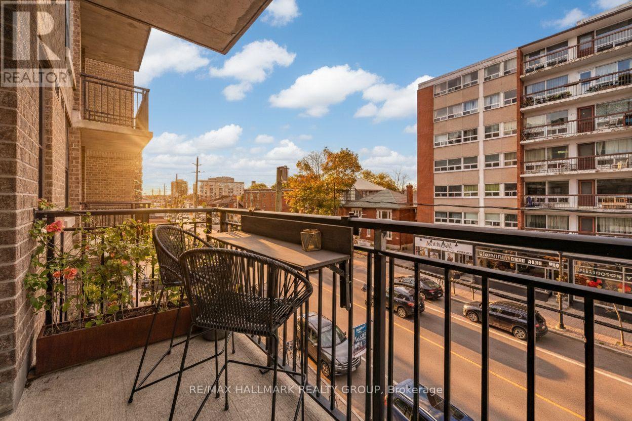 Sun-filled and generously proportioned one-bedroom condo in the heart of Wellington West, offering an ideal blend of space, comfort, and walkability. The open-concept layout features high ceilings, an oversized kitchen island with breakfast bar, ample cabinetry and storage, and a wall of windows that fills the living space with natural light. A thoughtfully designed walk-through closet leads to the ensuite bathroom, creating a functional and private layout well suited to everyday living. Step outside to a south-facing balcony, perfect for relaxing, entertaining, or enjoying a morning coffee. The unit includes underground heated parking and a storage locker conveniently located near the parking spot for added ease. The building, constructed by Routeburn, is a well-regarded low-rise known for its quiet units, quality craftsmanship, and strong sense of community. Condo fees include heat, A/C, and water, and there are no pet restrictions. Located just steps from the vibrant shops, cafes, markets, and restaurants of Wellington Village and Hintonburg, with Bridgehead right downstairs and Tunney's Pasture LRT a short walk away. Enjoy easy access to the Ottawa River, scenic pathways, and some of the city's best neighbourhood amenities. Tenant vacating at the end of February, offering vacant possession and flexible occupancy, making this an excellent opportunity for both end-users and investors seeking a prime urban lifestyle. (id:31145)