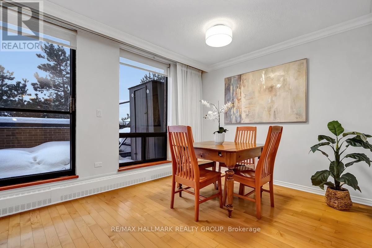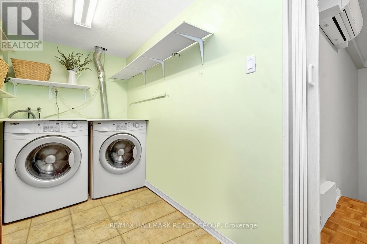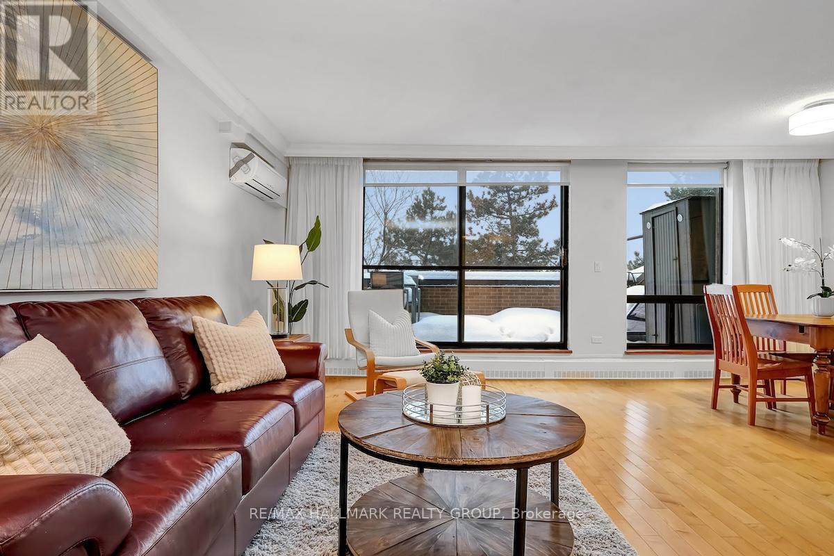 Unit 330 at 515 St. Laurent Blvd is one of those layouts people wait for. This 3 bedroom, two-storey podium unit offers over 1,200 square feet of living space and a large private terrace. For downsizers who aren't ready to give up space (or outdoor living), this is a smart option. The main floor is practical and comfortable. Hardwood floors run through the living and dining areas, and the solid wood kitchen has been updated over the years. It's a generous space with good storage and prep area - not flashy, clean, well-kept and just functional and well thought out. The main level has been freshly painted, and a few updated light fixtures give it a refreshed feel. Upstairs, you'll find three bedrooms that leave the option for a home office or hobby space. There's a full bathroom upstairs and a powder room on the main level. In-unit laundry with full-size machines adds convenience, and two wall-mounted A/C units keep things comfortable during the summer months. The Highlands is known for its mature grounds, walking paths, ponds, indoor pool, gym, party room, and car wash bay. Condo fees include heat, hydro, and water, which many owners appreciate for budgeting. Close to Montfort Hospital, St. Laurent Shopping Centre, transit, and the Ottawa River pathways, this location continues to be a practical choice for buyers who want central access without being downtown. If you value square footage, outdoor space, and a great location, this layout is worth seeing in person. (id:31145)