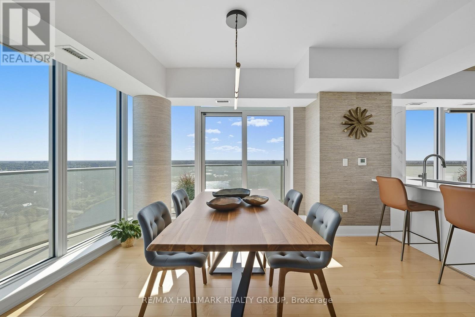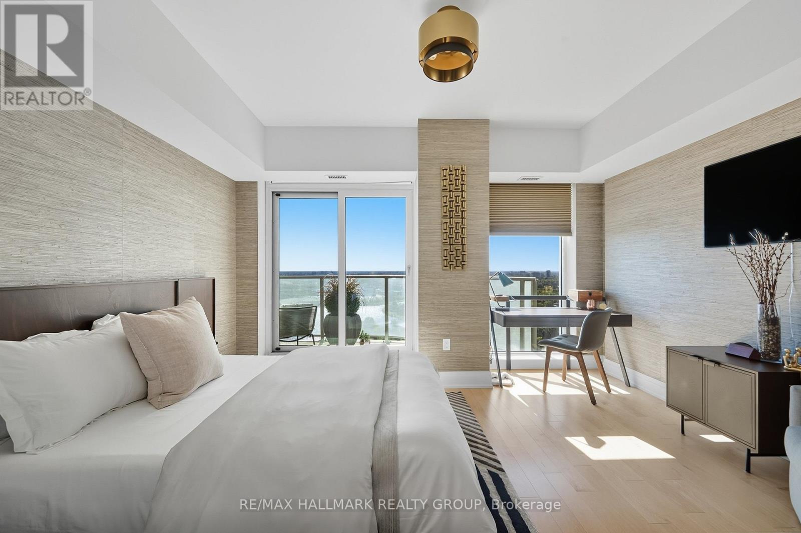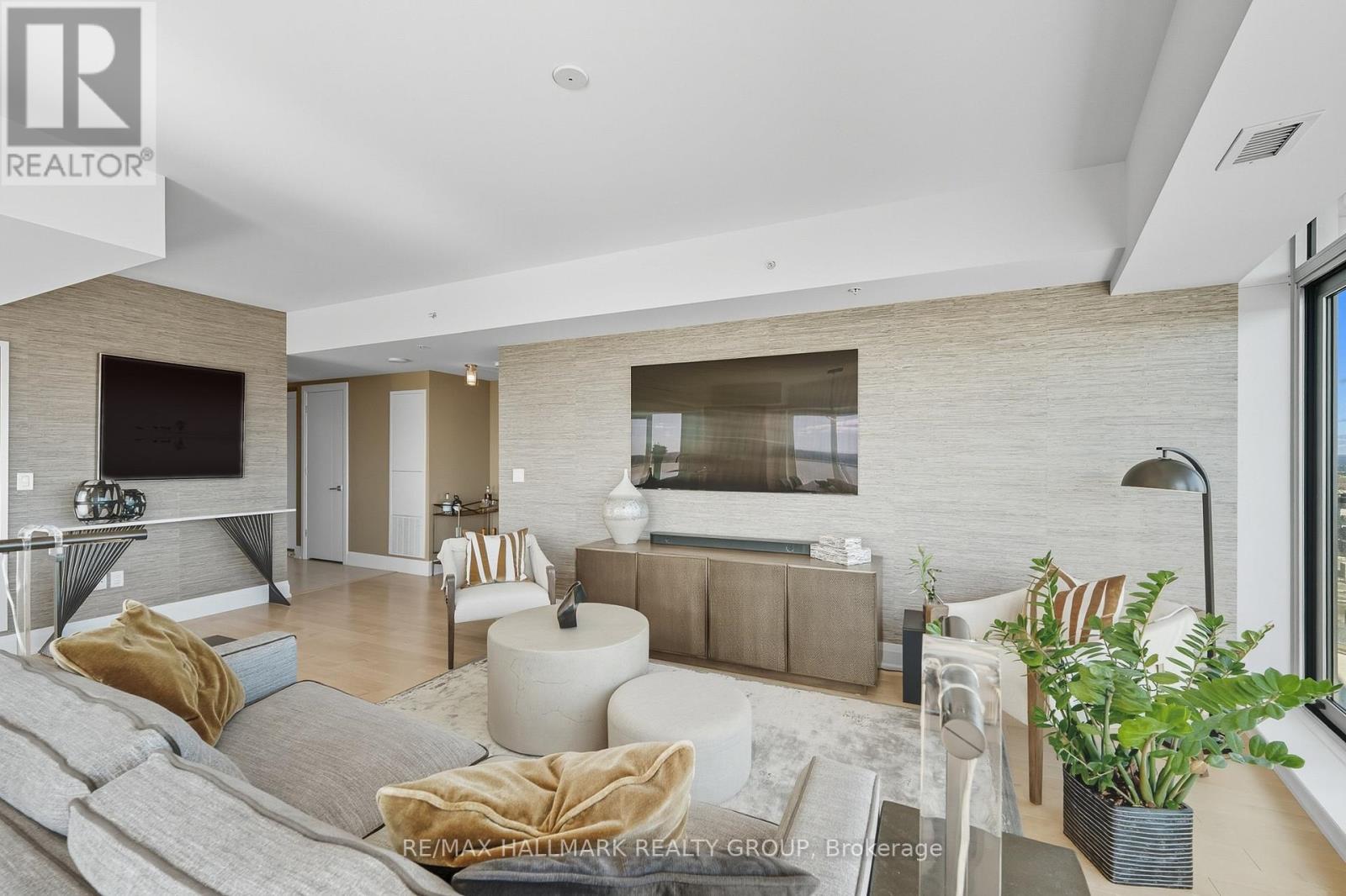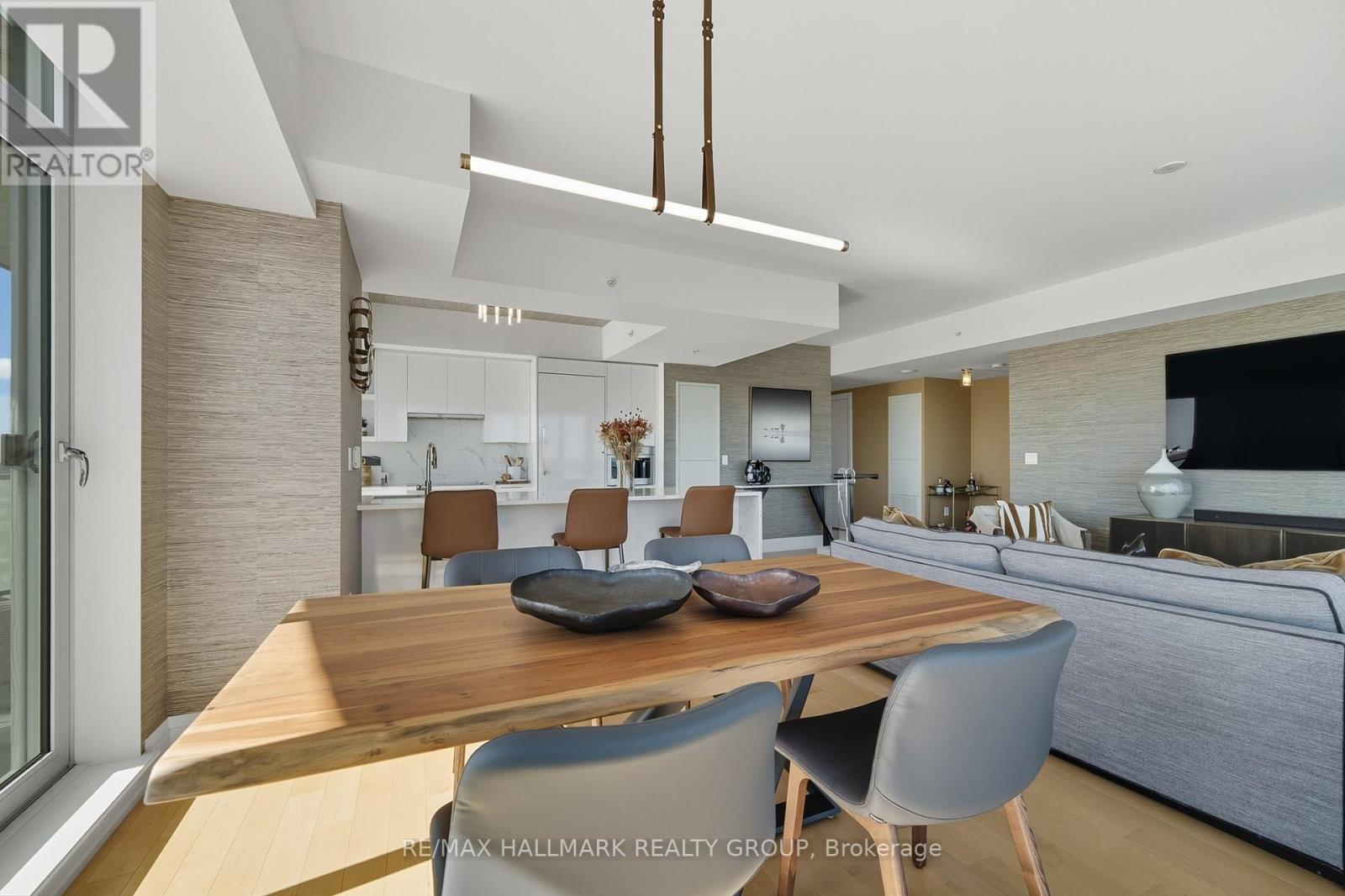Introducing the coveted New Safdie Model at Claridge Icon - Ottawa's tallest residential tower, rising elegantly above West Centre Town. This modern masterpiece redefines luxury condo living with flawless design, panoramic views, and an unrivalled lifestyle. Step inside to discover an open-concept layout adorned with floor-to-ceiling, wall-to-wall windows, immersing the residence in natural light while framing breathtaking southeast vistas of Dow's Lake, the city skyline, and beyond. Multiple access points lead to a spectacular wraparound balcony, the perfect stage for entertaining or enjoying serene morning coffees above the city. The gourmet kitchen is a showcase of refined minimalism, featuring sleek white cabinetry, premium integrated appliances including two built-in ovens, a cooktop, and a built-in coffee machine, all anchored by a stylish breakfast bar. Flow seamlessly into the expansive living and dining area where rich hardwood floors and clean architectural lines create an ambiance of understated elegance. Retreat to the serene primary suite, complete with a spacious walk-in closet and spa-inspired ensuite boasting a walk-in rain shower. A second bedroom and a luxurious 4-piece bath with rain shower provide comfort and versatility, while in-unit laundry adds convenience. This residence is complemented by two underground parking spaces & a storage locker, ensuring both practicality and prestige. Claridge Icon residents enjoy a curated collection of world-class amenities including 24hr concierge, indoor pool, sauna, fitness centre, rooftop terrace with community BBQs, elegant party & meeting rooms, guest suites for visiting friends & family and ample visitor parking. Situated at the nexus of culture and convenience, you are steps from the Rideau Canal, NCC walking trails, vibrant Little Italy with its cafés and restaurants and enjoy the ease of effortless public transit access right at your doorstep. Available For Rent. Monthly Rent: $4,995.00 + Hydro. (id:31145)