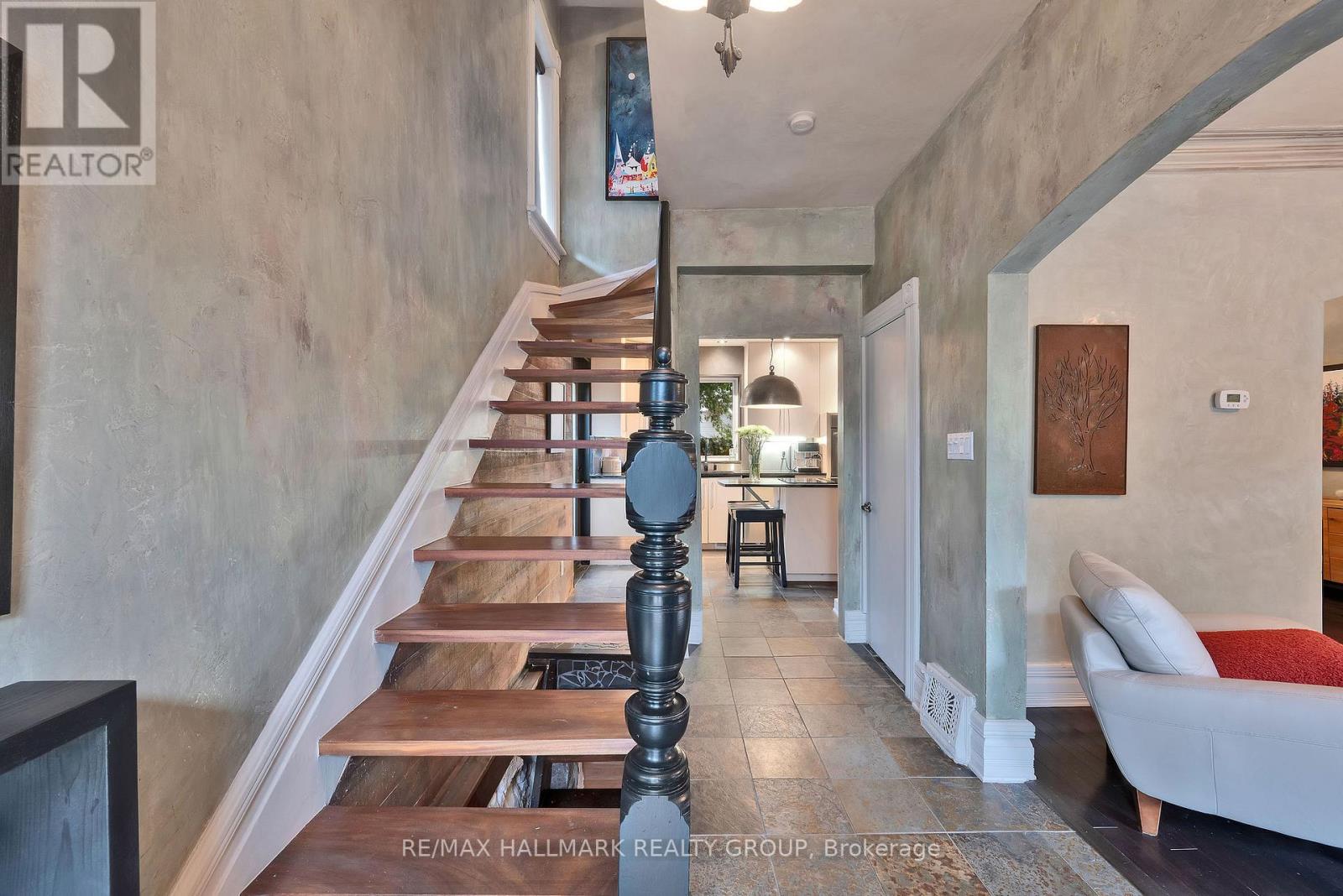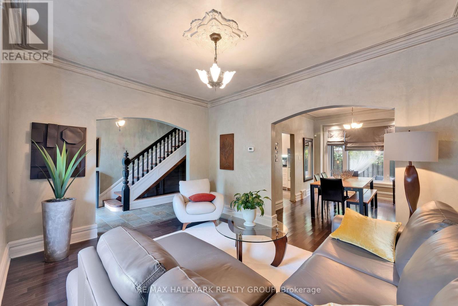 This stately red-brick home blends timeless character with modern updates in the heart of Centretown. A welcoming front porch and mature greenery set the tone, opening to bright interiors with high ceilings, hardwood floors, and elegant crown moulding. The main level offers a comfortable living room, a formal dining space overlooking the backyard retreat, and a stylish kitchen with stone counters, sleek cabinetry, and a central island. The second floor features two well-sized bedrooms, a full bathroom, and a dedicated home office, perfect for today's lifestyle. The top floor is reserved for the private primary retreat, complete with custom-built-in closets, skylight accents, and a spa-inspired en-suite. The lower level expands the living space with laundry, abundant storage, and a flexible finished area ideal as a home office, gym, sauna, or its current use: a wine cellar for storing your favourite bottles. Step outside to your own urban oasis: a backyard designed for entertaining with tiered decks, a vine-covered pergola, and soft lighting that creates the perfect setting for gatherings or quiet evenings. A rare opportunity to enjoy historic curb appeal, modern updates, and versatile living in one of Ottawa's most sought-after neighbourhoods. (id:31145)