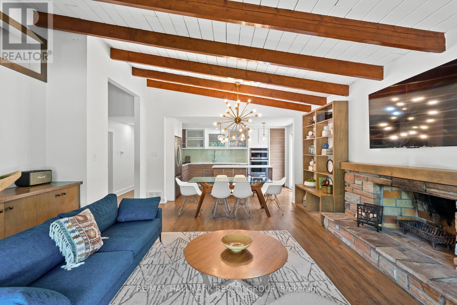FULLY FURNISHED - ALL INCLUSIVE UTILITIES - Chalmers Mid Century Modern Bungalow in the heart of prestigious Alta Vista! 4 bed/3 FULL BATH is pro designed, making it the IDEAL TURN-KEY residence! Be welcomed into this architectural gem with soaring 12 ft ceilings w/ EXPOSED CEDAR BEAMS spanning the entire main-entertaining space! The OPEN CONCEPT kitchen feat. HIGH END SS APPLIANCES complete w/ GAS RANGE, & BUILT-IN CONVECTION OVEN & MICRO! Cozy up to TWO WOOD-BURNING FIREPLACES! The MAIN FL DEN is the ideal work from home office! The Master Retreat is SPACIOUS w/ DBL CLOSETS & DBLE SINK ENSUITE! The lower level feat. an additional 1600 sqft of living space: family room, full bathroom, 2nd mini Office, rec/play room, 2 STORAGE ROOMS & spacious LAUNDRY w/ FREEZER & AMPLE STORAGE! Walk to 3 hospitals: CHEO, Riverside & General. 1 km from Rapid Transit Station, 10 min. to D-TOWN; TOP Schools and dog-friendly Grasshopper Park 700m walk! (id:31145)