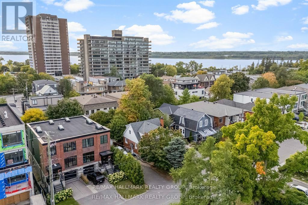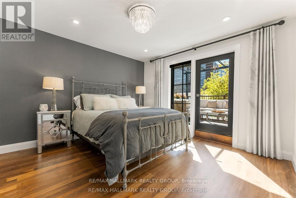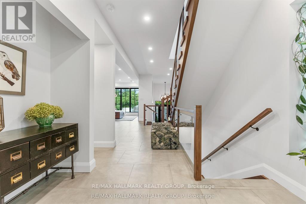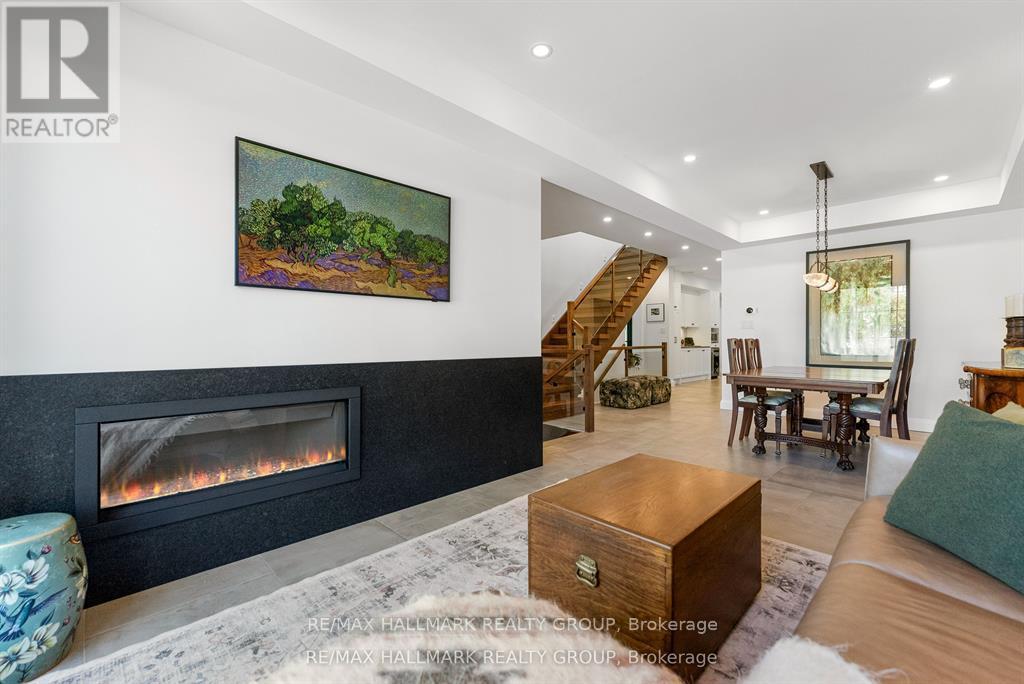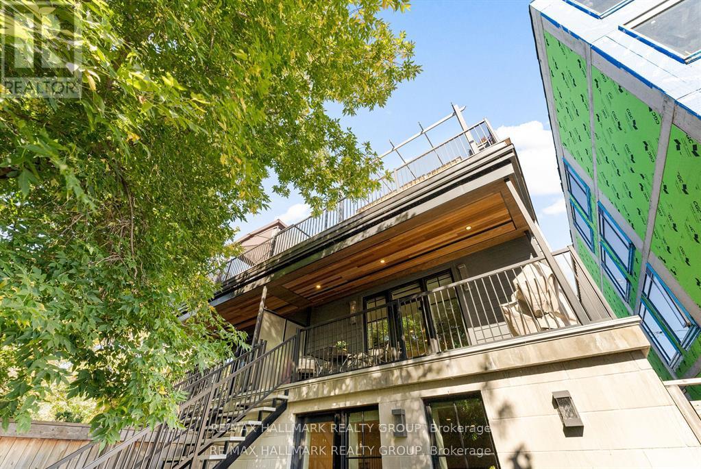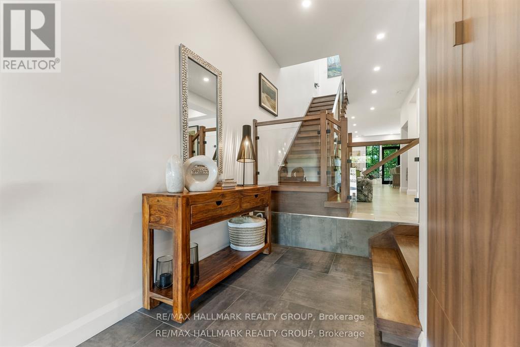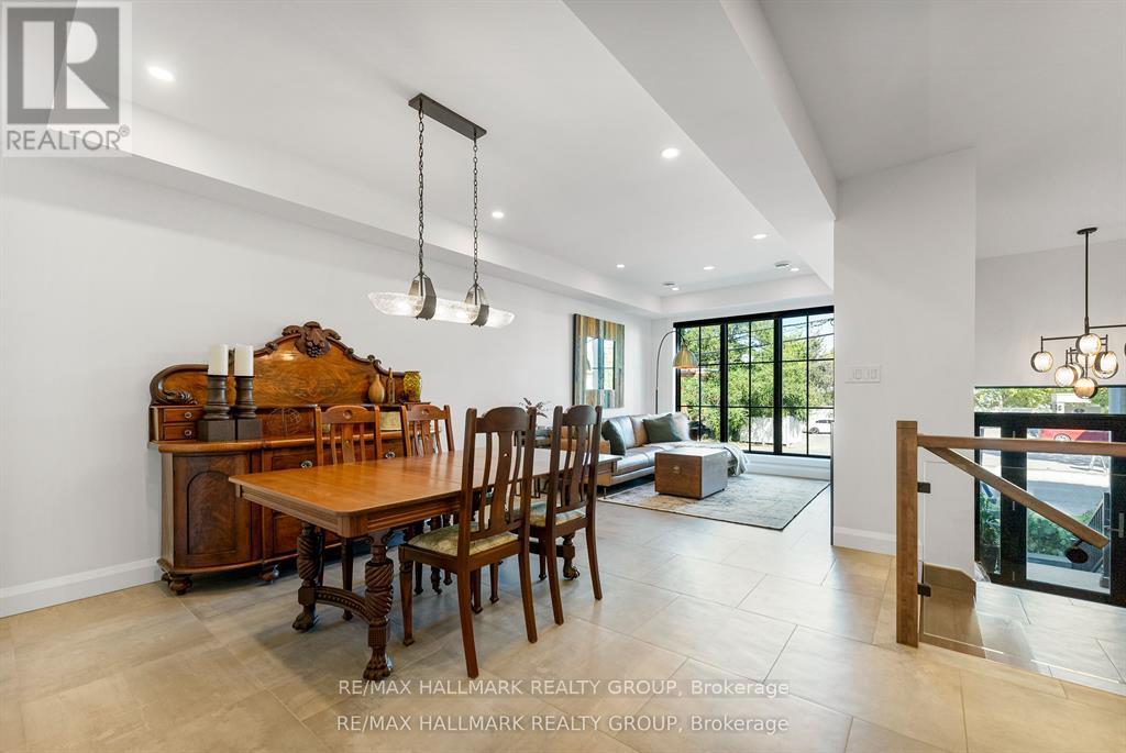 Welcome to your exquisite New York-style brownstone nestled in the vibrant Westboro Village.This stunning residence offers an unparalleled lifestyle for those who cherish the art of living.Step outside and find yourself within walking distance of the finest restaurants, boutique shops, or explore your culinary skills with fresh, local ingredients from the summer Farmers Market around the corner.Enter through an exterior heated floor into a foyer crowned by a compass-inspired chandelier. Glass and walnut railings lead to a living area anchored by a leathered granite-slab fireplace and a Frame TV for rotating art display while the dining room dazzles under custom lighting.For those who love to cook, the kitchen is a culinary dream come true.It boasts an oversized island and a delightful dining alcove, equipped with high-end Bosch appliances, a wine fridge, a chef's sink, and ample storage.Picture yourself gather for summer evening barbecues and dine al fresco on the inviting porch, while radiant in-floor heating ensures year-round comfort.A skylit,illuminated stairway rises to the upper level, where you'll find the spacious primary suite with its luxurious dressing area and a black-and-white tiled ensuite with heated floors and skylight. Step outside onto your private exterior deck, perfect for summer lounging.Two additional bedrooms feature walnut floors. A beautifully appointed bathroom showcases in-floor heating & skylight.Dedicated laundry room adds daily ease.Discover versatile living on the lower level, complete with a private entrance, full-height windows and direct access to a charming backyard. Enjoy heated polished concrete floors, stunning bathroom with washer/dryer & roughed-in plumbing for a bar or kitchen, making this an ideal in-law suite.Constructed with reinforced concrete, cold-formed steel and an acid-washed brick exterior, plus a snow-melting driveway, this home blends lasting strength with refined aesthetics.Embrace the Westboro Village lifestyle! (id:31145)