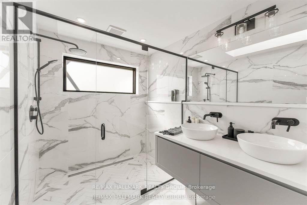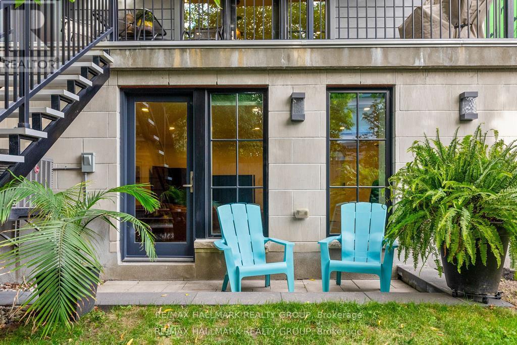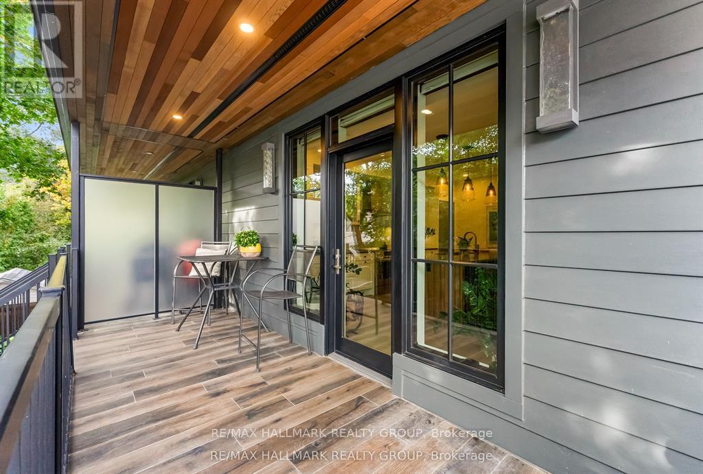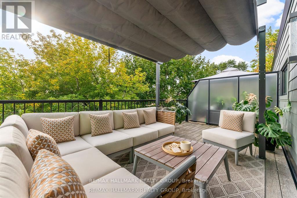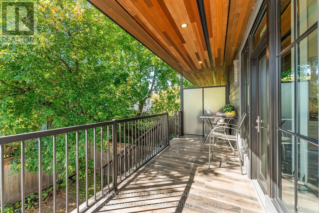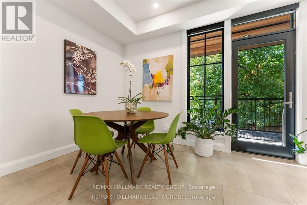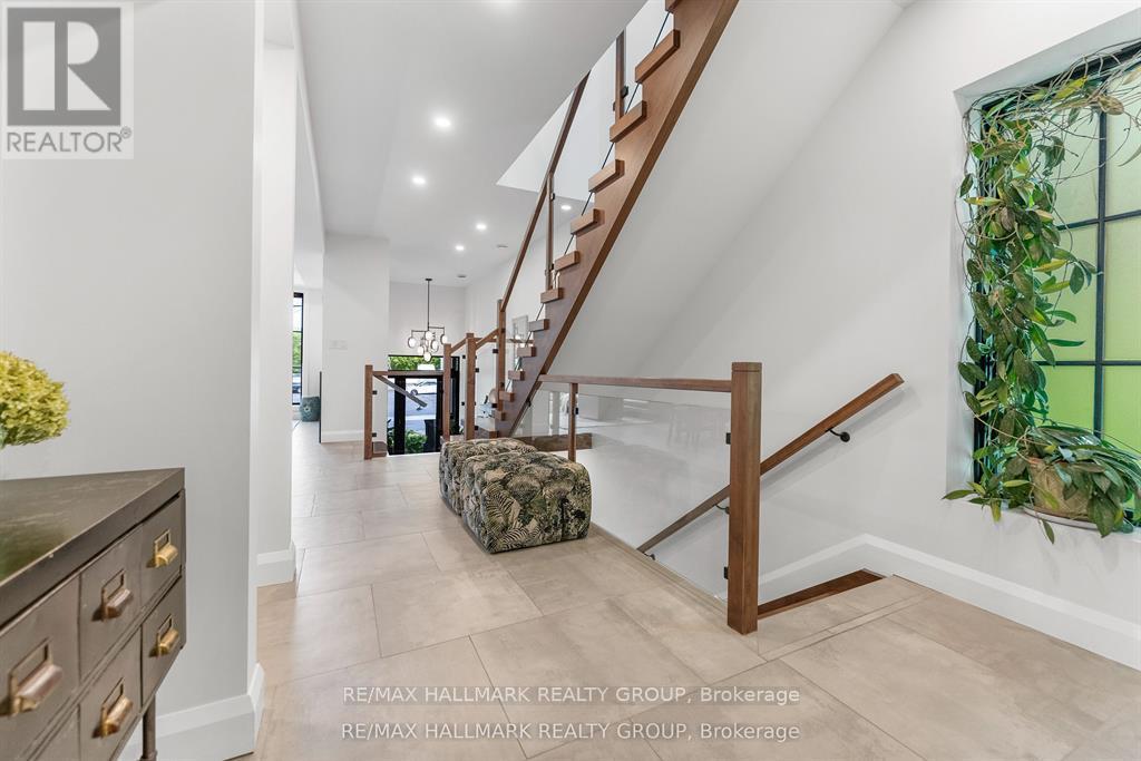 Welcome to your exquisite New York-style brownstone nestled in the vibrant Westboro Village.This stunning residence offers an unparalleled lifestyle for those who cherish the art of living.Step outside and find yourself within walking distance of the finest restaurants, boutique shops, or explore your culinary skills with fresh, local ingredients from the summer Farmers Market around the corner.Enter through an exterior heated floor into a foyer crowned by a compass-inspired chandelier. Glass and walnut railings lead to a living area anchored by a leathered granite-slab fireplace and a Frame TV for rotating art display while the dining room dazzles under custom lighting.For those who love to cook, the kitchen is a culinary dream come true.It boasts an oversized island and a delightful dining alcove, equipped with high-end Bosch appliances, a wine fridge, a chef's sink, and ample storage.Picture yourself gather for summer evening barbecues and dine al fresco on the inviting porch, while radiant in-floor heating ensures year-round comfort.A skylit,illuminated stairway rises to the upper level, where you'll find the spacious primary suite with its luxurious dressing area and a black-and-white tiled ensuite with heated floors and skylight. Step outside onto your private exterior deck, perfect for summer lounging.Two additional bedrooms feature walnut floors. A beautifully appointed bathroom showcases in-floor heating & skylight.Dedicated laundry room adds daily ease.Discover versatile living on the lower level, complete with a private entrance, full-height windows and direct access to a charming backyard. Enjoy heated polished concrete floors, stunning bathroom with washer/dryer & roughed-in plumbing for a bar or kitchen, making this an ideal in-law suite.Constructed with reinforced concrete, cold-formed steel and an acid-washed brick exterior, plus a snow-melting driveway, this home blends lasting strength with refined aesthetics.Embrace the Westboro Village lifestyle! (id:31145)