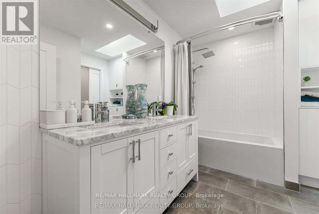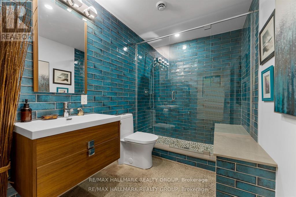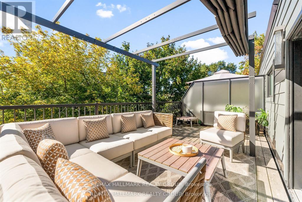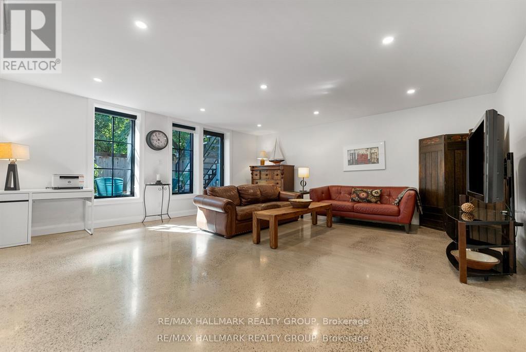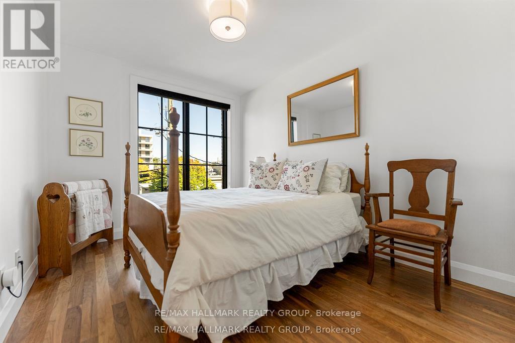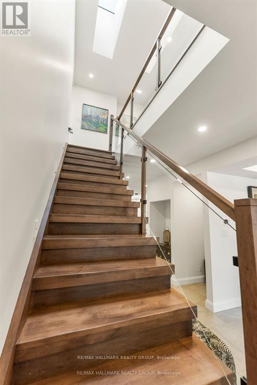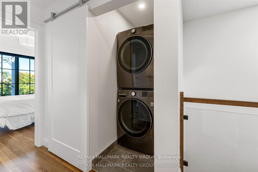 Welcome to your exquisite New York-style brownstone nestled in the vibrant Westboro Village.This stunning residence offers an unparalleled lifestyle for those who cherish the art of living.Step outside and find yourself within walking distance of the finest restaurants, boutique shops, or explore your culinary skills with fresh, local ingredients from the summer Farmers Market around the corner.Enter through an exterior heated floor into a foyer crowned by a compass-inspired chandelier. Glass and walnut railings lead to a living area anchored by a leathered granite-slab fireplace and a Frame TV for rotating art display while the dining room dazzles under custom lighting.For those who love to cook, the kitchen is a culinary dream come true.It boasts an oversized island and a delightful dining alcove, equipped with high-end Bosch appliances, a wine fridge, a chef's sink, and ample storage.Picture yourself gather for summer evening barbecues and dine al fresco on the inviting porch, while radiant in-floor heating ensures year-round comfort.A skylit,illuminated stairway rises to the upper level, where you'll find the spacious primary suite with its luxurious dressing area and a black-and-white tiled ensuite with heated floors and skylight. Step outside onto your private exterior deck, perfect for summer lounging.Two additional bedrooms feature walnut floors. A beautifully appointed bathroom showcases in-floor heating & skylight.Dedicated laundry room adds daily ease.Discover versatile living on the lower level, complete with a private entrance, full-height windows and direct access to a charming backyard. Enjoy heated polished concrete floors, stunning bathroom with washer/dryer & roughed-in plumbing for a bar or kitchen, making this an ideal in-law suite.Constructed with reinforced concrete, cold-formed steel and an acid-washed brick exterior, plus a snow-melting driveway, this home blends lasting strength with refined aesthetics.Embrace the Westboro Village lifestyle! (id:31145)