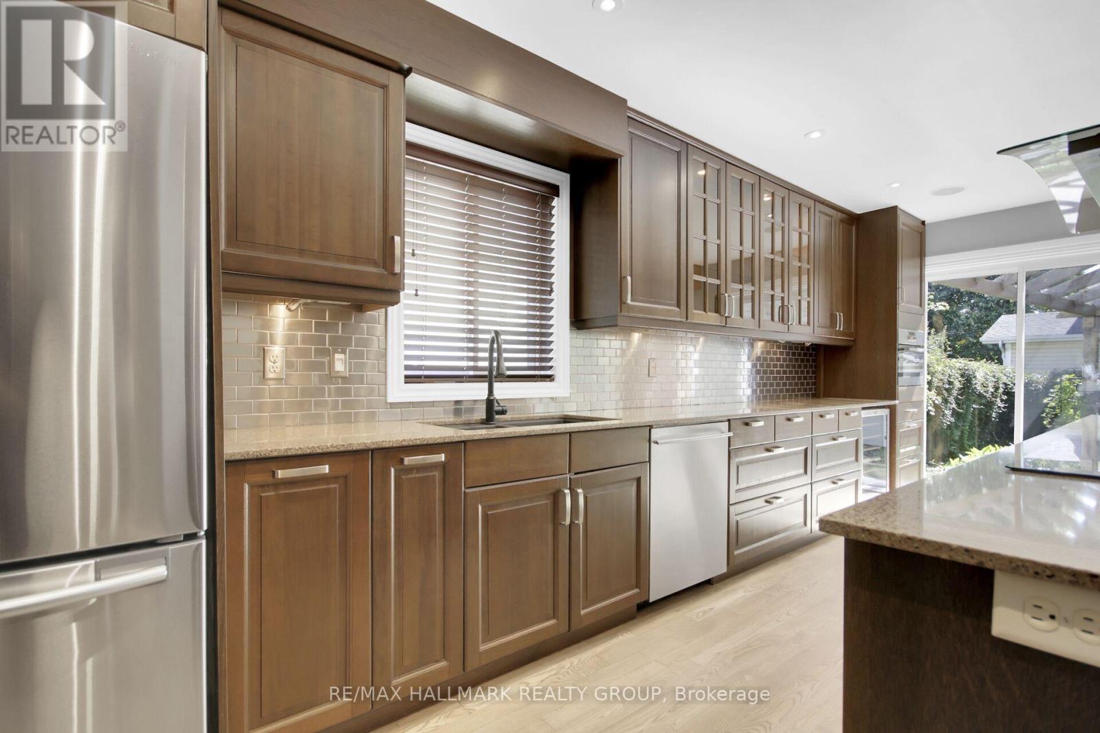 This home will WOW you with luxury in its 2-stories boasting 3 spacious bedrooms and 3 elegant bathrooms. Gleaming hardwood floors! Stone wall in the dining room! Amazing custom kitchen with granite counters, huge island with cooktop, hood fan and built-in dual ovens; large built-in microwave and beverage fridge, a ton of cupboards, a desk area and living room area. The second floor offers a large yet cozy family room with fireplace perfect for gatherings, primary bedroom with ensuite and walk-in closet. Two good sized bedrooms and full bathroom. The beautifully finished lower level has a feature wall, games table, laundry and storage. Comfortable fenced backyard with pergola and shed provide a private area to relax. Nestled on a quiet court in a vibrant community, this home offers the perfect blend of comfort and convenience. Don't miss your chance to call this extraordinary property home! (id:31145)