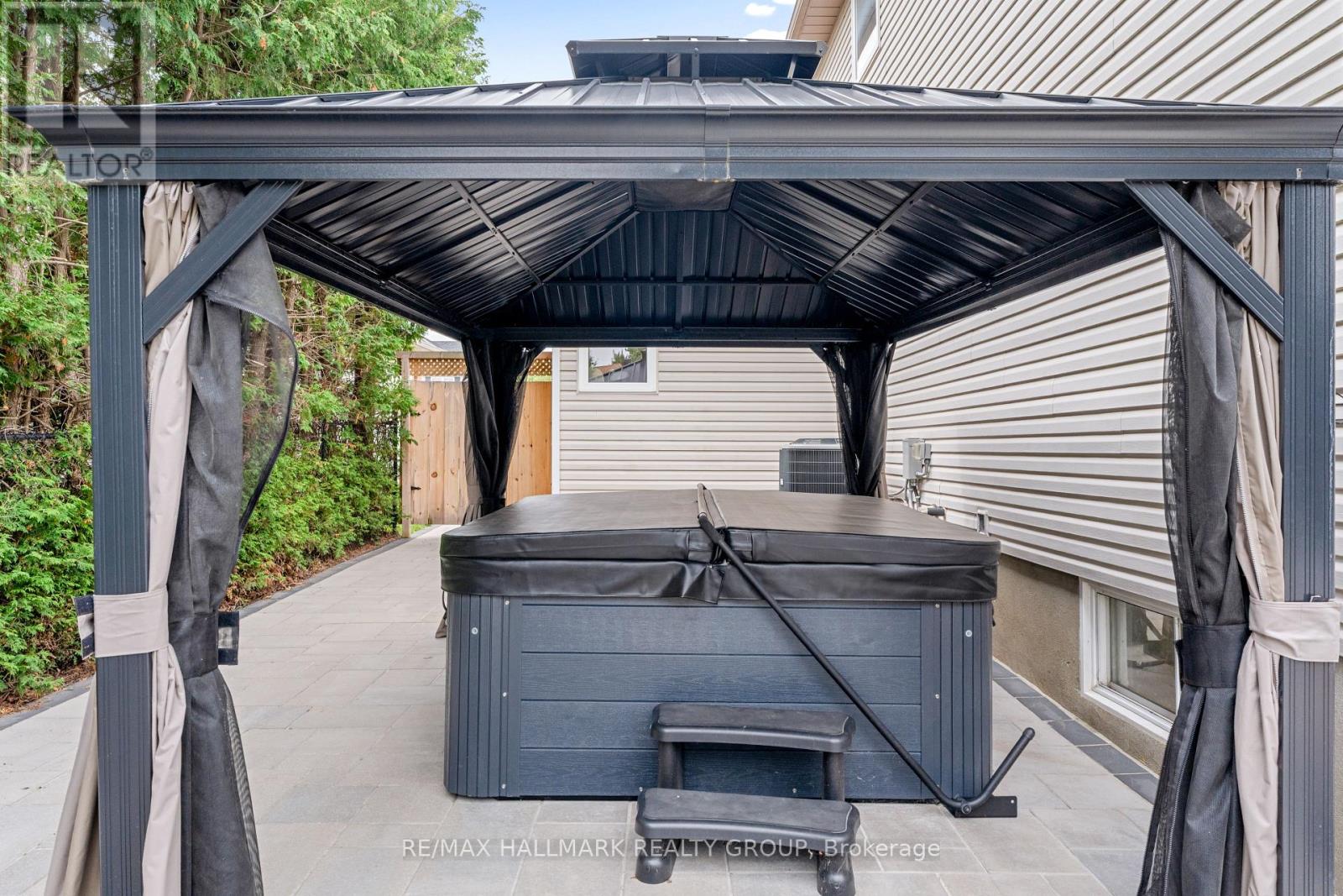 Discover contemporary elegance in this fully upgraded 5-bedroom, 4-bathroom residence, meticulously renovated with 150K in premium improvements. Featuring a fully finished basement, this home offers over 3,000 sq. ft. of total living space-thoughtfully designed for comfort, functionality, and style. From the moment you enter the welcoming foyer, you'll appreciate the attention to detail and the seamless blend of modern finishes and timeless charm. The main floor features an open-concept living and dining area highlighted by classic wainscoting and elegant design touches. A dedicated main-floor office provides an ideal space for remote work, while the cozy family room with a fireplace creates a warm and inviting atmosphere. The modern eat-in kitchen has been beautifully refreshed with new appliances, including a stove, dishwasher, and microwave/hood fan. Freshly painted cabinetry with updated doors adds a stylish touch, and from here, you can step directly into your private backyard retreat-perfect for entertaining or unwinding. Outdoor living is elevated with interlocked front and rear patios, a hot tub under a gazebo, a fenced dog pan, storage shed, and a trampoline, all included with the home. The backyard is designed for both relaxation and play. Upstairs, hardwood flooring flows throughout, complemented by elegant hardwood stairs. A second-floor laundry room provides convenience, while four spacious bedrooms offer generous space for family and guests. The primary suite is a private retreat, featuring a walk-in closet and a beautifully finished ensuite bathroom. The fully finished lower level expands your living space with a large recreation room, an additional bedroom, a full bathroom, and ample storage-ideal for a growing family, overnight guests, or a home gym. Additional highlights include a finished garage with epoxy-coated flooring and a heater, a central vacuum system, and a carpet-free interior for easy maintenance and enduring style. (id:31145)
