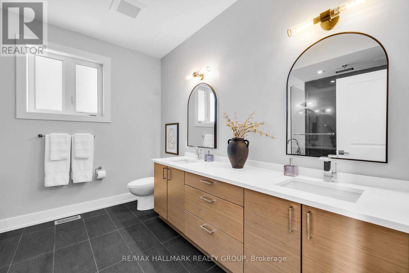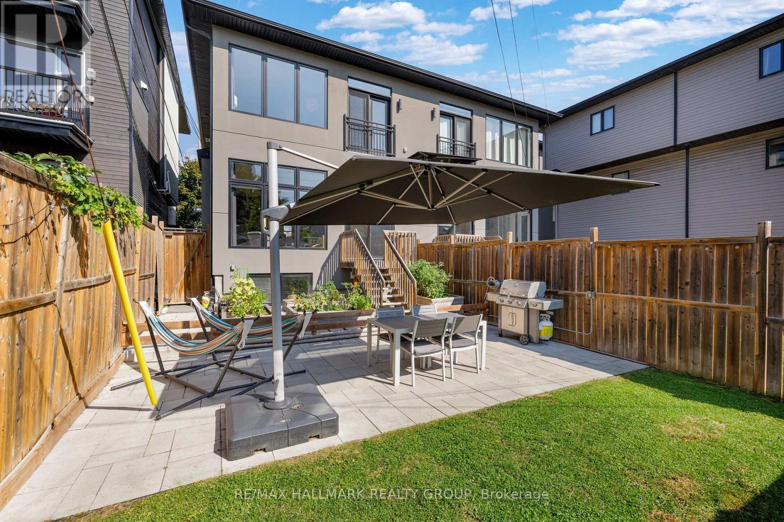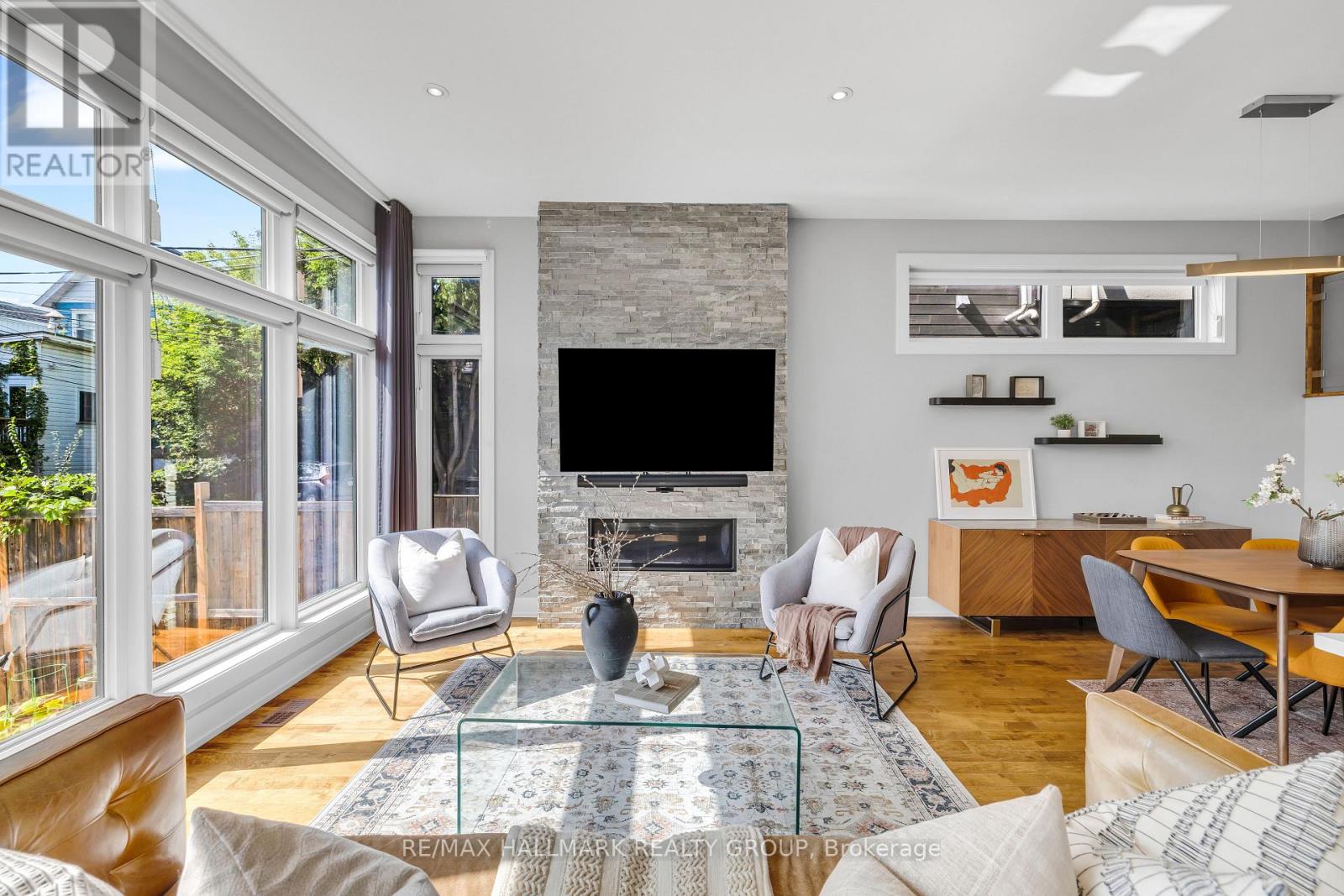 Nestled between trendy Little Italy, Civic Hospital, and vibrant Hintonburg, this stunning modern executive semi-detached home offers the perfect blend of luxury, space, and income potential, ideal for professional couples, downsizers, or families seeking stylish urban living. Enjoy being greeted with spectacular 14' ceilings in the entrance foyer, followed by soaring 10' ceilings throughout the remainder of the open-concept main floor featuring floor-to-ceiling windows, hardwood floors, and a show-stopping stone fireplace wall. At the heart of the home is a sleek, modern kitchen with a large island, quartz countertops, and high-end finishes, perfect for cooking and entertaining. Upstairs, enjoy 9' ceilings, a spacious primary suite with a walk-in closet and spa-like ensuite, two additional bedrooms (one with a private balcony), and convenient second-floor laundry. The fully finished lower level includes a stylish, income-generating one-bedroom apartment (currently rented for $1794/mth inclusive)with radiant heated floors, a private entrance, HRV system, stackable washer & dryer - ideal for rental income, extended family, or a home office suite. Outside, the south-facing, fully fenced backyard is a peaceful retreat with a large patio, low maintenance lawn, and raised garden beds. Smart home features include app-controlled blinds, lights, thermostat, garage door, video doorbell, and full security system, plus hardwired RJ45 internet points in all bedrooms and the living room. Additional perks include inside access from the garage and a spacious mezzanine above it, great for extra storage. Steps to Ottawa's best shops, cafés, bike paths, transit, and parks, and minutes to Dows Lake, the Rideau Canal, Chinatown, the Glebe, and year-round festivals and outdoor recreation. (id:31145)