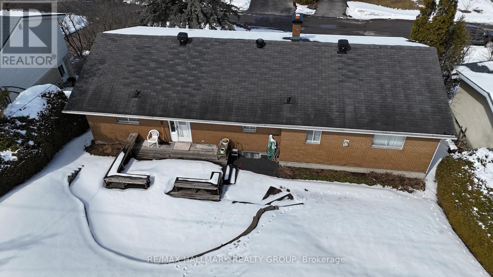 Tucked away on a quiet street in an incredible location, this rare elevated 3 Bedroom, 2.5 Bath Bungalow on a 75' x 100' lot offers excellent privacy with no direct rear neighbours. Custom-built & lovingly maintained by its original owner, the home showcases an attractive exterior of stone, siding with brick back. The home welcomes you with a grand slate foyer with 2 sets of closets & a ground-floor layout that includes a den, family room, handy 2-pce bath & laundry/mud room with access to the oversized garage. Designed for flexibility, the thoughtful layout suits a growing or extended family, a professional working from home, a home-based business entrepreneur or a daycare provider -allowing occupants to use the entire ground floor separately while keeping the principal residence on a different level. The main living level boasts 3 very, spacious bedrooms, including a primary with a 4-pce ensuite. The living room is massive, filled with light from a large bay window & features a stone fireplace flanked by built-in walnut cabinets & shelving. Louvred doors connect the living room to the dining room, while pocket doors link the kitchen to the dining room & main vestibule. The sunny eat-in kitchen offers solid wood cabinets, a backsplash, built-in stovetop and oven, & a double sink with window overlooking the private yard, deck & raised interlock flower bed. Under the carpeting is parquet flooring found through most of the home. Property backs on Bell High School grounds, Bell Centennial Arena, an NCC baseball park & Bell sports field - and is just a few doors from Donoghue Park (playground, small toboggan hill, basketball court, walking paths) & easy access to paths & extensive NCC trails. Commuting is convenient with nearby public transit & access to Hwyys 416 & 417. Parking is plentiful: a deep 2-car garage with automatic opener plus a laneway for 4 cars. This unique, well-cared-for home is a must-see for buyers seeking space, privacy & versatility. Act now! (id:31145)