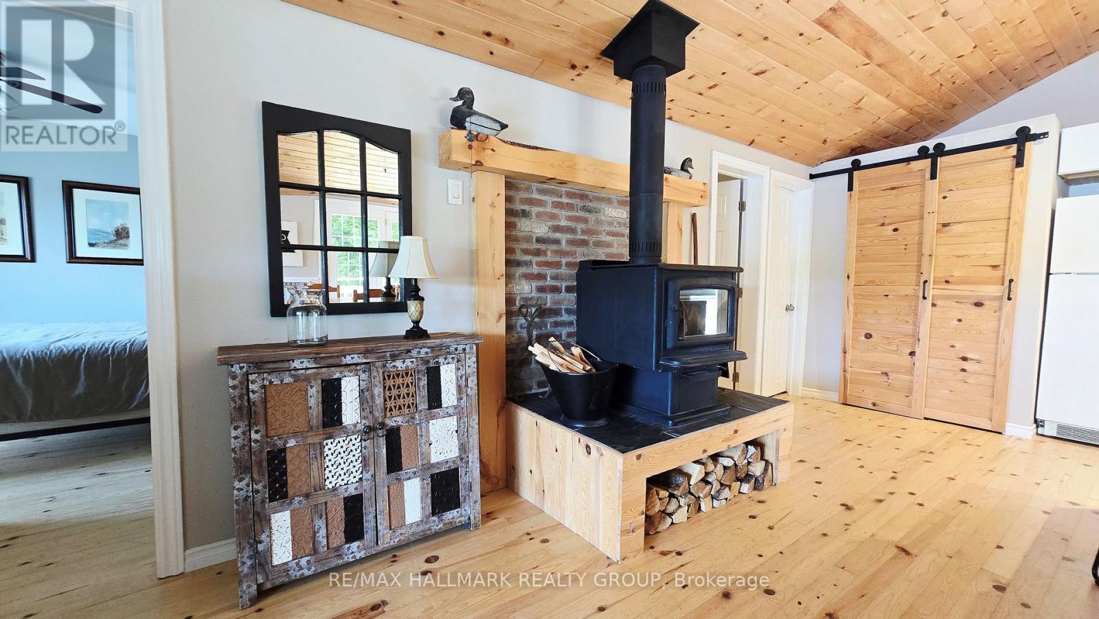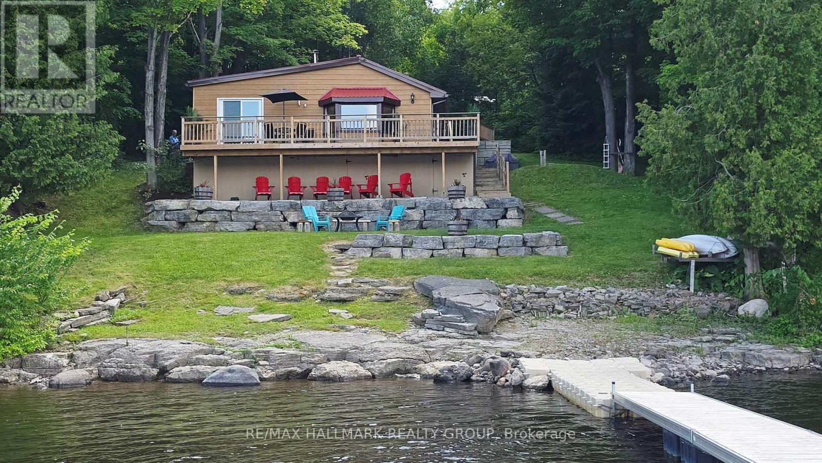 Welcome to an enchanting Ottawa Riverfront retreat on Buckham's Bay, boasting 100 feet of pristine shoreline great for docking a large boat and clear deep water for swimming! This cozy and delight 2-bedroom bungalow is the perfect all-year-round escape, featuring an inviting wrap-around deck with breathtaking views. The open-concept interior highlights pine flooring. Enjoy the warmth of a woodstove during chilly days & winter nights, complemented by kitchen with breakfast bar, spacious dining area open to the living room with bow window with stunning water views. Laundry closet next to kitchen. The Primary Bedroom opens to the waterside deck, ideal for tranquil moments & morning coffees. Updates include landscaping, retaining wall, footings & metal roof (2021), pine flooring & interior paint & some finishings (2021), propane furnace (2019), submersible well pump with heated line (2021) and septic system (2009). Includes appliances, dock and some furnishings. Immerse yourself in endless outdoor activities, from fishing, ice fishing and water sports to BBQs and stargazing by the bonfire. Close to the city, Kanata's High Tech Sector, and the DND campus, this retreat combines privacy with convenience to city amenities! (id:31145)