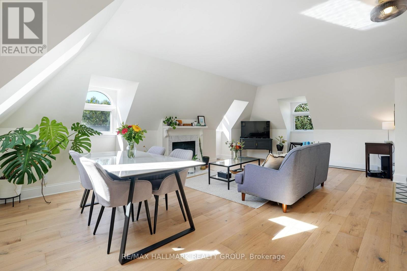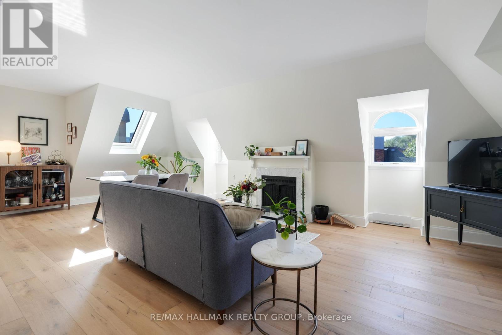$780 MonthlyThis is a rare opportunity in a Heritage home nestled amidst the gardens and tree lined streets of historic, bustling Sandy Hill. The Tupper House, originally built for the Besserer family, is the former home of two past Prime Ministers, a father of Confederation, Premiere of Nova Scotia, Cabinet minister, and a former Mayor of Bytown. In 1983 Barry Hobin redesigned the building into a lovely 6 unit residence. This 2bed +den third floor walk up has plenty of character, with a gorgeous stained glass window in the unit's foyer, dramatic sloped walls and dormer windows, and a luxurious primary suite! Relax with a cup of coffee on one of two balconies and wander back in time to imagine the history and nation building that happened here. Featuring many upgrades since 2021, including new hardwood floors, heated ensuite bath, kitchen and laundry room floors, all new light fixtures, plugs & switches. The kitchen and ensuite were tastefully renovated in 2025, making the apartment feel luxurious with modern elegance. (1 parking, 2 visitor parking and a storage locker in the basement) (id:31145)