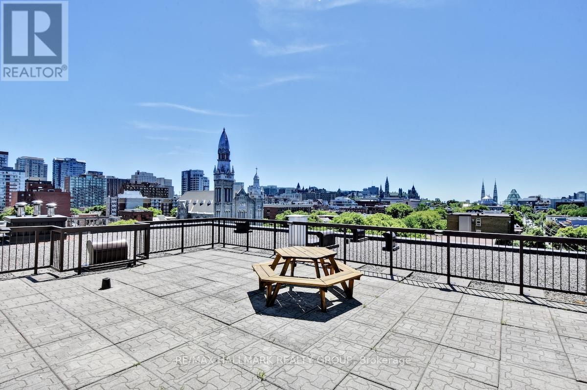 Welcome to unit 504 at 222 Guigues Avenue, a boutique-style condo in the heart of Ottawa's historic Lower Town. This bright and well-designed 2-bedroom, 1-bathroom unit offers 863 sq.ft. of thoughtfully laid out living space, perfect for professionals, first-time buyers, or downsizers who want to enjoy all the vibrancy of downtown living without sacrificing comfort. Step inside to an inviting floor plan. The updated kitchen features granite countertops, a subway tile backsplash, stainless steel appliances, and a large breakfast bar that opens to the dining and living areas. Hardwood flooring flows throughout, while the wood-burning fireplace adds warmth and character. Patio doors lead to a private balcony with city views; perfect for morning coffee or unwinding after work. The primary bedroom is generously sized with great closet space, while the second bedroom works perfectly as a home office or guest room. The full bathroom has been updated and offers clever storage, and the convenience of an in-unit laundry room making daily life easy. Neutral paint enhances the natural light throughout. Residents enjoy access to a rooftop terrace with panoramic views of Parliament and the city skyline, ideal for entertaining or enjoying summer evenings. This unit also includes one underground parking space and a storage locker. The location is unmatched: tucked away on a quiet cul-de-sac yet just steps from the ByWard Market, Global Affairs, the National Arts Centre, art galleries, shops, restaurants, cafes, and transit. Outdoor enthusiasts will love the proximity to the Ottawa River, Gatineau Park, and bike/walking paths. Quick access to Highway 417 makes commuting a breeze. Move-in ready and full of charm, this condo offers the perfect mix of location, lifestyle, and value. (id:31145)