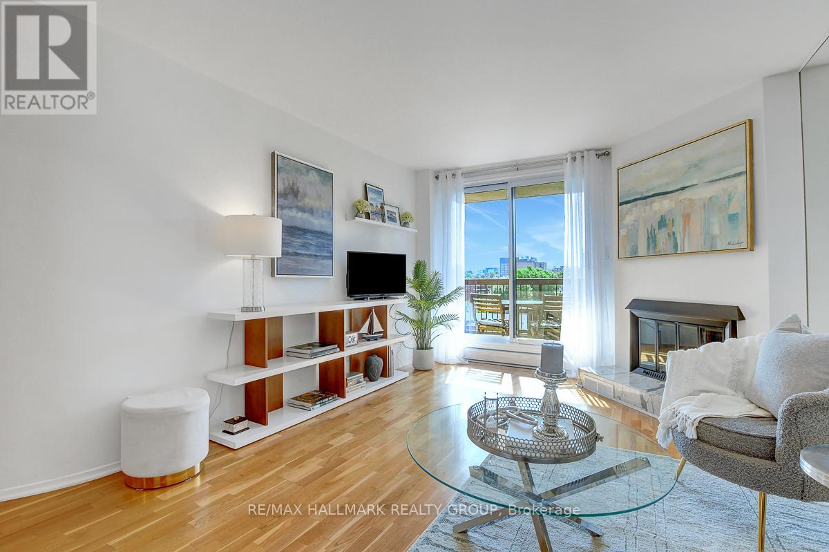 $809.14 MonthlyWelcome to unit 504 at 222 Guigues Avenue, a well-designed 2 bedroom, 1 bathroom condo in Ottawa's historic Lower Town neighborhood. At 863 sq.ft., the layout makes good use of every square foot. Hardwood flooring runs throughout, and a wood-burning fireplace adds warmth and character to the main living area. The open-concept design naturally connects the kitchen, dining, and living spaces, making the unit feel larger than its footprint suggests. The updated kitchen features granite countertops, a subway tile backsplash, stainless steel appliances, and a breakfast bar that works equally well for a quick meal or casual entertaining. Patio doors off the living area open to a private balcony with city views; a nice outdoor extension for morning coffee or an evening wind-down. The primary bedroom is generously sized with good closet space. The second bedroom works well as a guest room or home office. The full bathroom has been updated and includes clever built-in storage. In-unit laundry adds everyday convenience. The building offers a rooftop terrace with panoramic views of Parliament Hill and the city skyline, one of the better shared amenities you'll find at this price point in the area. One underground parking space and a storage locker are included. Tucked on a quiet cul-de-sac, yet steps from the ByWard Market, Global Affairs, the NAC, restaurants, cafes, and transit. The Ottawa River pathways, Gatineau Park, and Highway 417 are all easily accessible. A practical and well-located unit in one of Ottawa's most walkable neighborhoods. (id:31145)
