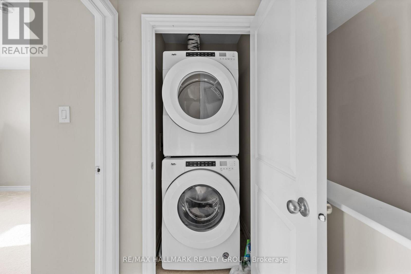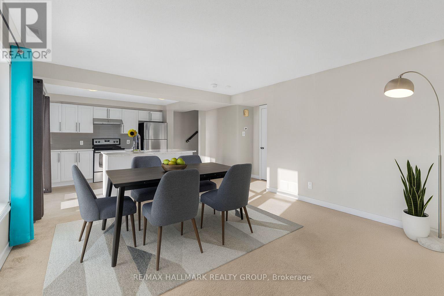 $279 MonthlyNICHE INVESTOR'S DREAM - tenant in the unit paying market rent. ***Dear friend, read all of this, it's worth the knowledge*** Low condo fees only $279/mo AND built in 2016 (modern style)! Walk to Chapman Mills Marketplace, shops, dining, schools, and transit, with the Transitway just 600m away-an outstanding opportunity to rent out or live in. RARE end-unit, top-floor stacked townhome with clear views and exceptional privacy. This bright 2-bedroom, 1.5-bath home truly doesn't feel like a condo. Central Air Conditioner unit included, and carpet flooring. As you walk in, you are greeted by a foyer and stairs to go up to the main living level. MAIN LEVEL (2nd floor) - Enjoy large windows and a private balcony, perfect for relaxing or entertaining, along with a spacious open-concept kitchen, living, and dining area filled with natural light and complemented by a convenient 2-piece bath in this living space. UPSTAIRS (3rd floor) features high open views of the area, which can be relaxing. Generous-sized Primary bedroom, and a second bedroom ideal for family, roommate, guests or a home office, a full bathroom, and private in-suite laundry, with plush carpeting adding warmth and comfort throughout. Located in a quiet, private setting-not on a busy street, this unit includes LARGER CONER PARKING SPACE #39 right by your door for added convenience. Built in 2016, so its a great benefit as many Stacked townhomes are older with higher condo fees and more maintenance or so new that you dont know how the condo funds will be managed, which results in unnecessarily high condo fees. This condo is well managed as the fees are only $279/month, which covers: parking, snow removal, and lawn care. Welcome to view! (24hrs notice on all showings) ***YOUR OFFER IS WELCOME*** (id:31145)