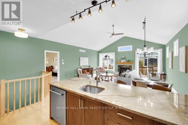 Welcome to this beautifully maintained Sawgrass Model by EQ Homes in the highly sought-after Equinelle community - the perfect blend of comfort and elegance. This stunning bungalow offers 2 bedrooms plus a versatile main floor den, ideal for a home office or a quiet reading space overlooking the front yard. The bright and airy great room features soaring vaulted ceilings, upgraded windows for enhanced natural light, and a cozy fireplace that anchors the space beautifully. The kitchen is thoughtfully designed with custom granite countertops and flows seamlessly into the open-concept living and dining areas - perfect for everyday living and entertaining alike. Step outside to your south-facing backyard oasis, complete with a two-tiered deck, beautiful privacy fencing, and a fully fenced yard - ideal for relaxing or hosting guests. The fully finished basement expands your living space with a large recreation area, second fireplace, dedicated office space, and a stylish kitchenette with matching granite countertops - perfect for entertaining or accommodating extended family. A full bathroom with spa-like finishes adds to the lower level's appeal. Additional highlights include three full bathrooms, granite countertops throughout the main floor bathrooms, a double car garage that is insulated, stunning interlock in the front yard, 200 AMP electrical panel, and a generator for added peace of mind. Located in the heart of Equinelle, residents have the option to join the exclusive Residence Club, offering additional lifestyle perks within this vibrant, golf course community. A thoughtfully upgraded home designed for comfort, connection, and effortless living. (id:31145)