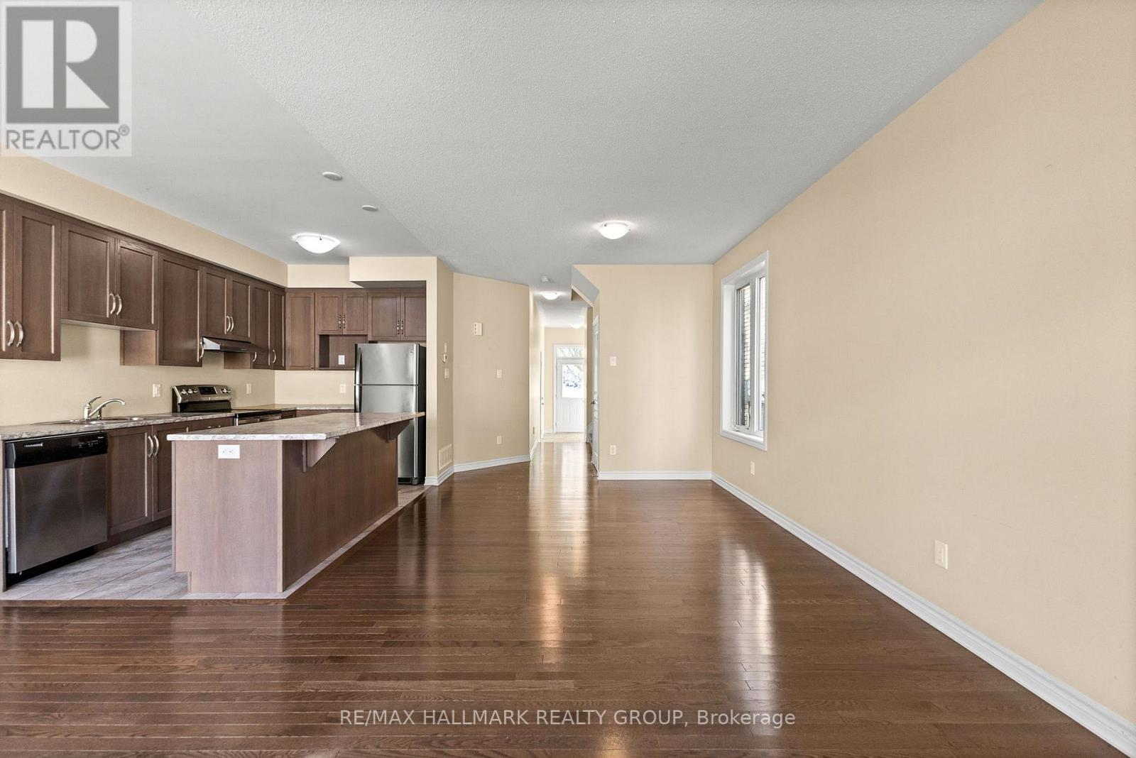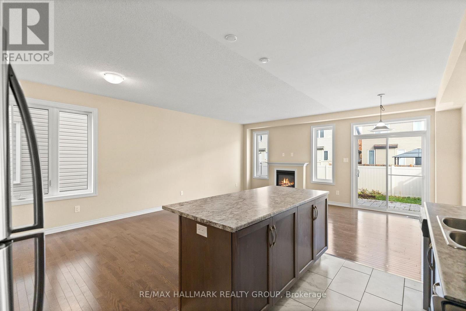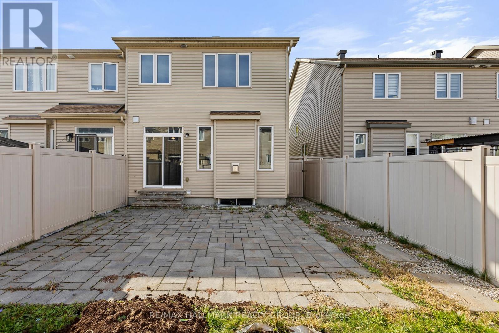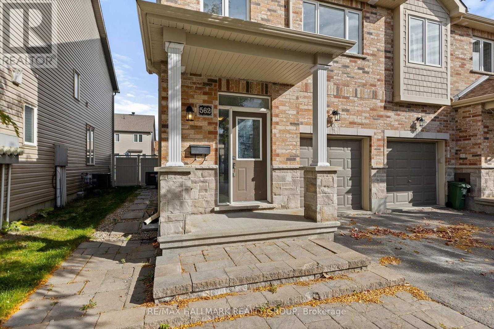 Bright and spacious END-UNIT townhome in Barrhaven! Welcome to 562 Via Mattino Way, offering exceptional space, natural light, and modern comfort. The main floor features beautiful hardwood floors, a bright open-concept layout, and a kitchen with abundant cabinetry and a large island that's perfect for casual dining or entertaining. Upstairs, enjoy three spacious bedrooms, including a primary suite with a large walk-in closet and a luxurious ensuite featuring a glass-enclosed shower and separate soaker tub. The second-floor laundry room adds everyday convenience. Step through the patio doors to a fully fenced backyard with durable PVC fencing and a large interlock stone patio-ideal for outdoor dining or relaxing. The finished basement offers a cozy family room, ample storage, and rough-in plumbing for a future full bathroom. The single-car garage, attractive interlock stone walkway, and inviting front porch add excellent curb appeal. Conveniently located near schools, parks, shopping, and restaurants, with easy access to Strandherd Drive, Longfields, and Woodroffe Avenue. 24-hour irrevocable on all offers. (id:31145)