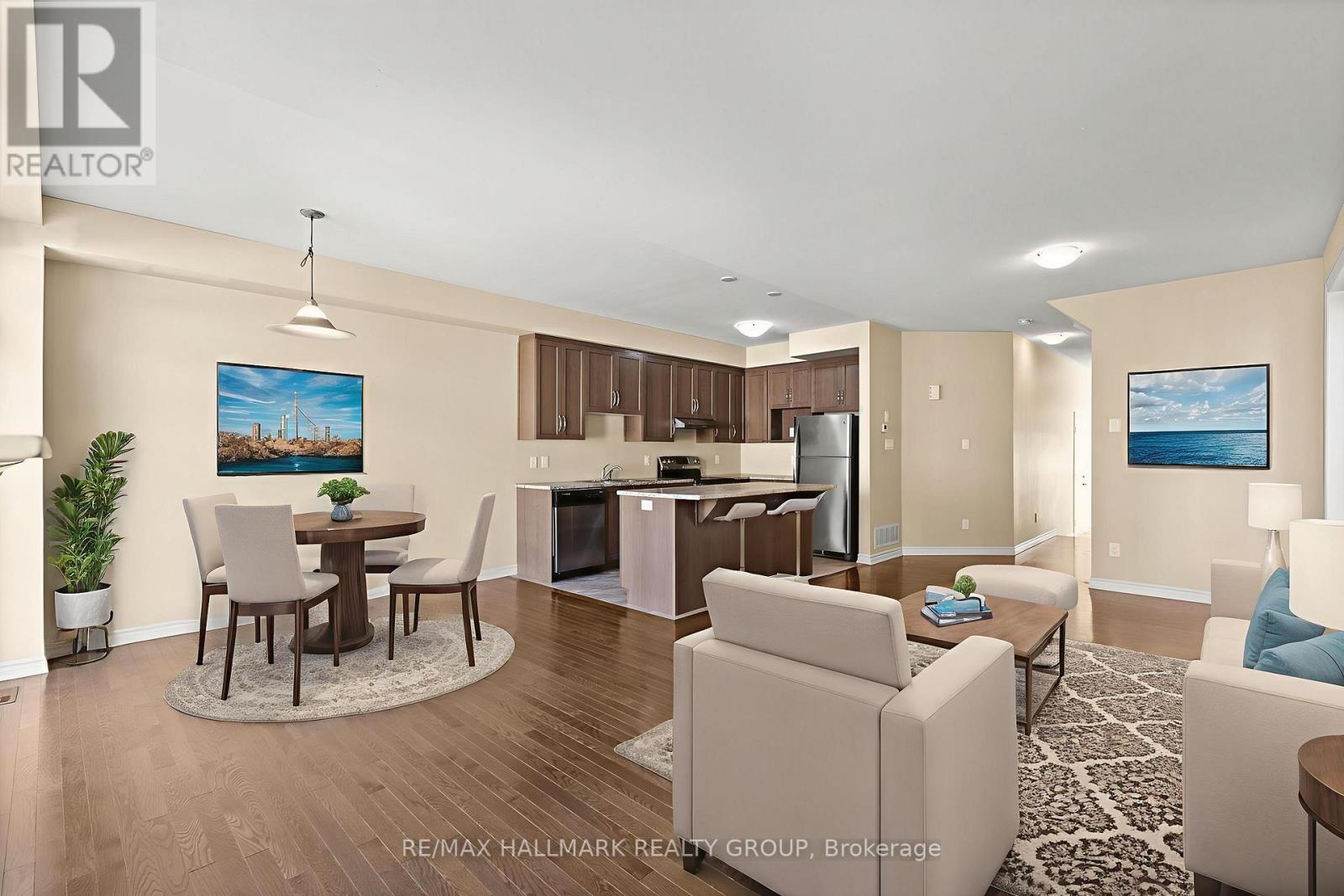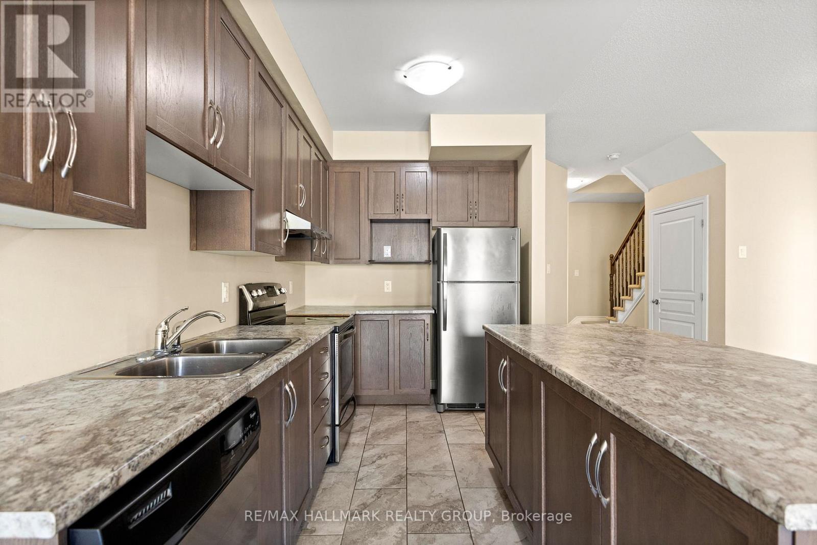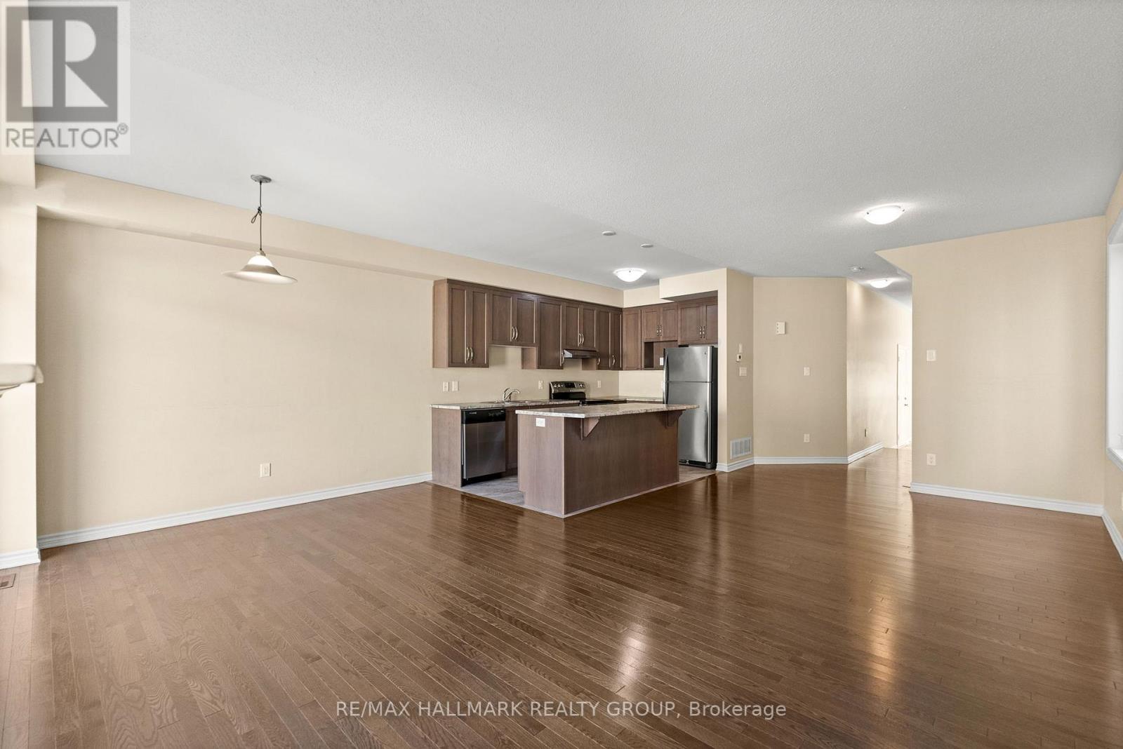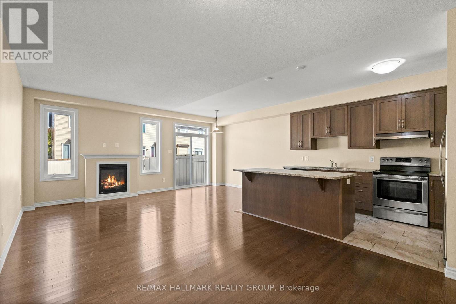 Bright and spacious END-UNIT townhome in Barrhaven! Welcome to 562 Via Mattino Way, offering exceptional space, natural light, and modern comfort. The main floor features beautiful hardwood floors, a bright open-concept layout, and a kitchen with abundant cabinetry and a large island that's perfect for casual dining or entertaining. Upstairs, enjoy three spacious bedrooms, including a primary suite with a large walk-in closet and a luxurious ensuite featuring a glass-enclosed shower and separate soaker tub. The second-floor laundry room adds everyday convenience. Step through the patio doors to a fully fenced backyard with durable PVC fencing and a large interlock stone patio-ideal for outdoor dining or relaxing. The finished basement offers a cozy family room, ample storage, and rough-in plumbing for a future full bathroom. The single-car garage, attractive interlock stone walkway, and inviting front porch add excellent curb appeal. Conveniently located near schools, parks, shopping, and restaurants, with easy access to Strandherd Drive, Longfields, and Woodroffe Avenue. 24-hour irrevocable on all offers. (id:31145)