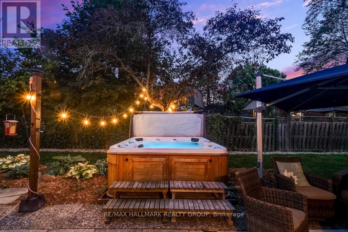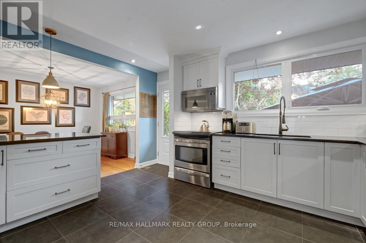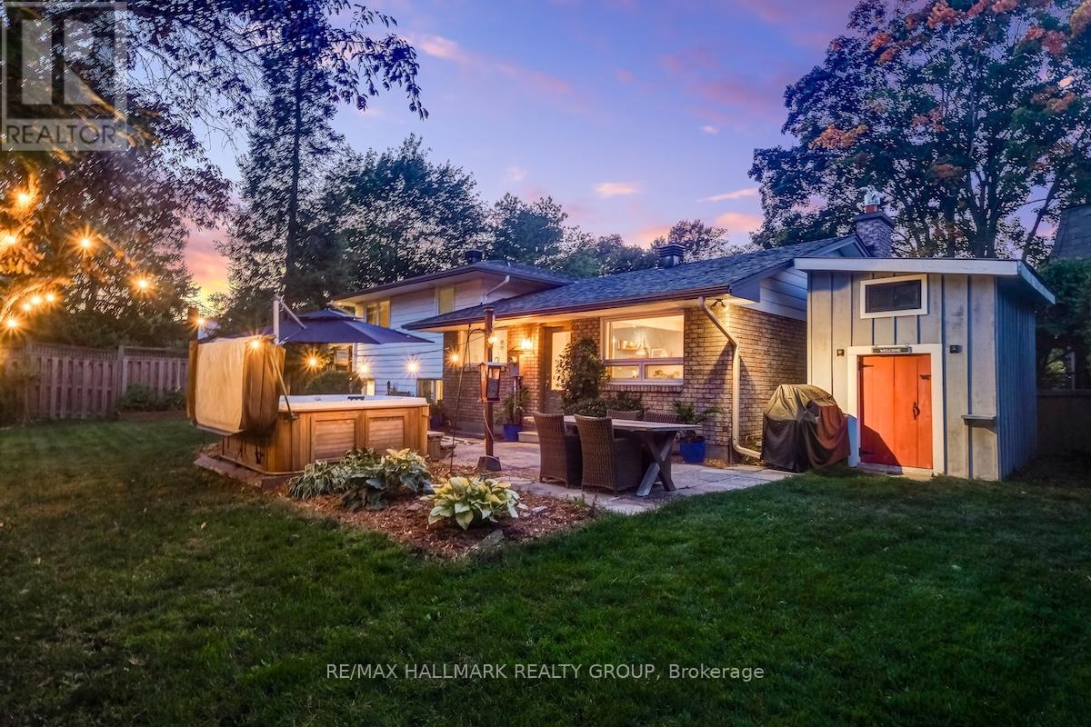 The one you've been waiting for! Oustanding curb appeal on this stunning 4bedroom split-level home located on, arguably, one the best streets in Beacon Hill North. 599 Duff Cr is perfectly located on a crescent within a crescent. Walk in and you immidiately feel at home. Living Room has warm and inviting hardwood floors, recessed lighting and cozy wood fireplace. Dining room opens into gorgeous remodeled kitchen featuring granite counters, plenty of cabinetry and drawers. Peninsular island with breakfast bar and pendant lighting. Undermount cabinet lighting. Stainless-steel appliances. Convenient access to rear yard with patio and hot tub. Perfect for hosting and entertaining. Second level has hardwood floors throughout all bedrooms. Primary bedroom with good closet space, two other good-sized bedrooms. Beautiful main bathroom with mosaic floor tiles. Lower level has family room with engineered hardwood floors, feature slat wall. Access to garage and 3pc bathroom including standup shower. Fourth bedroom with above-grade window - lots of natural light. Fully finished basement has large rec room with cool built-in bunk beds, perfect for childrens' sleepovers. Laundry area with barn door - plenty of organizers. Good amount of storage in utility room + bonus workshop space. Backyard oasis awaits including large, 2storey accessory shed with loft area; perfect for kids' hideaway. Nat-gas BBQ hookup. Perimeter downlighting highlights the home's facade beautifully at dusk and into the evenings. The home is minutes to Highway 174 and located within the catchment area of Colonel By High School. Also a short jaunt to the Ottawa River and Ottawa's Multi-Use Capital Pathway. Call today for a showing! 10 out of 10! (id:31145)
