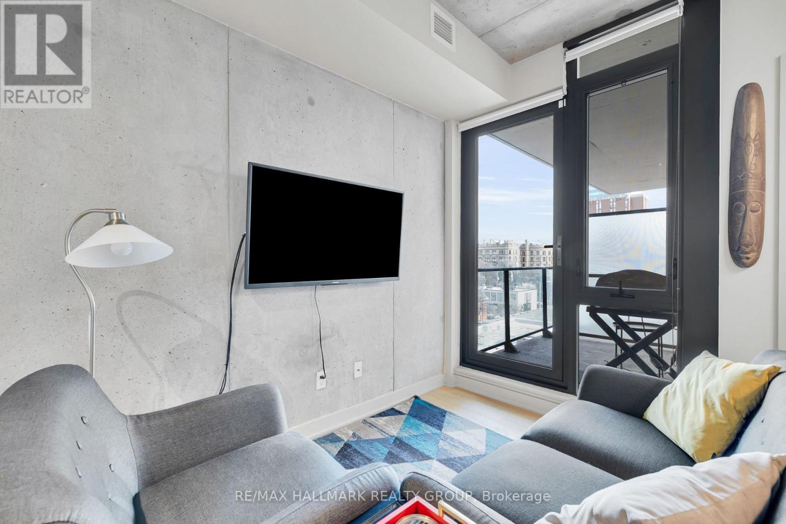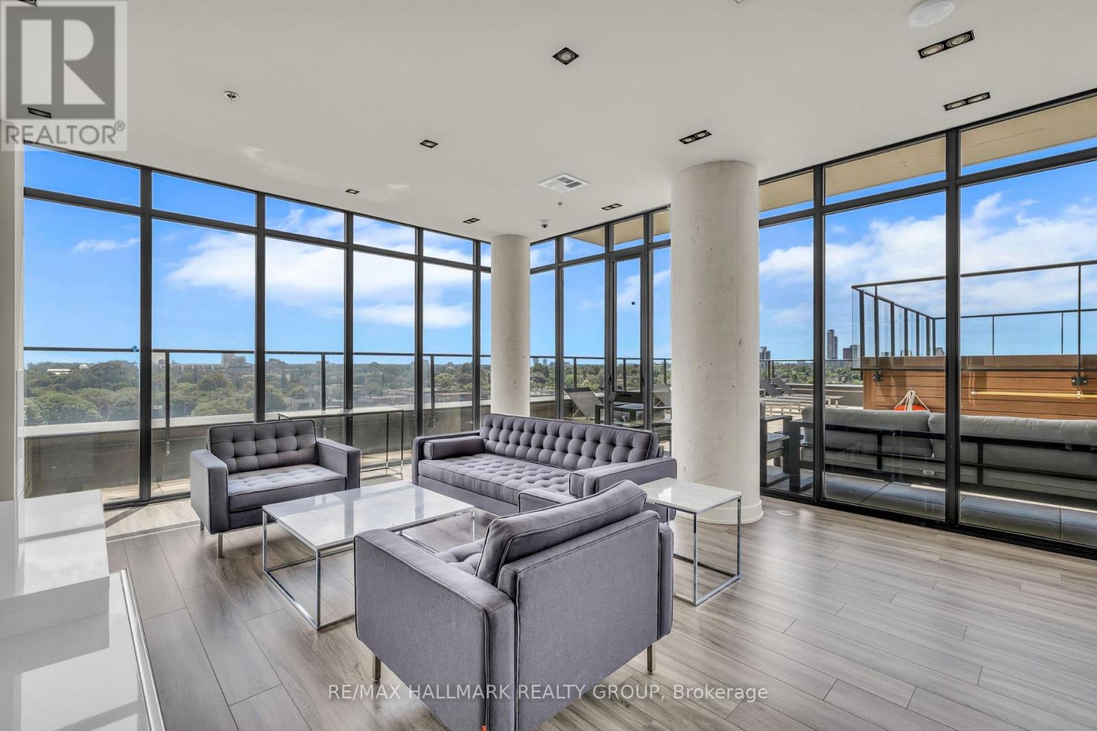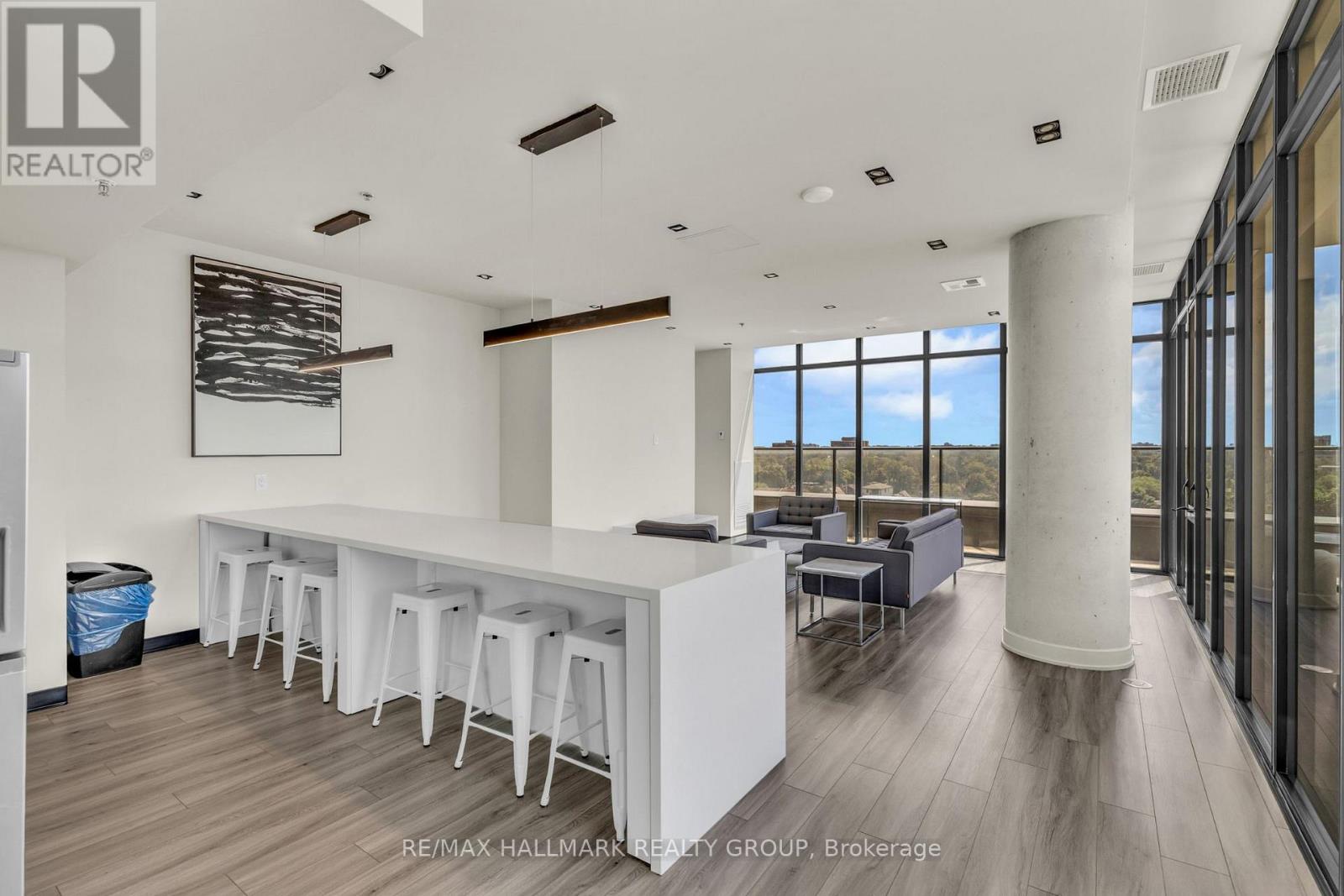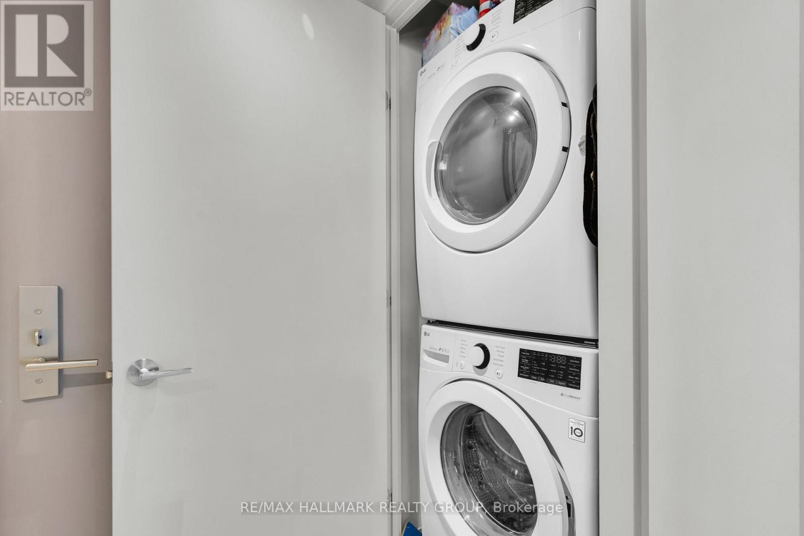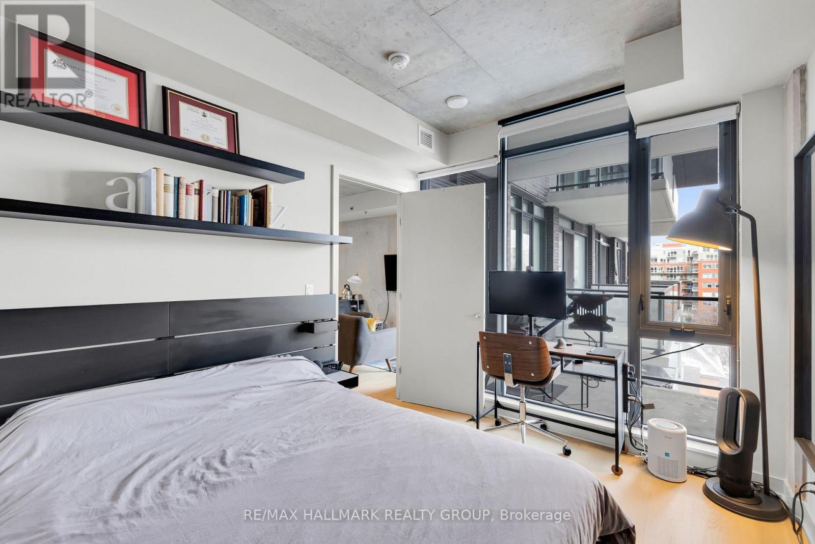 Modern 1-bedroom condo with parking and storage locker in the iconic SOBA building in Centretown, featuring floor-to-ceiling windows, exposed concrete ceilings and walls, sleek contemporary finishes, and access to luxury amenities including an outdoor pool and concierge, all steps from Bank Street, Lansdowne, and the Rideau Canal.This bright open-concept unit showcases the modern industrial design SOBA is known for, with expansive windows that fill the space with natural light and highlight the clean architectural lines throughout. The stylish kitchen features stone countertops, stainless steel appliances, and modern cabinetry, flowing seamlessly into the living and dining area for comfortable everyday living or entertaining.The bedroom provides generous storage and privacy within the smart urban layout. Enjoy the convenience of in-unit laundry, and a private balcony, perfect for relaxing in the heart of downtown.Residents enjoy premium building amenities including concierge service, a fully equipped gym, pool and terrace, spa pool, and sky garden party room.Located at the corner of Catherine and Bank, this unbeatable location places you steps from Ottawa's best restaurants, cafés, shops, Lansdowne Park, and scenic Rideau Canal pathways, with quick access to Highway 417 and excellent transit connections.An outstanding opportunity for professionals, first-time buyers, or investors seeking modern downtown living in one of Ottawa's most recognizable condo buildings. (id:31145)