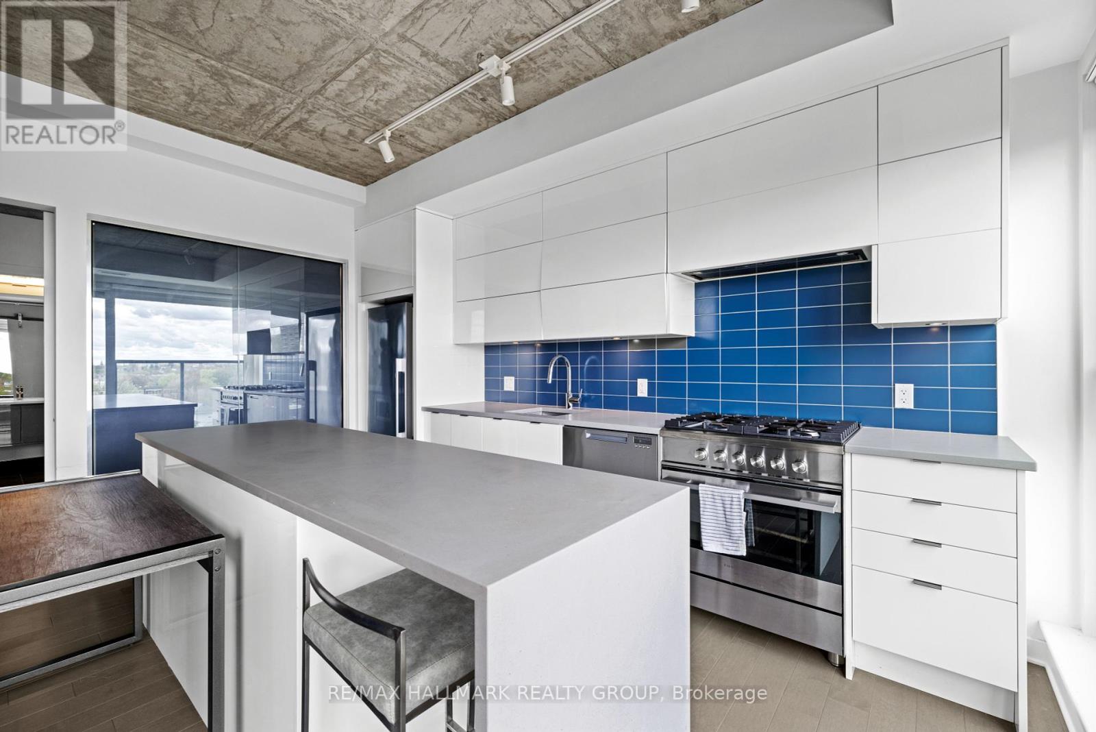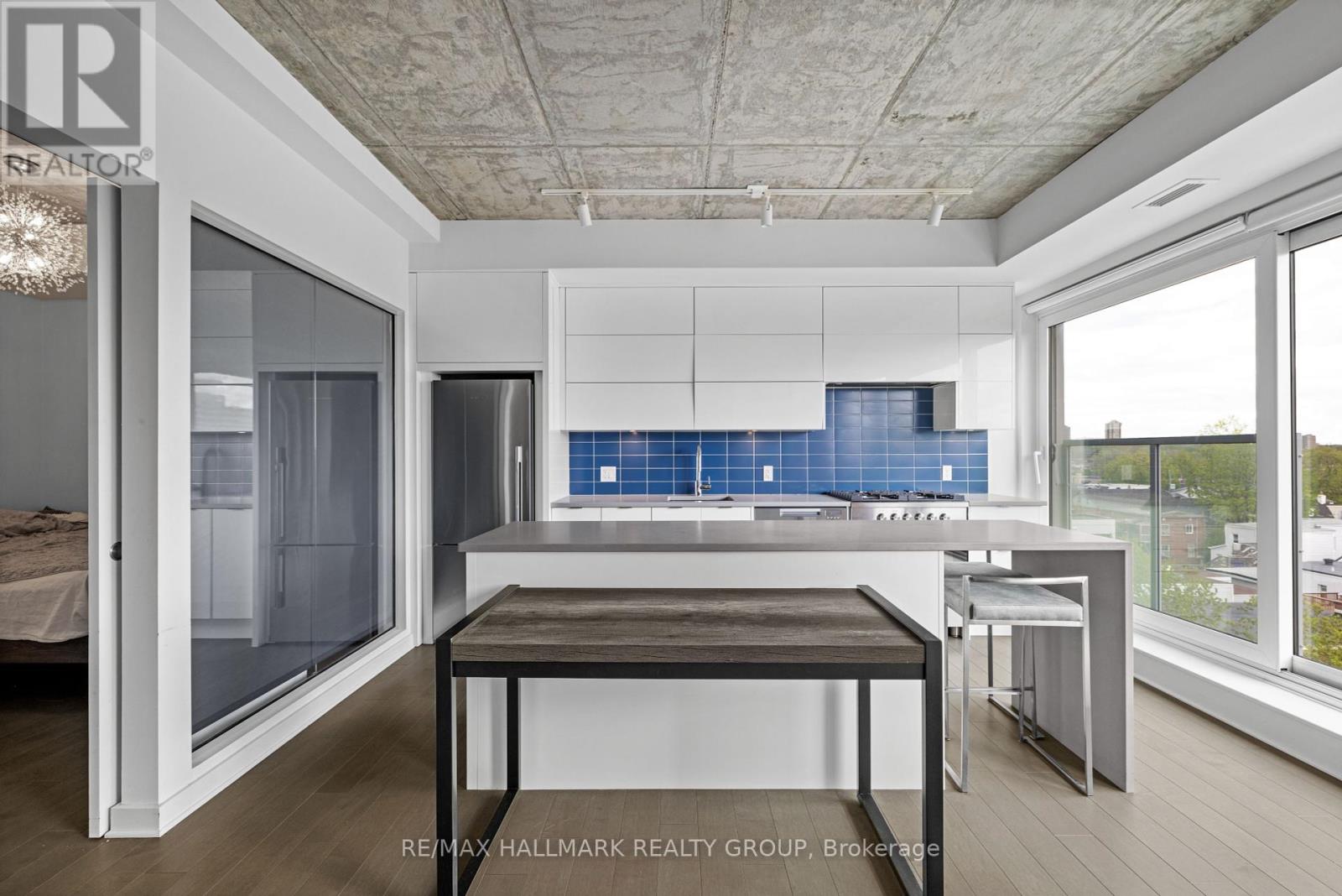 $655.46 MonthlyWelcome to Unit 607 at 135 Barrette Street - The St. Charles Market in New Edinburgh! An upscale & remarkable project, built by ModBox Developments. Minutes to all shops, amenities, downtown/lowertown, Global Affairs, the River, public transportation & walking/biking paths! This gorgeous/modern 1-Bed, 1-Bath unit falls nothing short of perfect! Highlights include: High-end Fisher & Paykel appliances (including gas range), 2 tiered dishwasher & an abundance of cupboards/counter space. Designer Caesarstone raw concrete countertops in kitchen & quartz in bathroom (with heated floor!), FULL soundproofing between both neighbours, electronic black-out blinds in kitchen/living area, private balcony with heater & nat-gas BBQ hookup, hardwood floors throughout & full-sized in-unit laundry! Amenities include: Concierge service, Fitness Centre, Party Room, Yoga Studio, Roof top terrace & more! 2 oversized storage lockers (#48 & #49) & Valet parking via innovative automated puzzle parking system. (id:31145)
