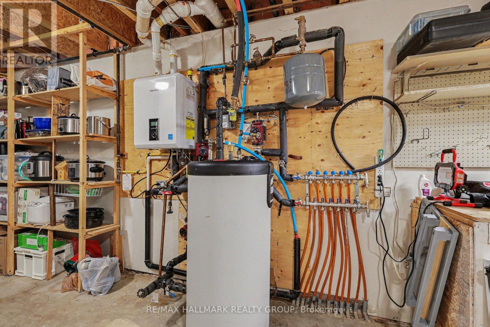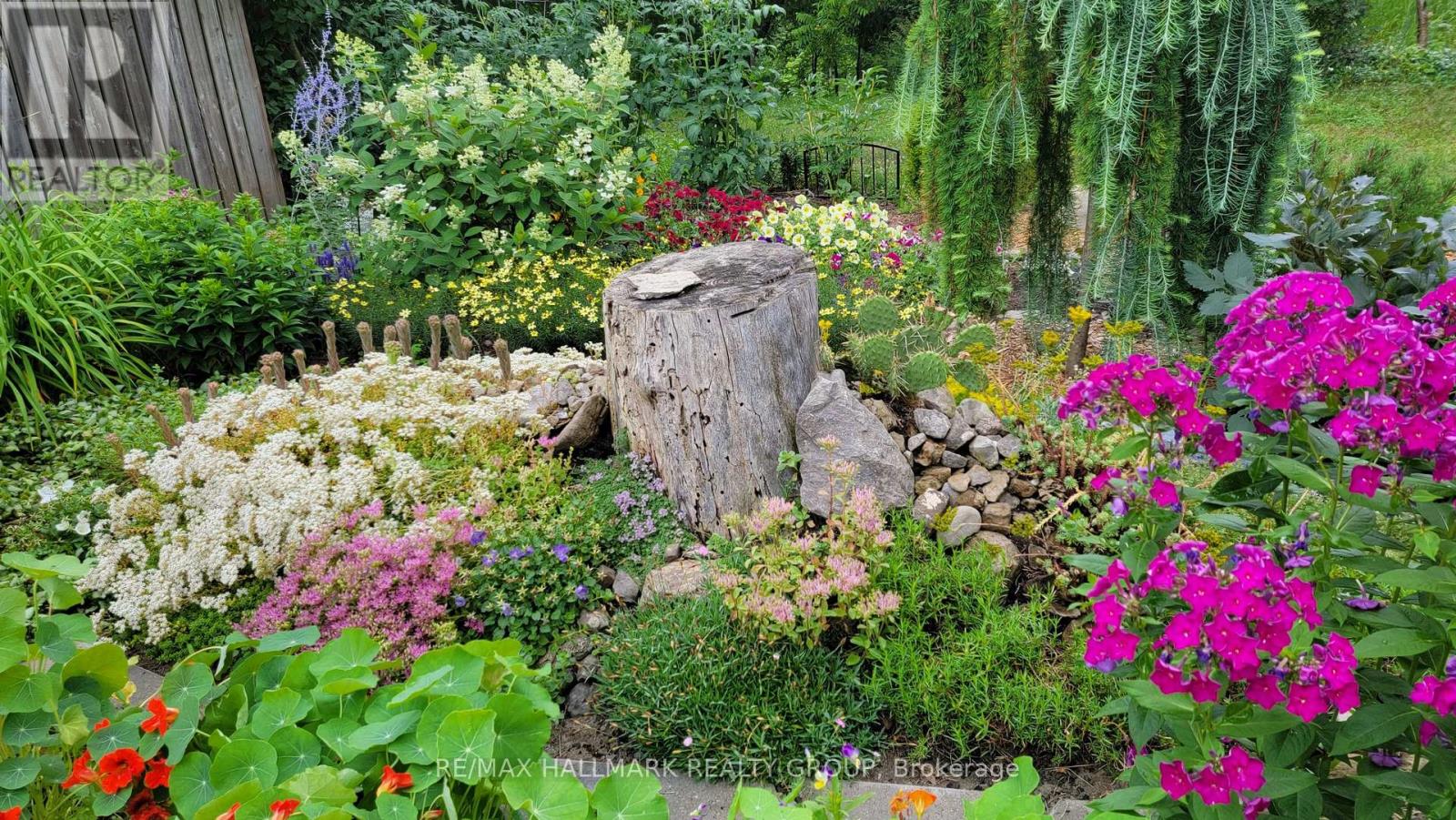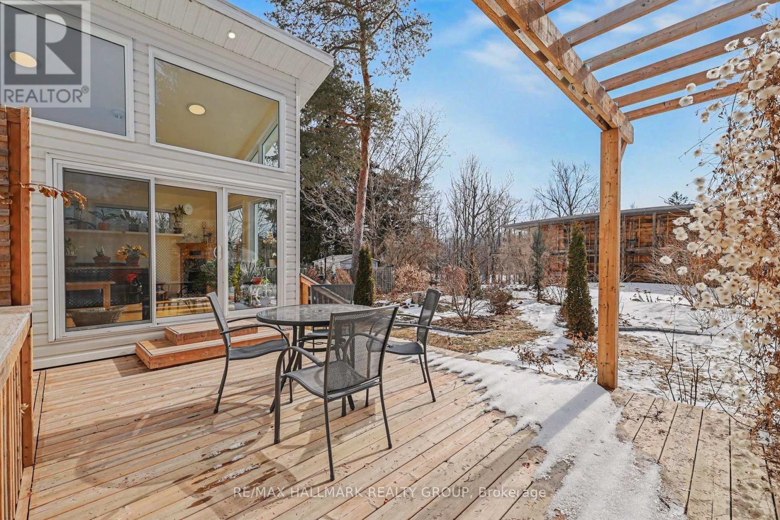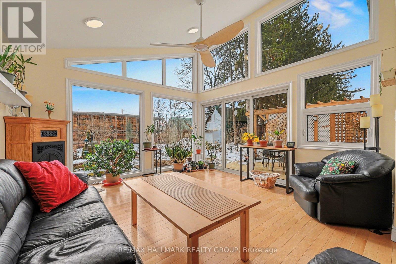 A true gardener's paradise - this bungalow offers comfort, functionality, and charm in a family-friendly neighbourhood. The entrance foyer features tile flooring and convenient inside access to the attached double garage and the main floor office / den overlooking the front yard, providing the perfect space for working from home, a quiet retreat, or an orchid room :) The open-concept main level is thoughtfully designed with seamless sightlines from the kitchen through the living / dining areas and into the stunning family room addition. This sun-filled space is a true highlight, featuring vaulted ceilings, walls of windows, a cozy gas fireplace, and patio doors leading to a private deck-perfect for entertaining or relaxing while enjoying the backyard. The main floor offers two spacious bedrooms, including a large primary suite complete with a walk-in closet and 3-piece ensuite bath. A convenient main floor laundry room adds to the home's practical layout. Downstairs, the partially finished basement provides excellent additional living space with a third bedroom, a rec-room area, a 2-piece bathroom, and ample storage in the utility room. Comfort is ensured year-round with a natural gas furnace, central air conditioning, and radiant in-floor heating in the basement. When you step outside you'll discover a true gardener's paradise. The beautifully landscaped yard is filled with mature plants and vibrant perennials that bloom throughout the seasons, offering an ever-changing backdrop of colour and tranquility. Additional features include a newer roof (2018), on-demand hot water system, and a natural gas BBQ hook-up. Ideally located close to all of Kemptville's amenities, the Waterfront Trail, local cafés, and quick access to the 416, this home offers the perfect blend of small-town charm and commuter convenience. A wonderful opportunity to enjoy comfortable living in a picturesque setting. (id:31145)