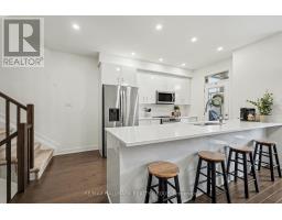 Step inside this bright, beautifully maintained turnkey home featuring a stylish open-concept layout designed for today's living. Large windows flood the main living and kitchen space with natural light, highlighting the hardwood floors, upgraded ceramic tile, 9ft ceilings, LED pot lights and contemporary finishes throughout. The kitchen is both functional and inviting, complete with stone counter tops, long center island with counter top overhang and 4 quality stainless steel appliances, upgraded backsplash, and direct access to your private balcony-perfect for morning coffee or unwinding at the end of the day. Upper level, you'll find two generously sized bedrooms, including a primary retreat with a spacious closet and its own ensuite bathroom featuring a long vanity with 2 separate undermount sinks. Offering three bathrooms in total, this home has both comfort and convenience for daily living. Additional features include a spacious welcoming foyer, full-size front-loading washer and dryer, and quality finishes throughout. Simply move in and enjoy. A perfect opportunity for first-time buyers, professionals, or investors looking for a low-maintenance home without monthly fees in a sought-after community. Great location with short walk to groceries, public transit and parks. (id:31145)