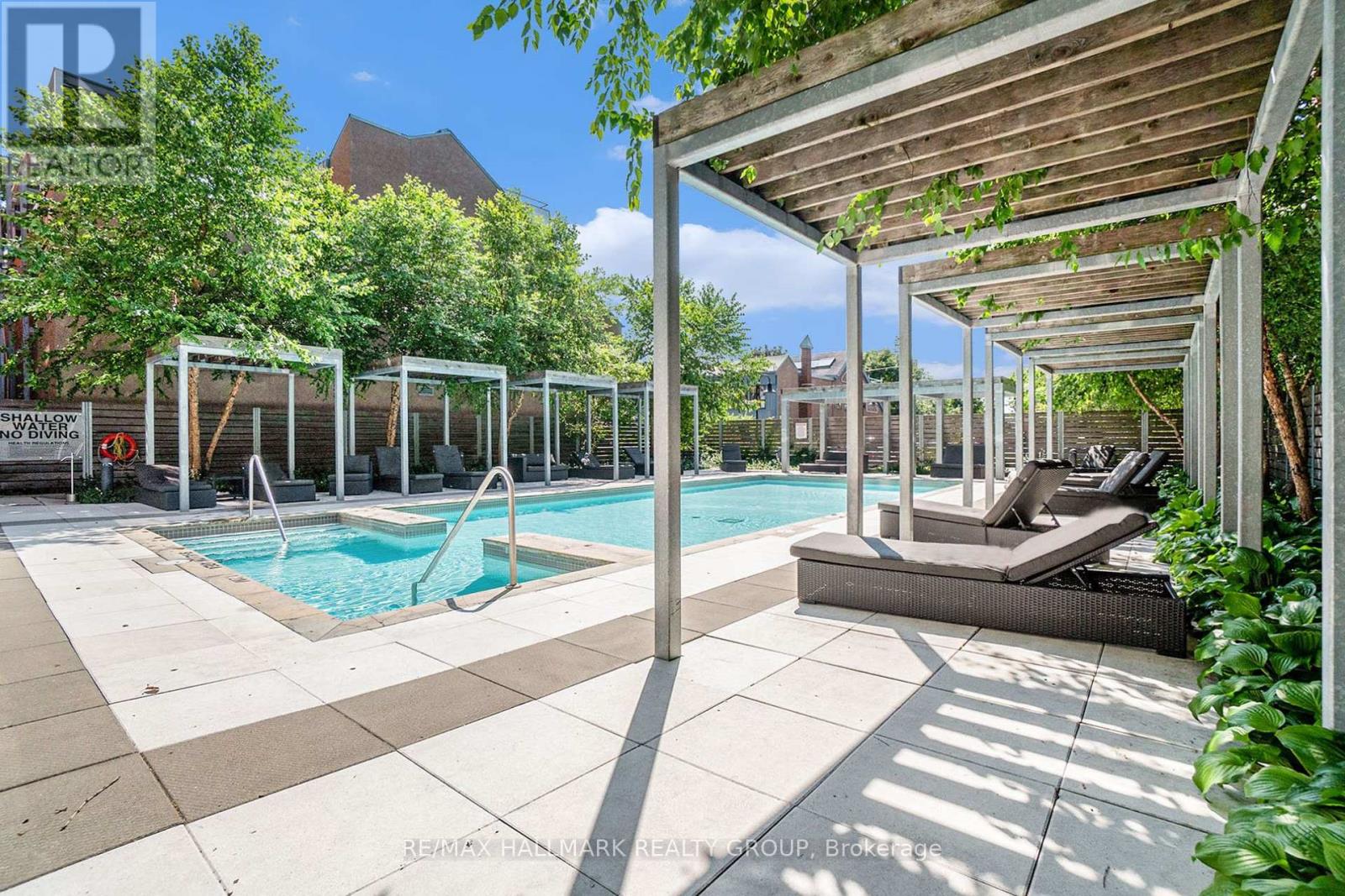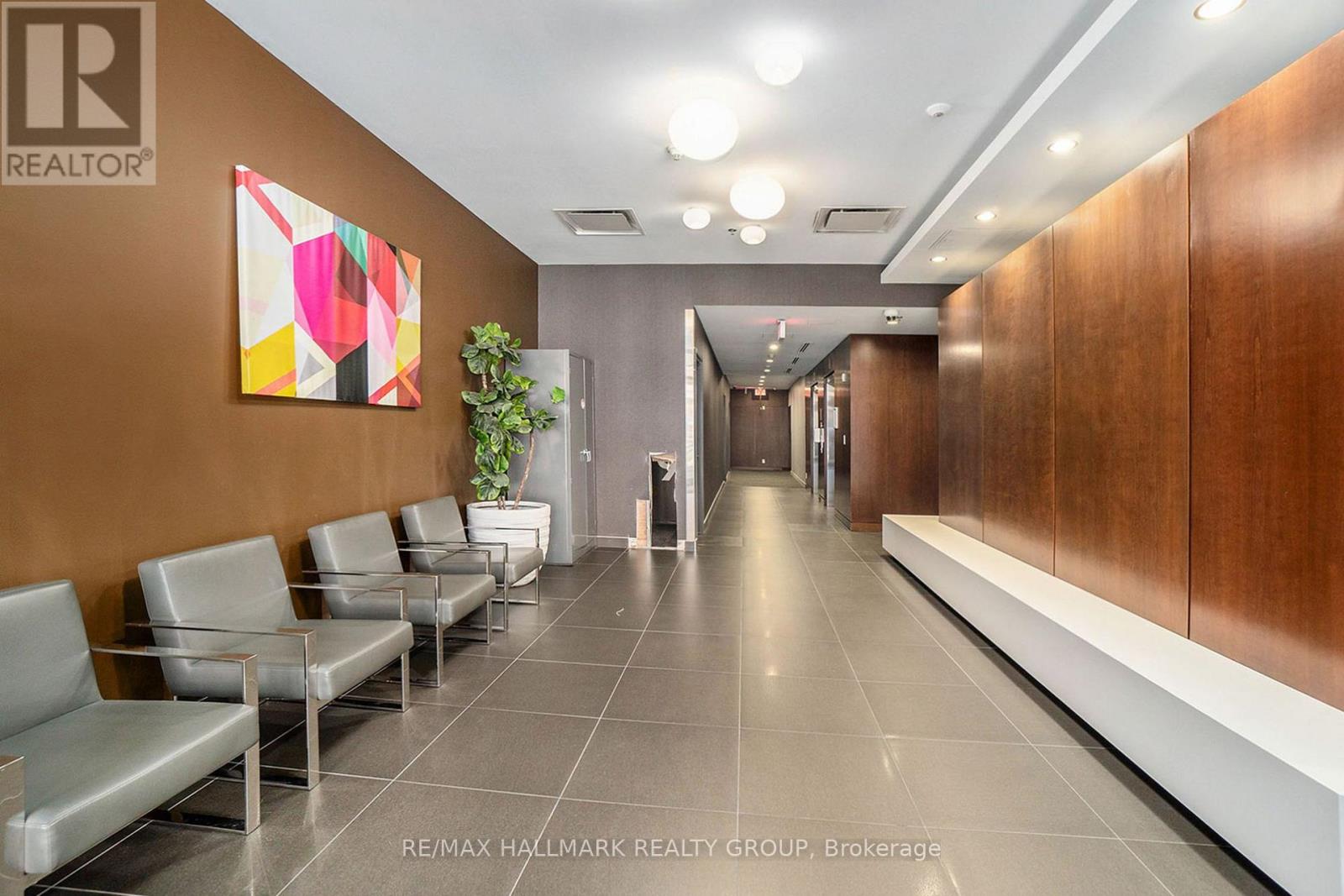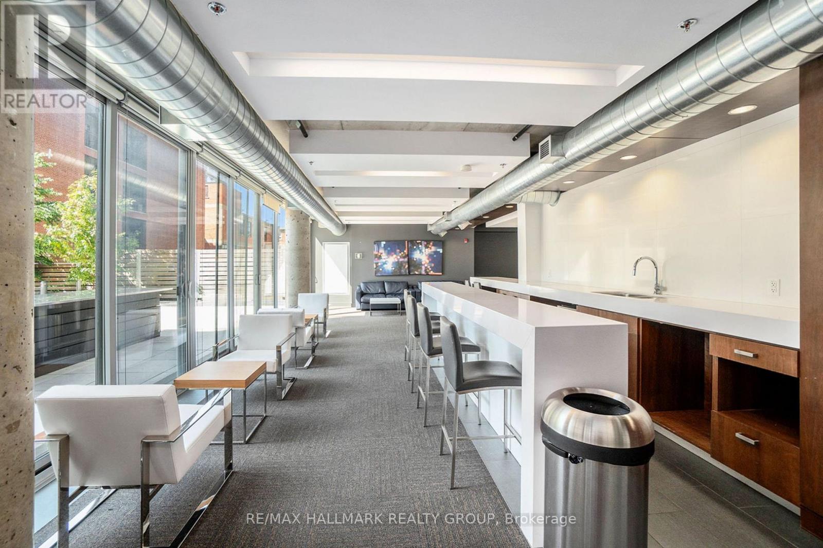 Modern condo in the heart of Centretown! This stylish unit features an open-concept layout with hardwood floors and floor-to-ceiling windows. The sleek corner kitchen has white cabinetry and stainless steel appliances. The bedroom, tucked behind a sliding door, connects to a cheater en-suite with tiled flooring, a modern vanity, pot lighting, and a tub-shower combo. A spacious balcony spans the unit, perfect for summer evenings.Top-tier amenities include a lounge with a pool table, full kitchen, outdoor patio with BBQs, a fireplace, and a large lawn. Enjoy the outdoor saltwater pool in summer and a fully equipped gym year-round. Live steps from Bank & Elgin, packed with shops, restaurants, and parks. Walk to the Canadian Museum of Nature, Parliament Hill, and the Rideau Canal skate in winter, stroll in summer. With a Walk Score of 99, everything is within reach in this prime downtown location! (id:31145)