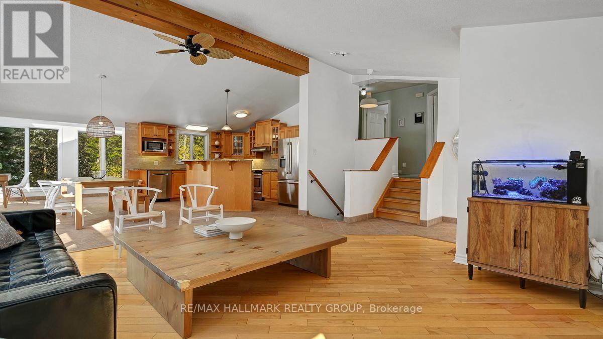 When turning onto the long private winding laneway at 618 Corkery Road, the first thing that will strike you is the incredible treed in privacy of this 27-acre estate featuring a massive heated 35 x 90 foot garage with 18-foot ceilings and its own 200 AMP panel, perfect for business owners, car enthusiasts, or those with serious storage needs. Neatly tucked away at the end of a quiet road and surrounded by a vast forest, this property offers unmatched privacy and tranquility. Enjoy peaceful country living as you explore scenic trails right on your own land, while being just 15 minutes from the conveniences and amenities of Kanata, truly the best of both worlds. This beautifully maintained home showcases a sun-filled main level with a bright living room featuring cathedral ceilings and hardwood flooring. The updated gourmet kitchen boasts granite countertops, a multi-level island, and stainless steel appliances. The dining room offers picturesque views and provides easy access to a spacious deck, perfect for entertaining. Upstairs, you'll find a primary bedroom with a walk-in closet and a modern ensuite, along with an additional bedroom and a renovated 4-piece bathroom. The lower level includes a third bedroom, a den and a convenient 2-piece bathroom. The expansive basement with a walkout to the outdoor interlock patio features a beautiful fireplace, updated flooring with plenty of space for a family room and a home office. A dedicated dog run and separate greenhouse complete this exceptional property. For business owners, please keep in mind the property also offers ample space to comfortably turn a tractor-trailer around. (id:31145)