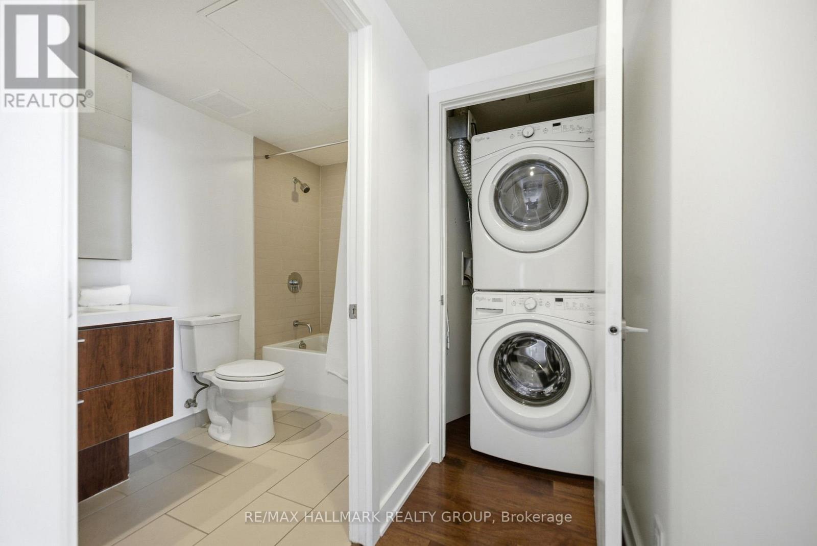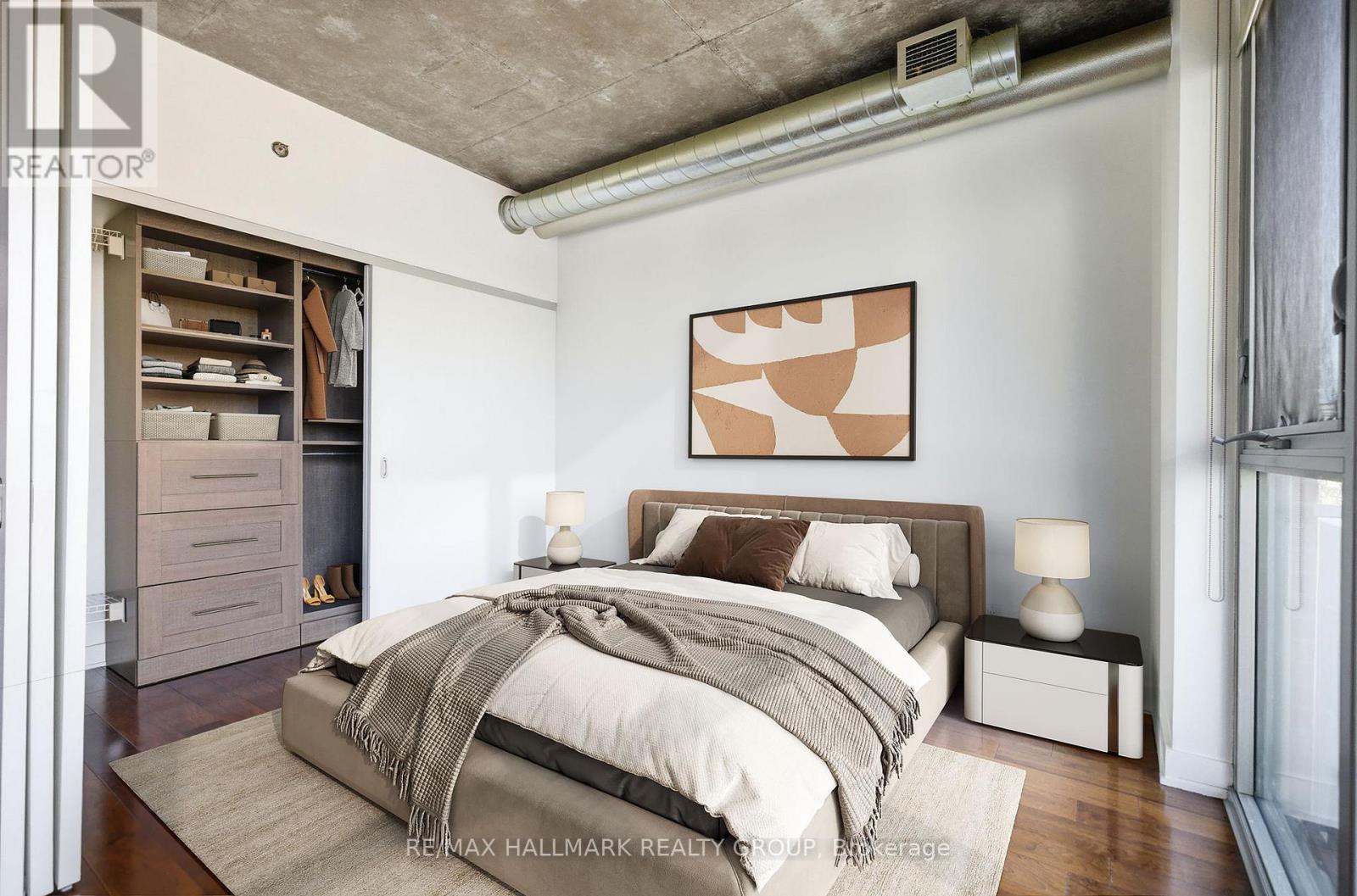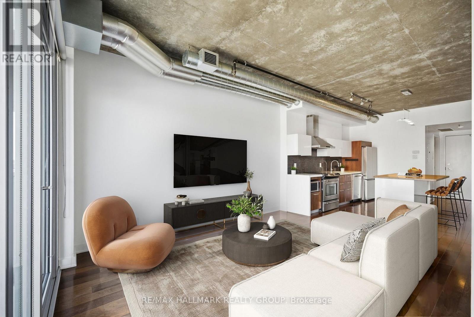Urban living at its finest! Welcome to The Hideaway at 340 McLeod Street in the heart of vibrant Centretown. This 1-bedroom + den, 1-bathroom condo offers 694 sq. ft. of thoughtfully designed living space complete with a spacious balcony, underground parking spot, and a storage locker. Step inside and feel instantly at home in this modern space with an industrial edge, featuring 9-foot ceilings, exposed concrete and pipes, floor-to-ceiling windows with full roller shades, hardwood floors and fresh paint throughout. The kitchen is both stylish and functional, with quartz countertops, stainless steel appliances, and a large centre island that provides extra prep space and storage. The primary bedroom serves as a flexible retreat with movable privacy doors and a custom-built closet organizer. The generously sized den is perfect for a home office, guest space, or even a second bedroom. A full bathroom and convenient in-unit full-size laundry complete the interior. Off the living area, step out onto your east-facing balcony, the perfect spot to enjoy your morning coffee or unwind in the evening while taking in city views, including the historic Canadian Museum of Nature. Residents enjoy an impressive lineup of amenities, including an outdoor heated saltwater pool with a lounging area, a ground-floor terrace with a fireplace, a fully equipped fitness centre, a theatre room, a party room with a bar and pool table, and secure bike storage. Located steps from shops, restaurants, parks, and cafés, with easy access to Highway 417, Elgin Street, Lansdowne, and a quick bike or transit ride to Parliament and downtown. Enjoy resort-style living in the city! 24-hour irrevocable on all offers (as per Form 244). Schedule B to accompany all offers (deposit handling). Floor plan attached. (id:31145)