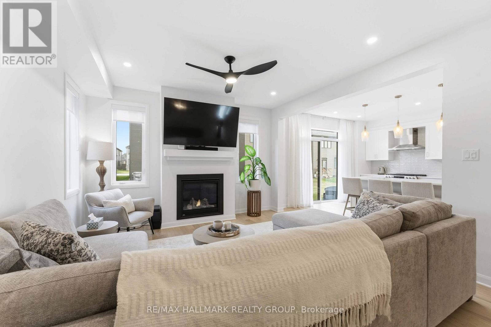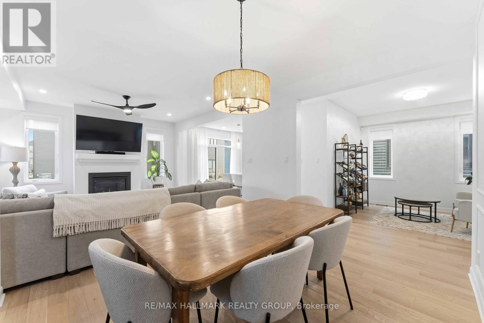 This exceptional 4-bedroom home showcases modern luxury and timeless finishing choices in one of Ottawa's most desirable communities;Mahogany in Manotick. Step inside to discover an elegant layout highlighted by 9-foot ceilings, hardwood flooring, a bright entrance foyer, a mainlevel den, and an open concept living/dining area with a sleek gas fireplace creating a warm and sophisticated atmosphere. The customdesignedkitchen is a chef's dream, featuring quartz countertops, soft-close cabinetry, and upgraded lighting that beautifully complements thespace. A semi-circular oak staircase leads to the upper level, where you'll find a spacious primary retreat complete with a walk-in closet and aspa-inspired ensuite offering double sinks and a stand-alone soaker tub-perfect for relaxation, three additional bedrooms, a full bathroom andsecond floor laundry room complete the upper level. Set within the prestigious Mahogany community, this home offers the perfect blend oftranquility and convenience, moments from the Manotick Village core, parks, trails, and the Rideau River. (id:31145)