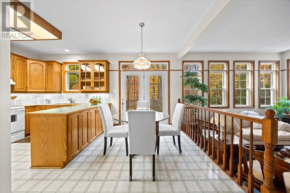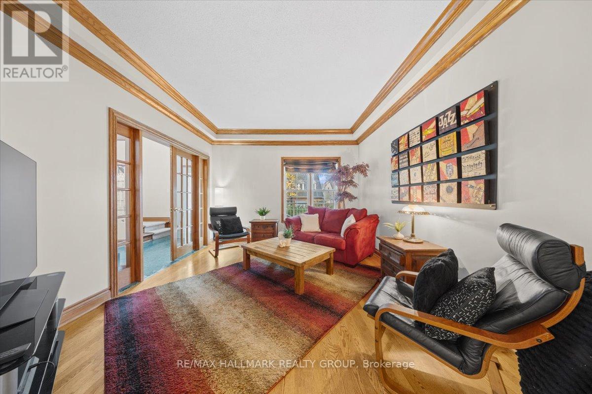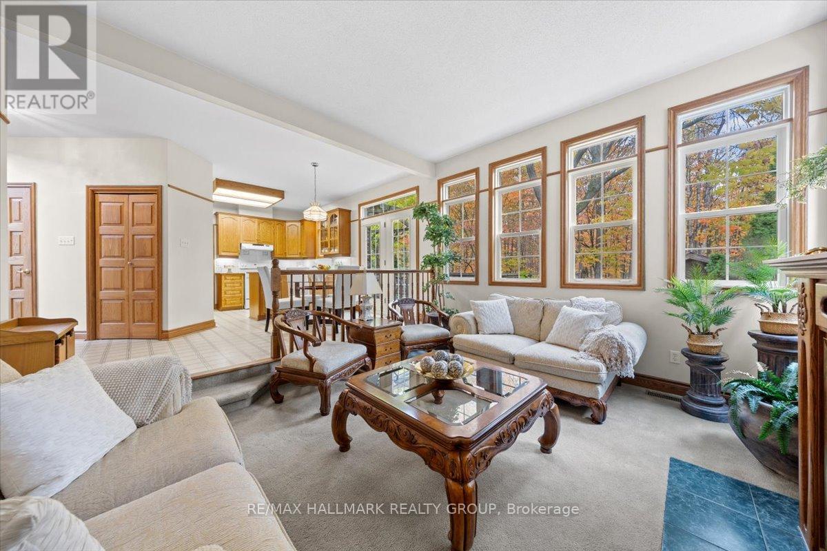 Discover this beautiful four-bedroom, four-bathroom home situated on a desirable, tree-lined street with a coveted rear view of the National Capital Commission (NCC) protected green space. The main level features a gracious living room and separate dining room, both with rich oak hardwood flooring, oak crown moulding, and solid oak interior doors throughout. A bright sunken family room, anchored by a gas fireplace, opens via garden doors to a private, treed backyard - your peaceful retreat right at home. Upstairs, the expansive primary suite offers a five-piece ensuite and a walk-in California-style closet. Three additional well-proportioned bedrooms provide flexible space for family, guests, or a dedicated home office. A convenient second-level laundry room with built-in ironing board enhances everyday ease. The fully finished lower level is designed for comfort and function: a generous recreation room with a three-sided fireplace, a three-piece bathroom with heated floor, and abundant storage space complete this home. Exterior features include an interlock driveway and steps leading to the front porch, a Generac generator for peace of mind, and a sprinkler system to keep the grounds lush and green. 200 amp circuit to accommodate hot tub and sauna. Located just steps from W.O. Mitchell Public School and surrounded by walking and biking trails, this home also benefits from nearby public transit via OC Transpo bus stop and an extensive range of shopping, dining, and community amenities. 24 hour irrevocable on offers and allow 12 hours or overnight for showing request. (id:31145)